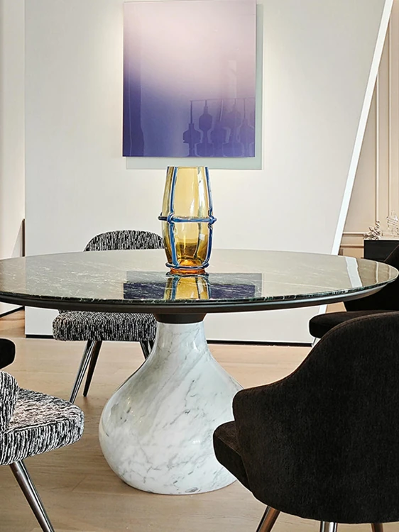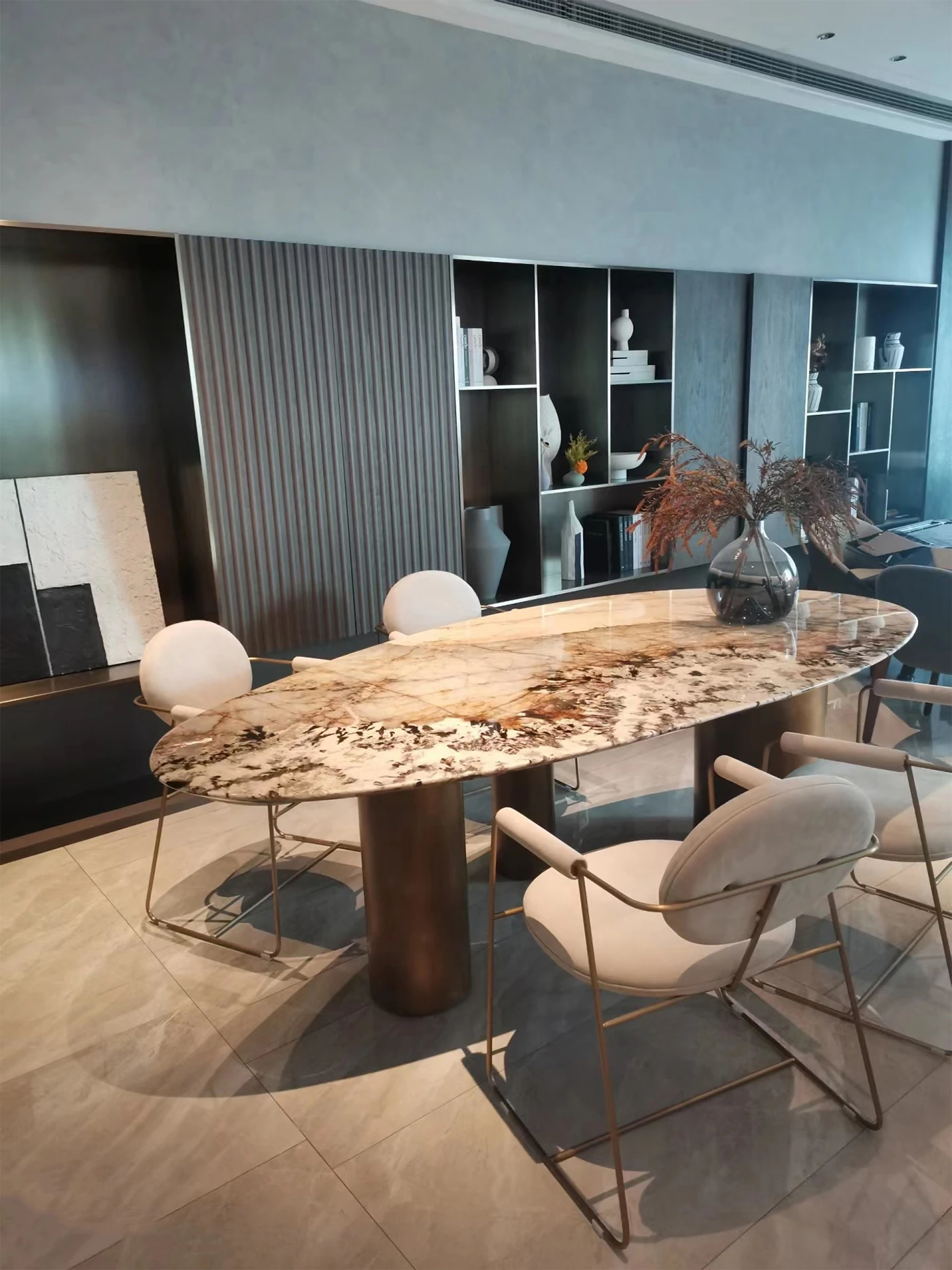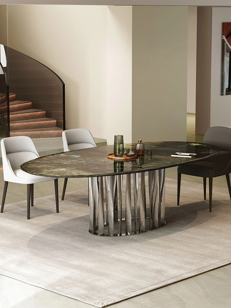 彼愛天然高級石材ダイニングテーブル - ブルージェイドのイタリアンラグジュアリー、純天然大理石使用のエレガントなオーバルテーブルで、上質な食事体験を演出します。