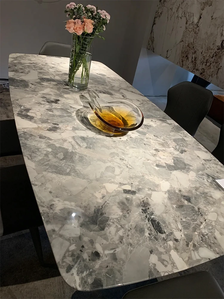 ブラジル産ブルークリスタル天然大理石の高級長方形ダイニングテーブル - 小紅書でおすすめのラグジュアリーな一品!