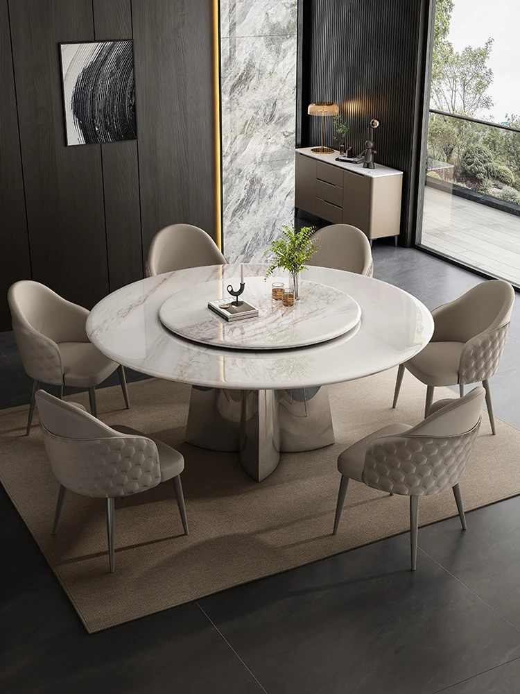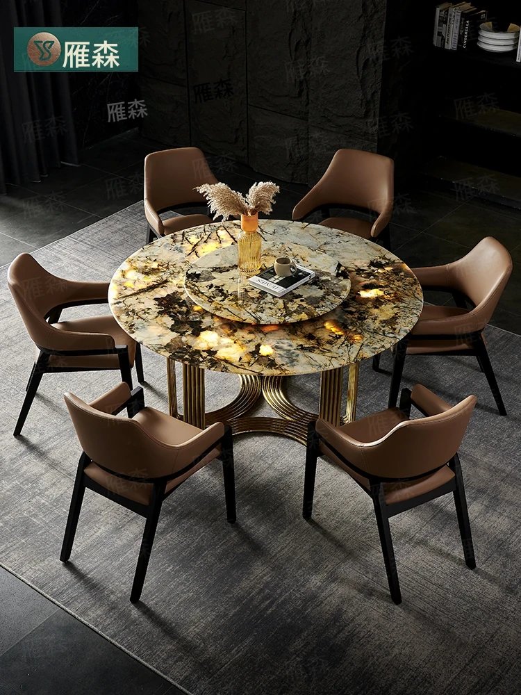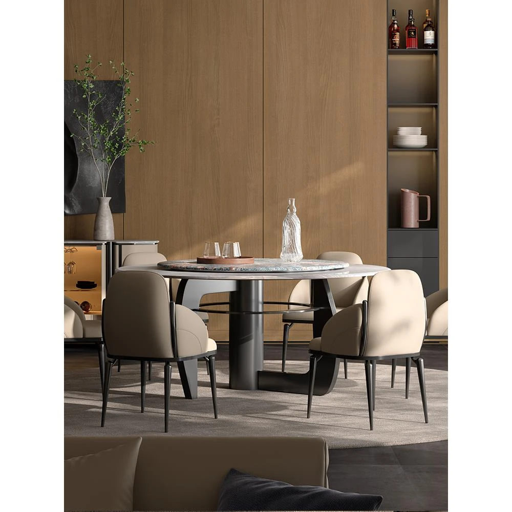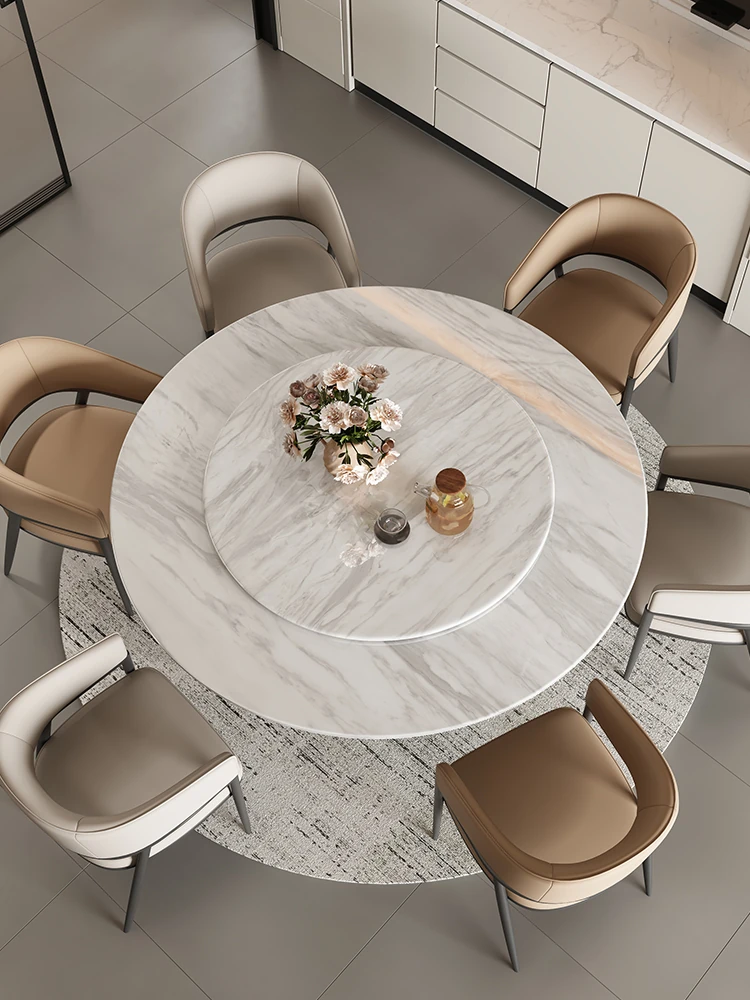 デザイン全案実現!東方大理石の円形回転式ダイニングテーブル - ヴィラ向けレストランシリーズ家具。洗練されたスタイルで、あなたの食卓に贅沢なひとときを演出します!
