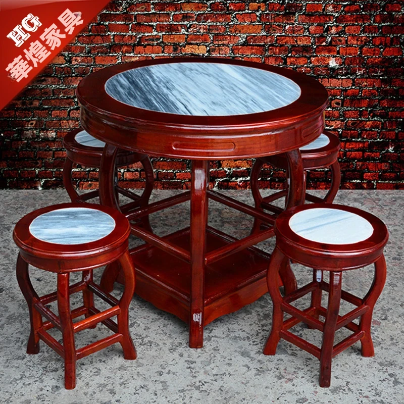アンティーク風の無垢材カフェテーブルセット - 朝食や軽食に最適な大理石の円形テーブル。商業用にも最適なデザインで、どんなカフェやレストランにもぴったり!おしゃれな雰囲気を演出し、顧客を引き寄せるアイテムです。