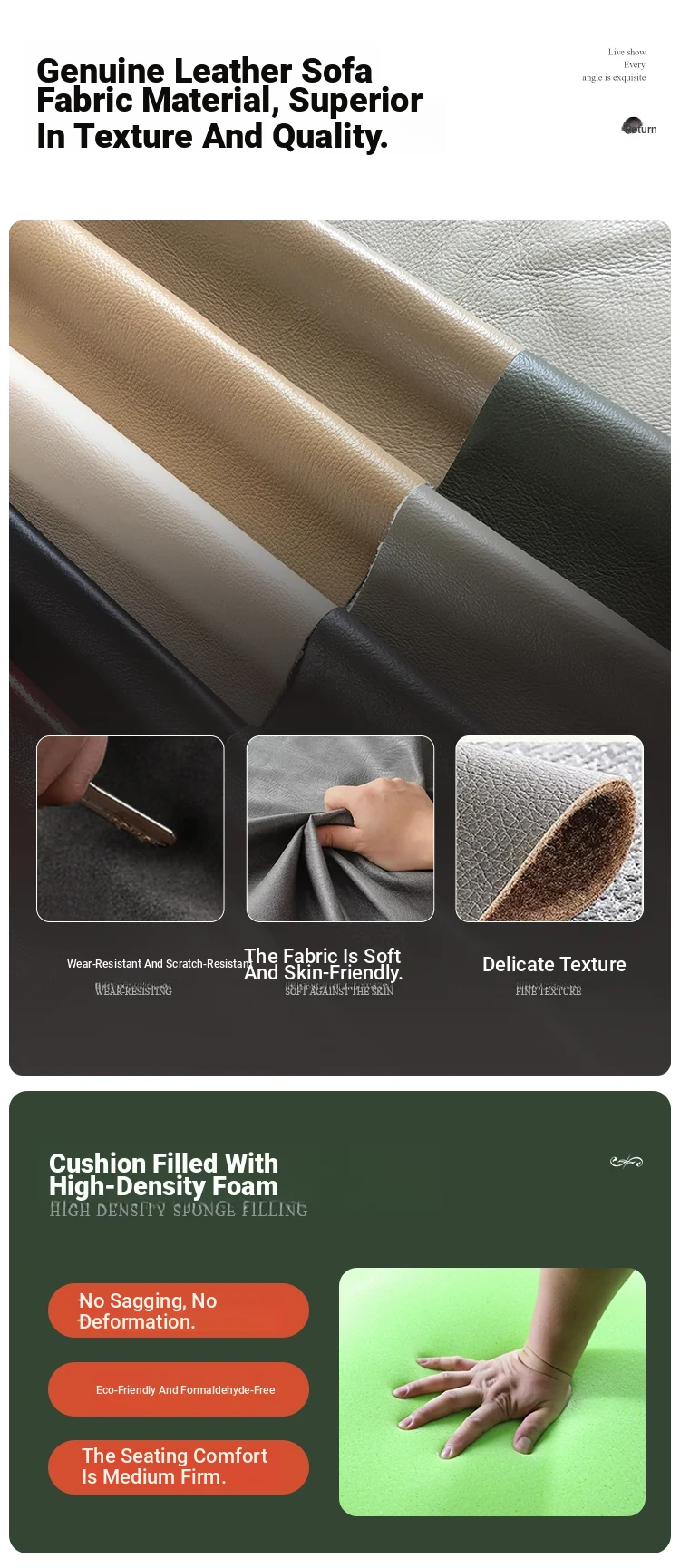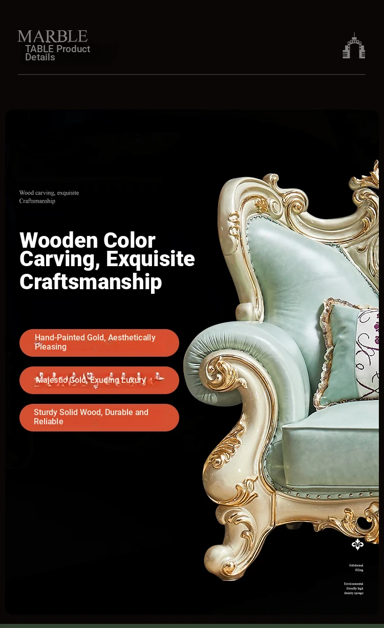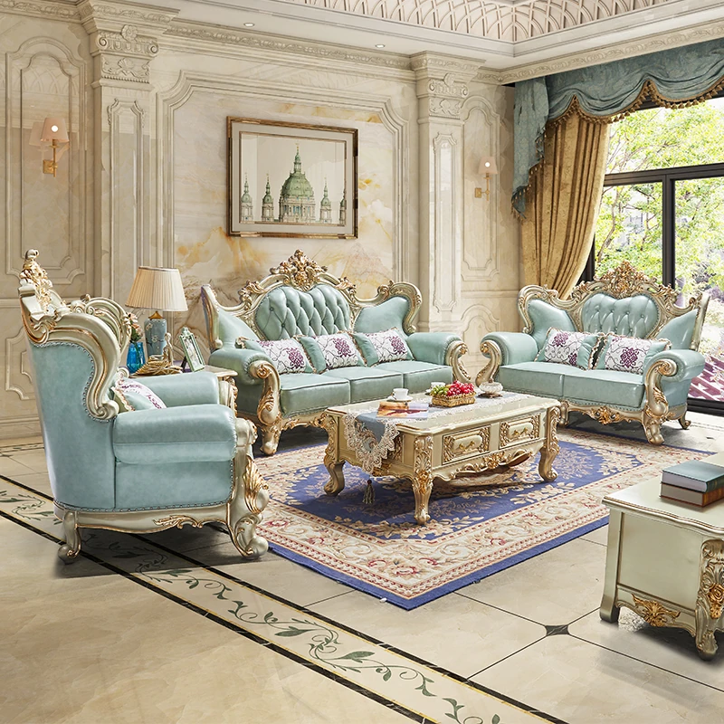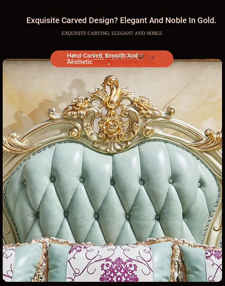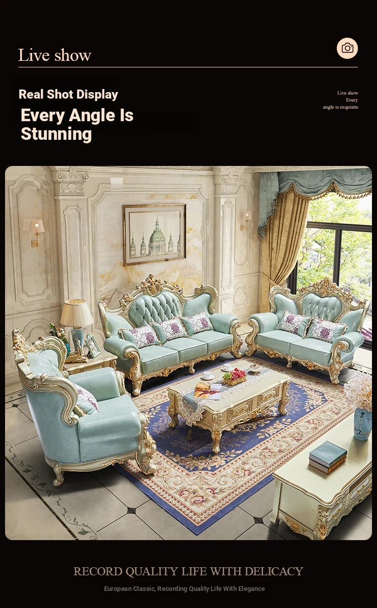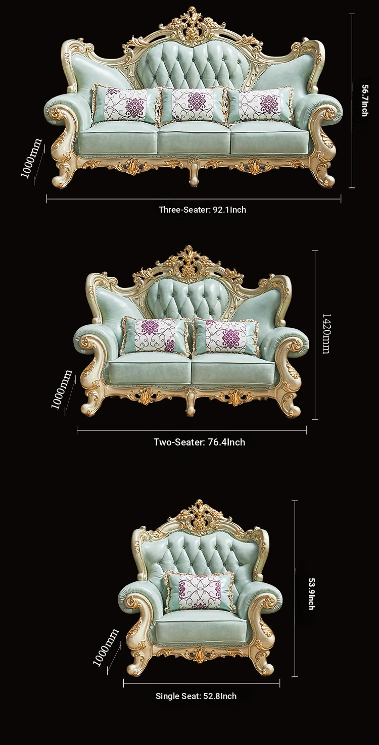 Elegant European-Style Luxury Villa Sofa Set - 1+2+3 Piece Solid Wood Carved Design with Premium Genuine Leather for Cozy Small Living Rooms