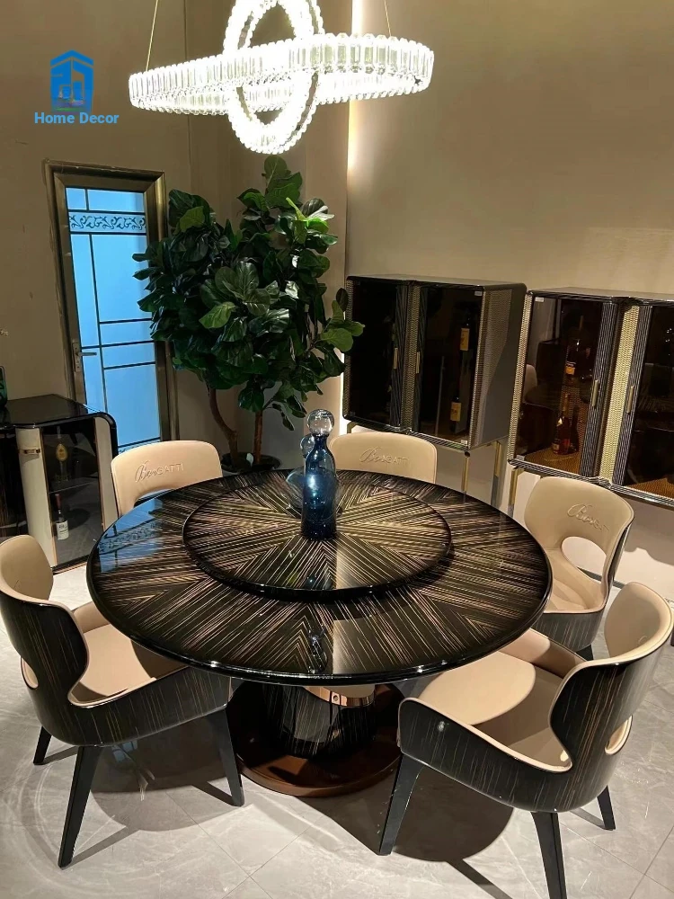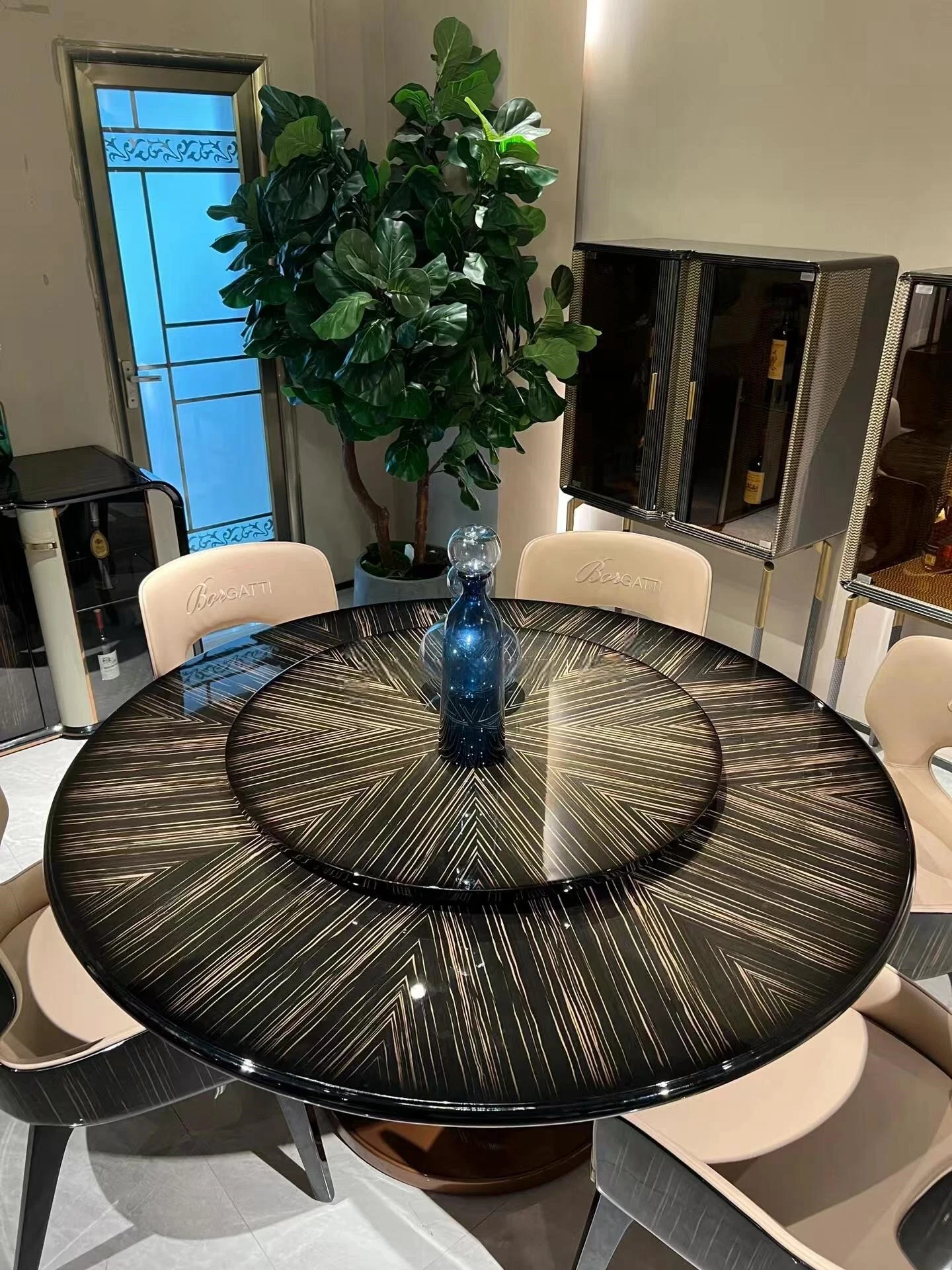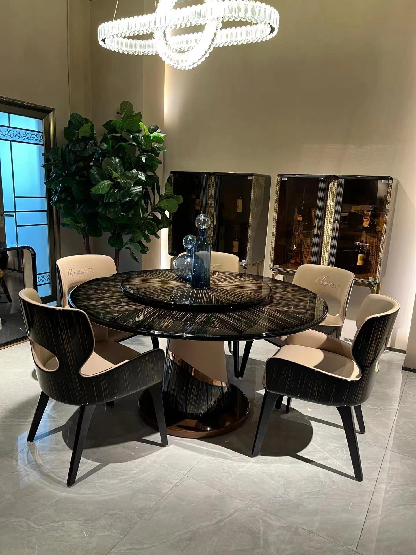 Elegant Italian Modern Minimalist High-End Villa Dining Room Furniture Set - Bentley Solid Wood Round Dining Table and Chairs for Spacious Living Spaces