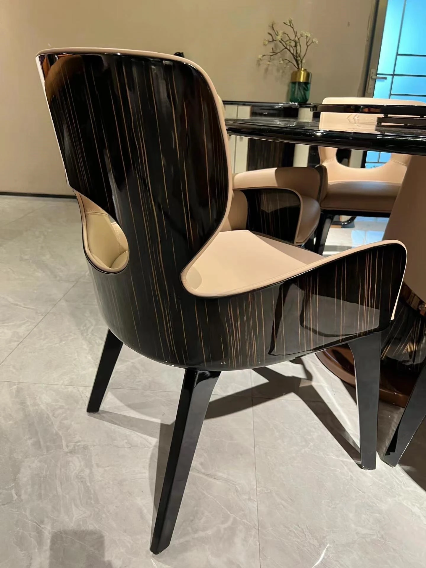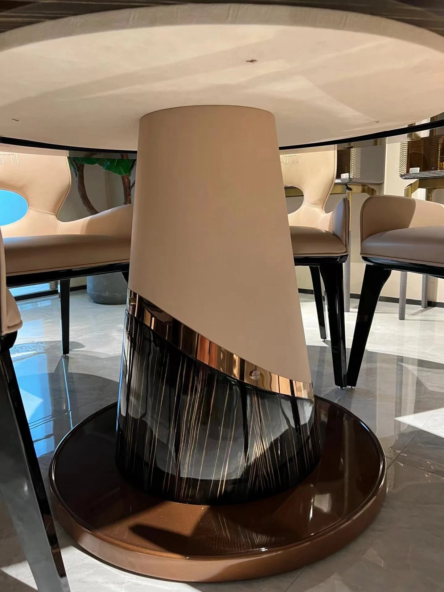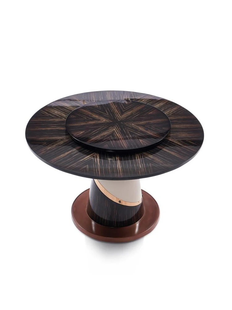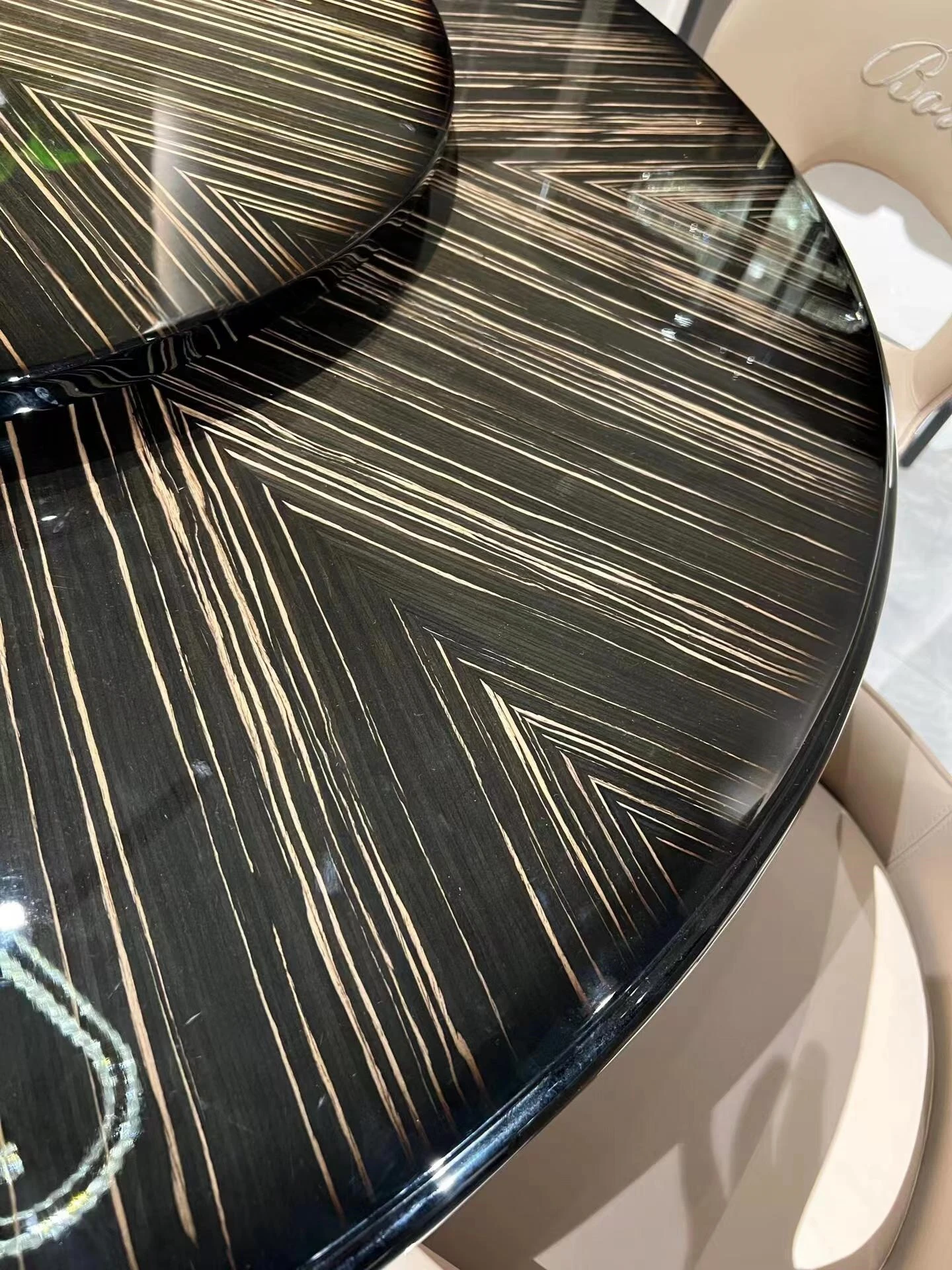 Elegant Italian Modern Minimalist High-End Villa Dining Room Furniture Set - Bentley Solid Wood Round Dining Table and Chairs for Spacious Living Spaces