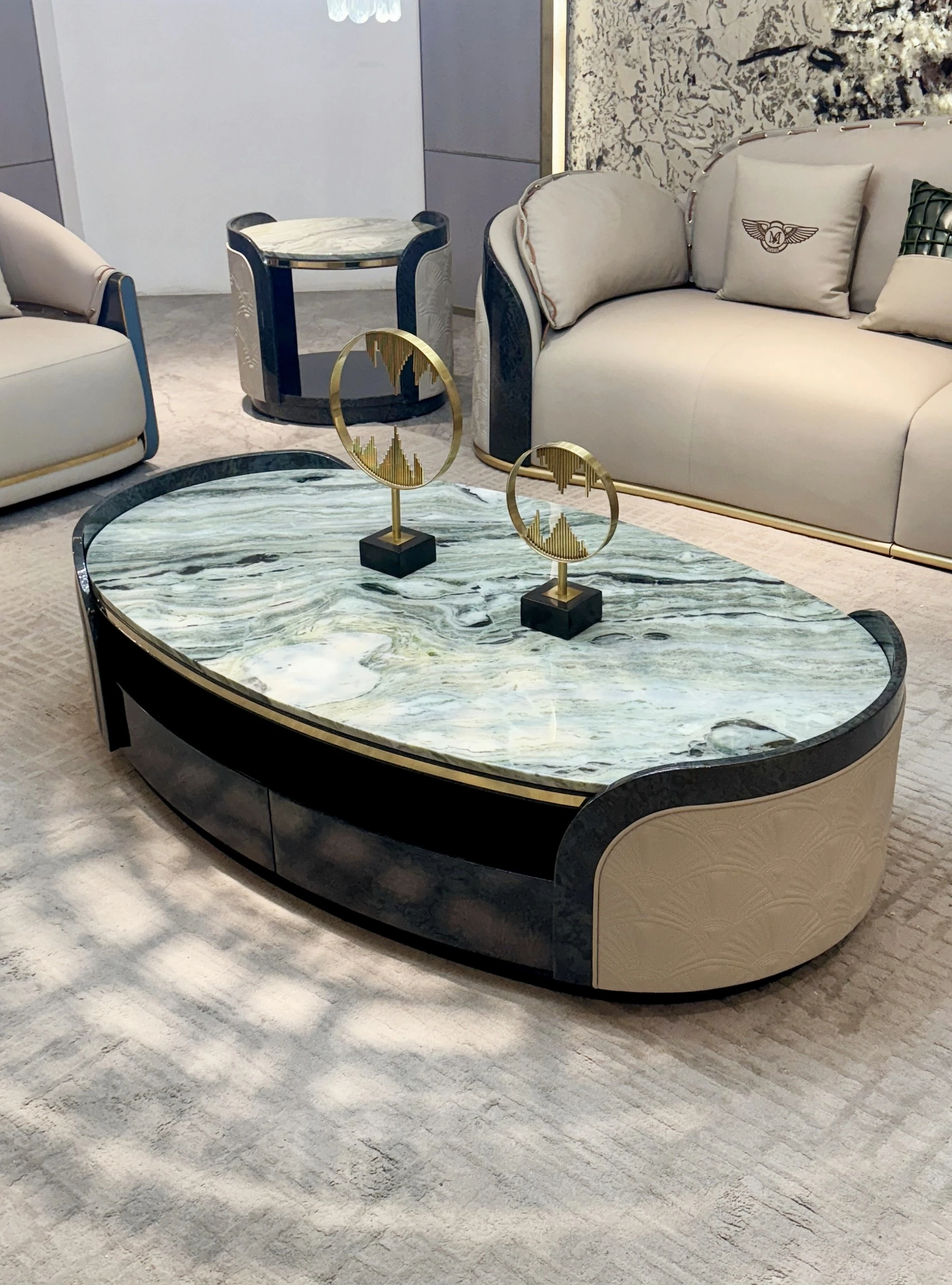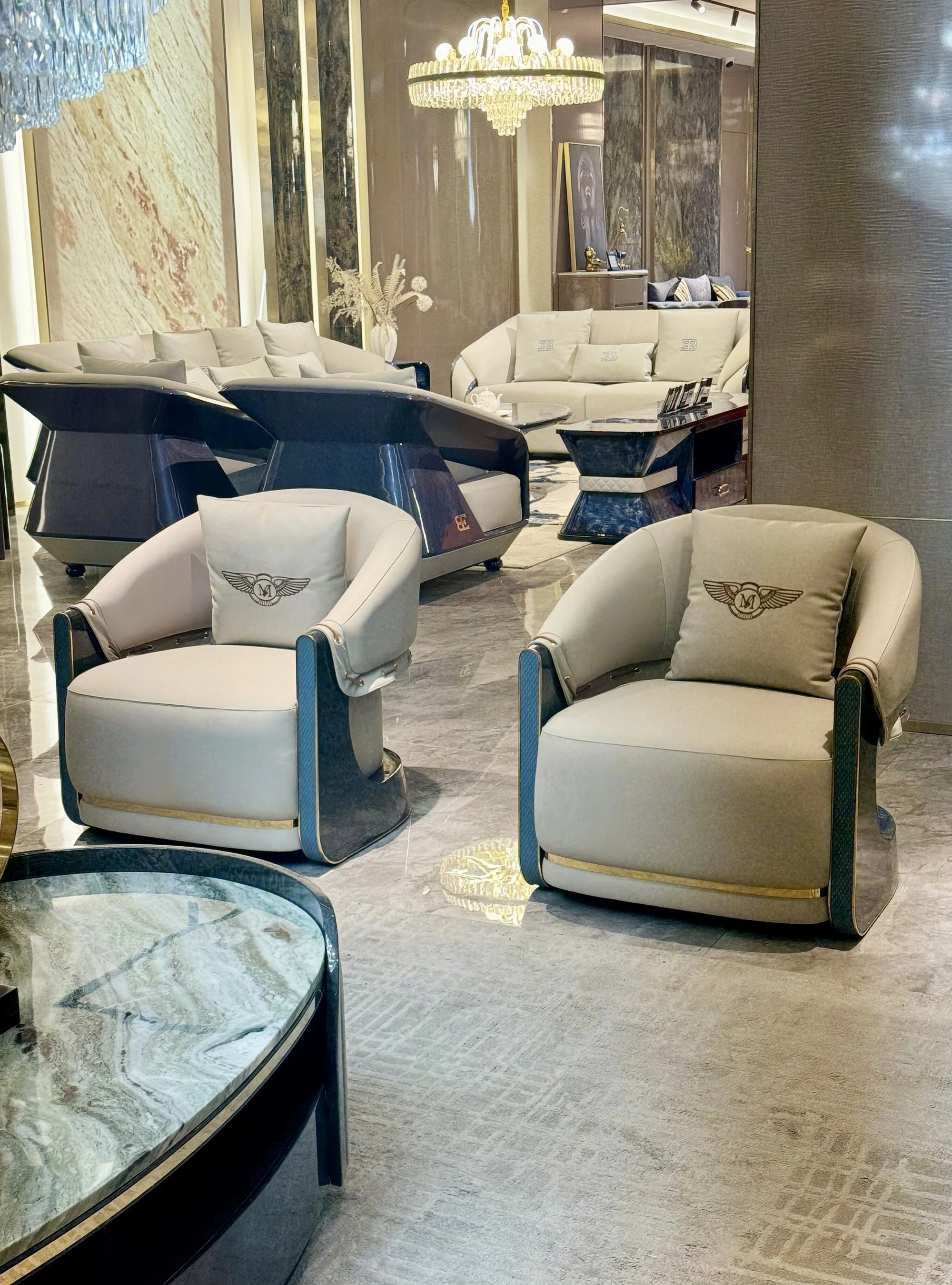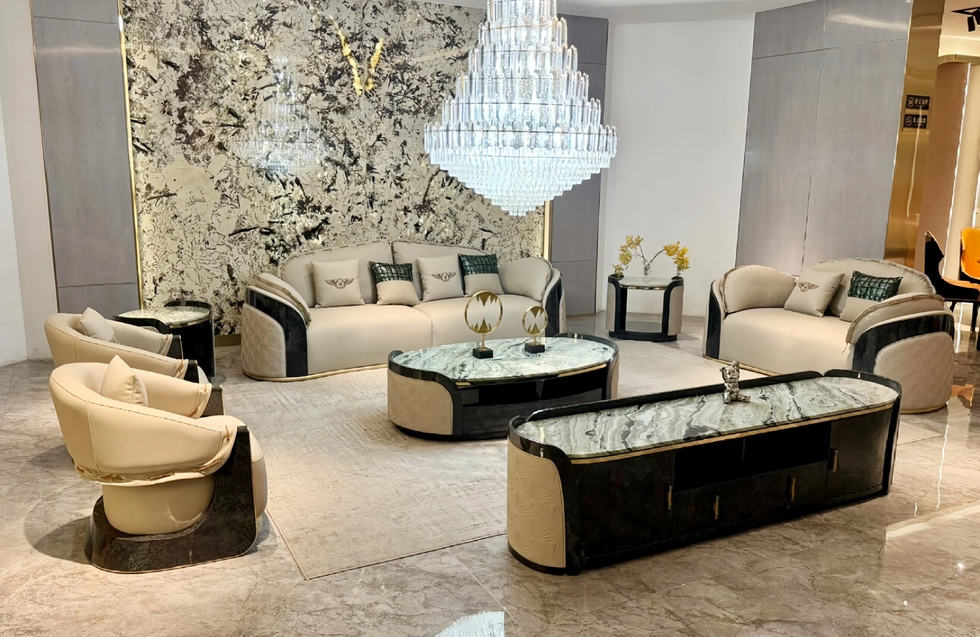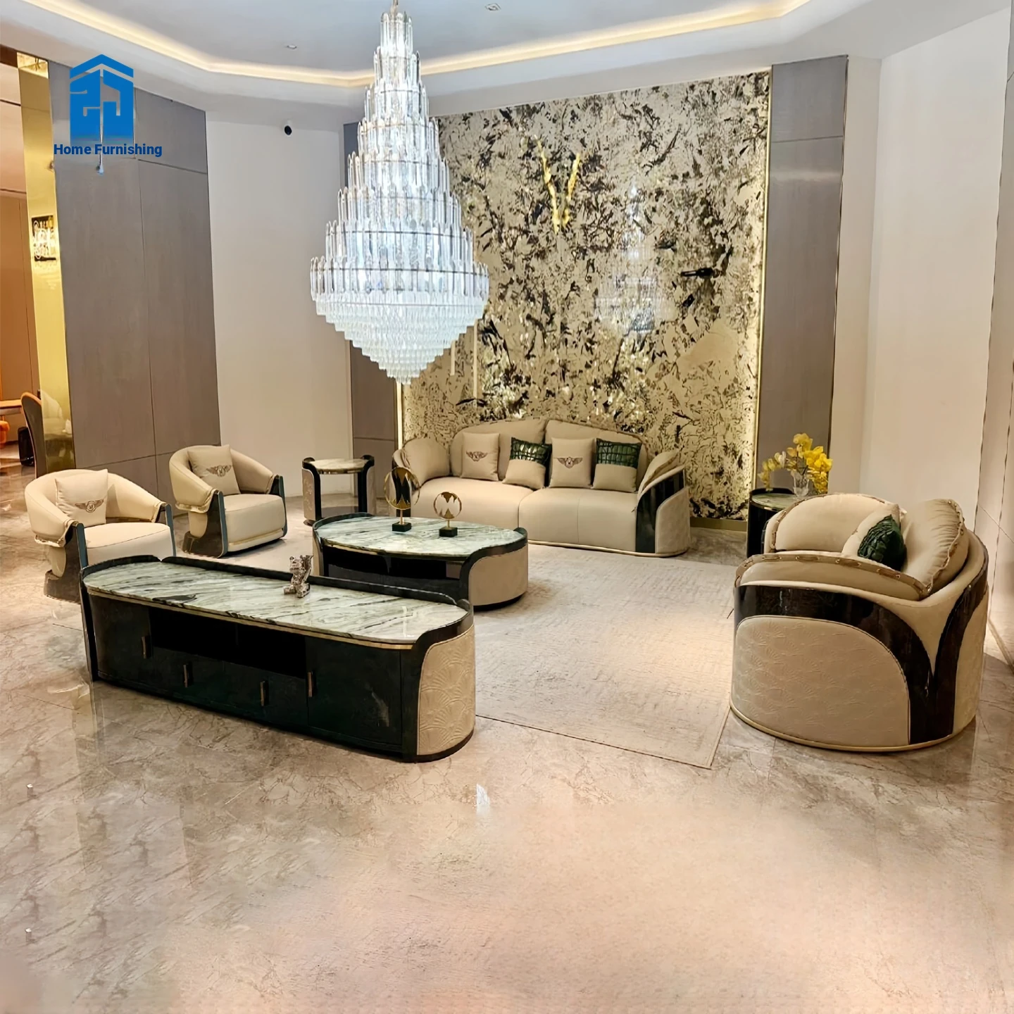 Italian Luxury Modern Villa Furniture Set - Bentley Style Genuine Leather Sofa for Elegant Living Rooms