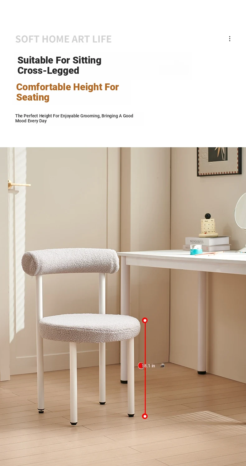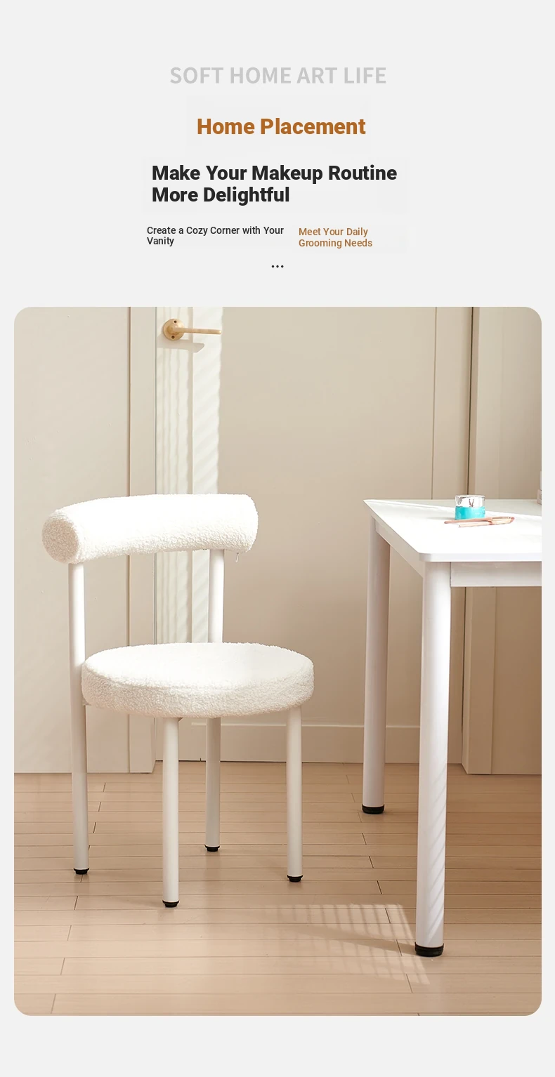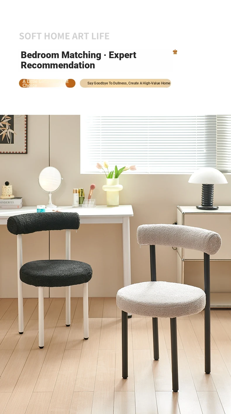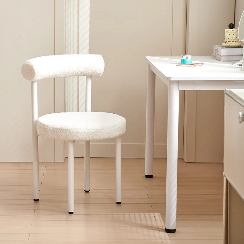 Minimalist Cream-Style Makeup Chair with Backrest - Comfortable Metal Vanity Stool for Long Sitting, Perfect for Home Use, Chic and Affordable Luxury