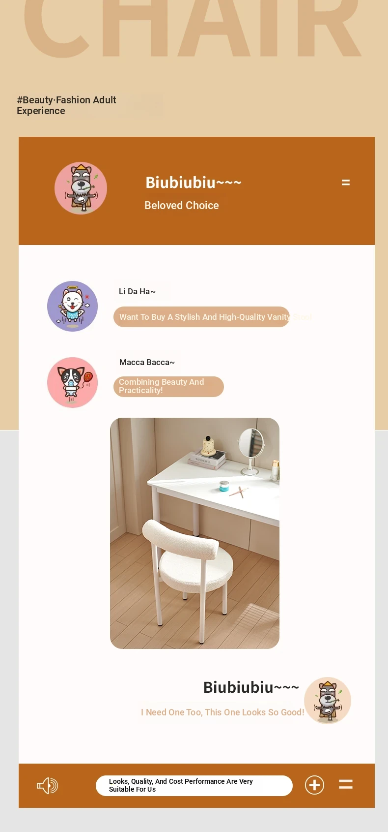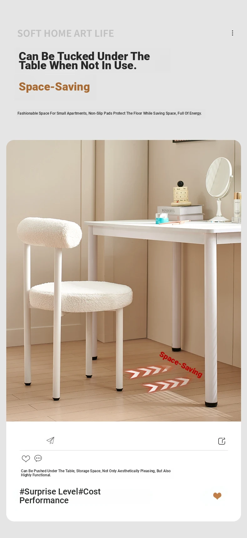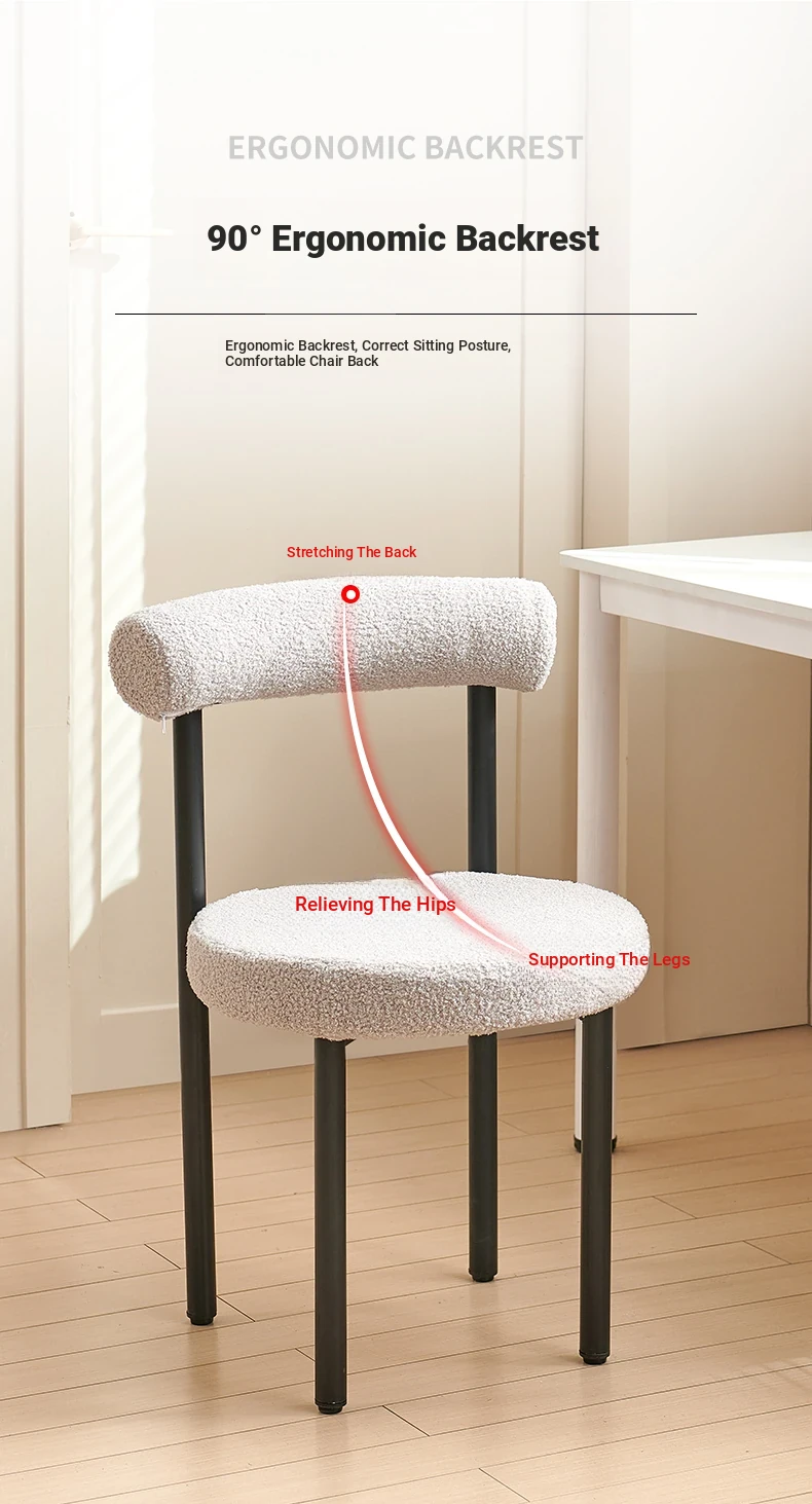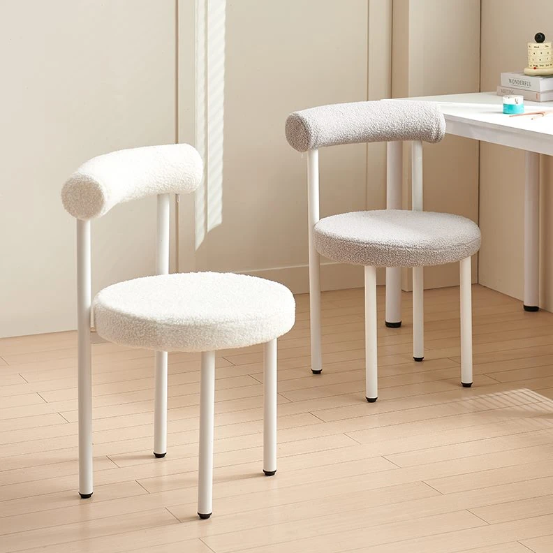Minimalist Cream-Style Makeup Chair with Backrest - Comfortable Metal Vanity Stool for Long Sitting, Perfect for Home Use, Chic and Affordable Luxury