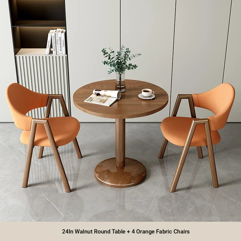 Orange 2 Cloth Chair +60 Walnut Round Table