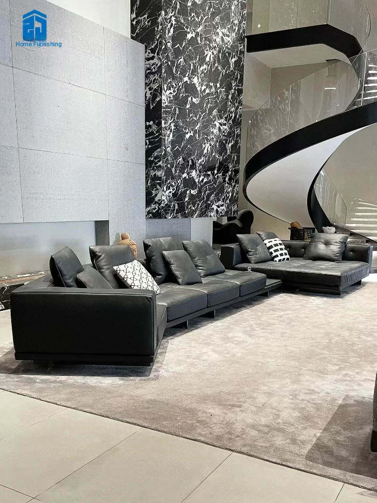 New Italian Minimalist Luxury Napa Leather Villa Flat High-End Living Room Sofa - DYLAN