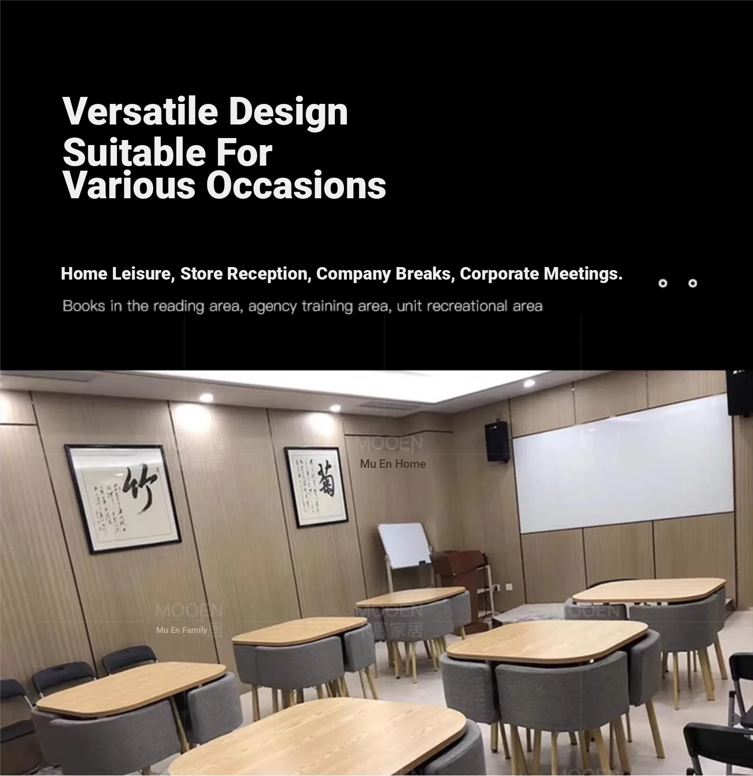 03-cloth chair) 31.50in wood grain table/dark gray table four chairs