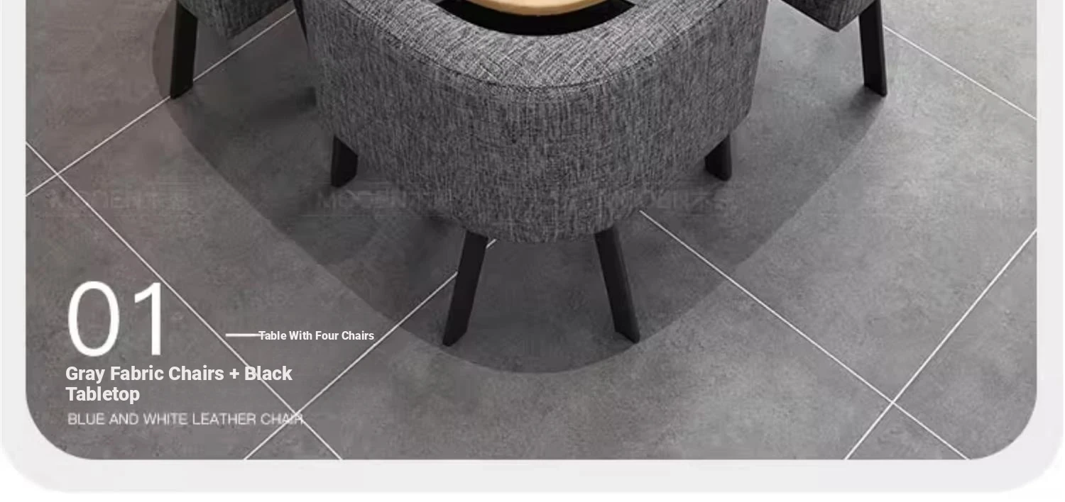 02-cloth chair) 31.50in wood grain table/light gray table four chairs