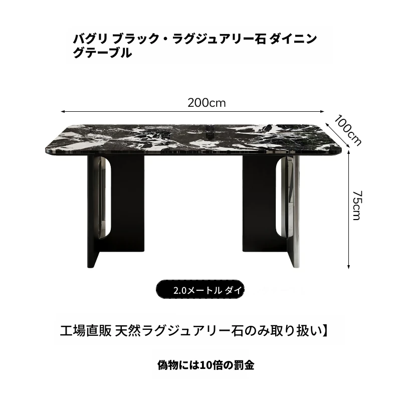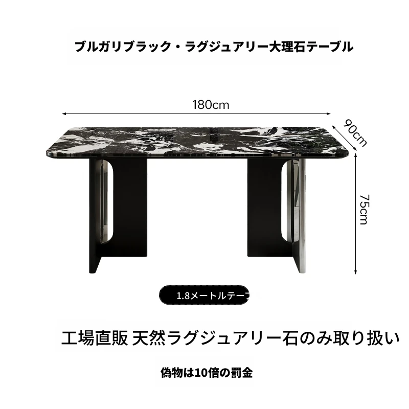 1.8メートル ボッテガ・ヴェネタ ブラック 天然石 テーブル 【偽物は10倍返し】