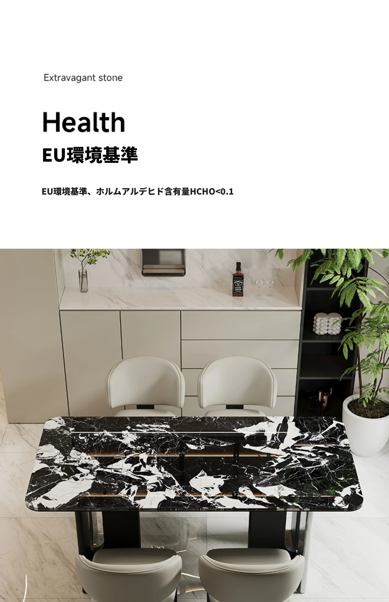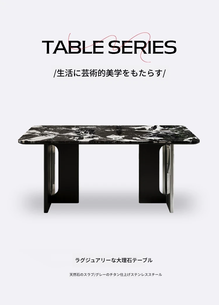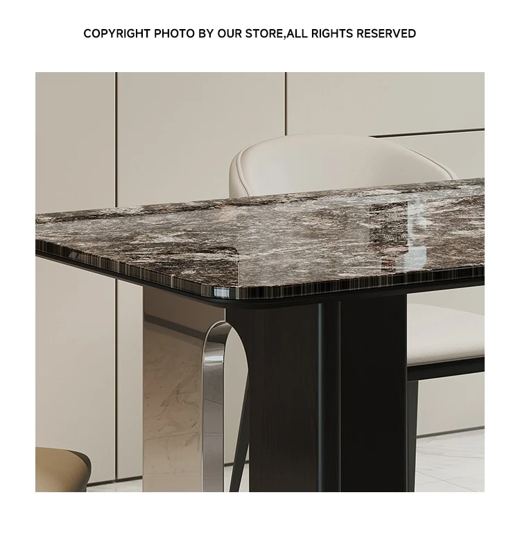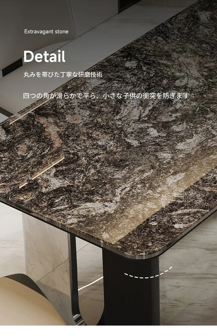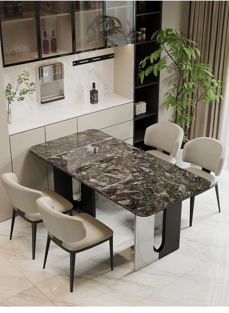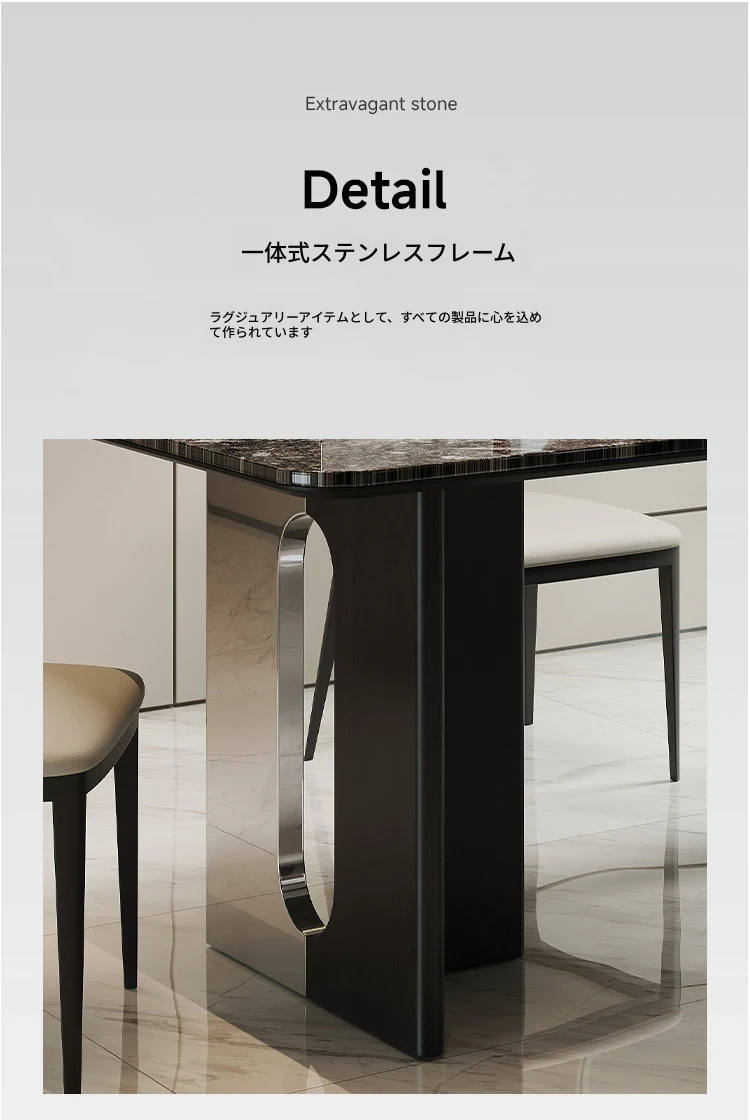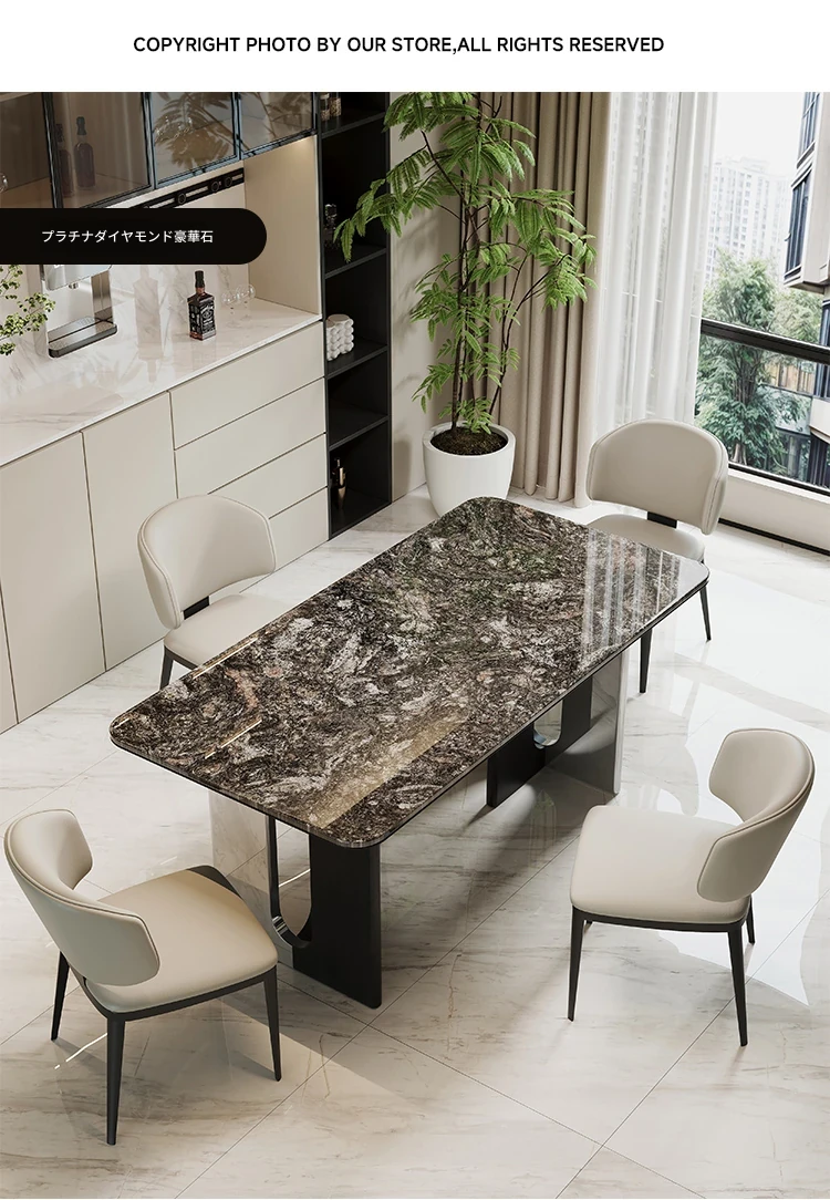 2025年新作!黒いバルガリー大理石ダイニングテーブル - ラグジュアリー感溢れる現代的でシンプルな長方形家庭用テーブルと椅子セット。おしゃれな食卓で特別なひとときを!