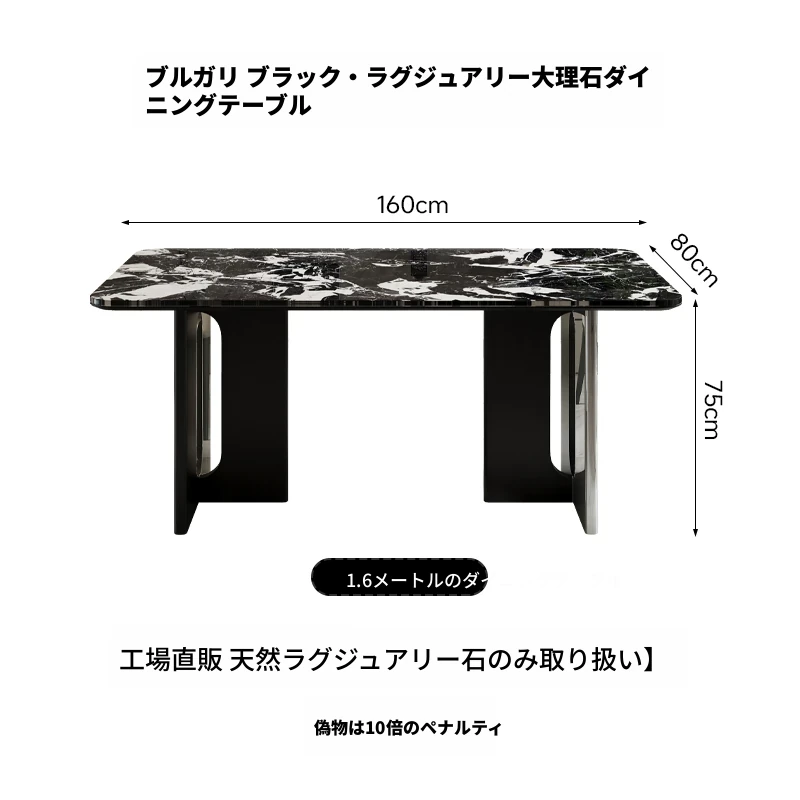 1.6メートル ボッテガ・ヴェネタ ブラック 天然石 テーブル 【偽物は10倍返し】