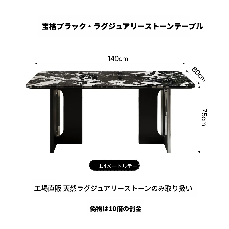 1.4メートル ボッテガ・ヴェネタ ブラック 天然石 テーブル 【偽物は10倍返し】