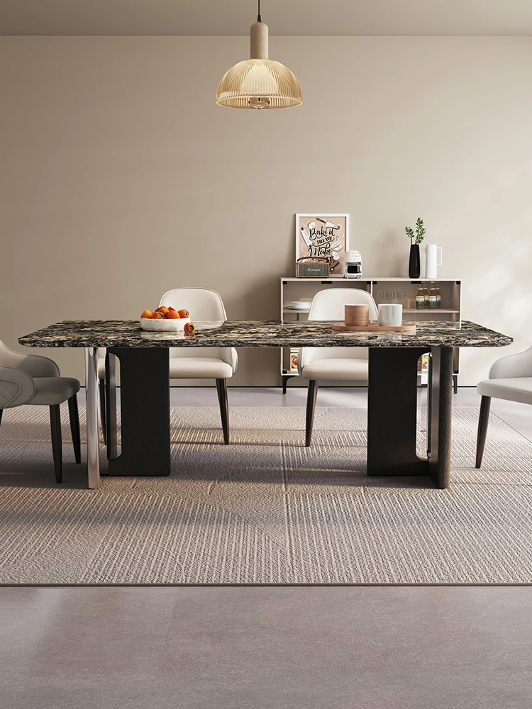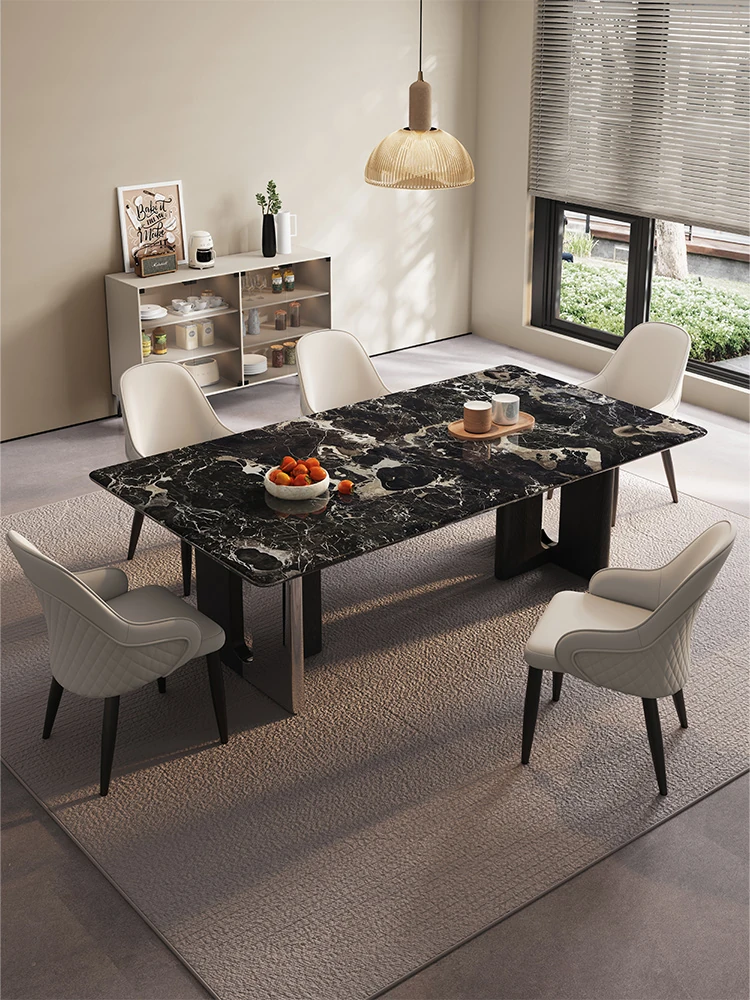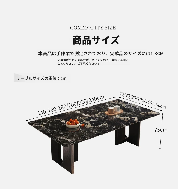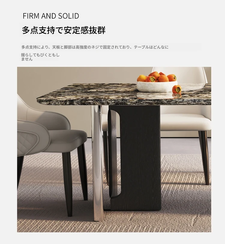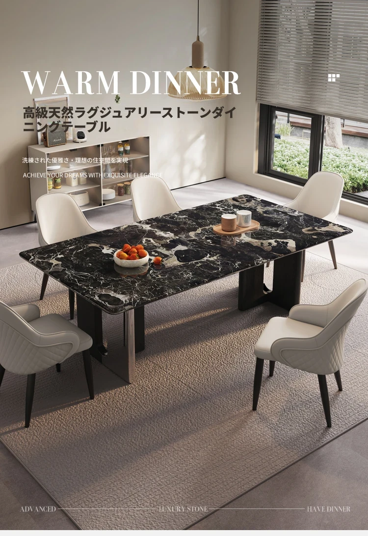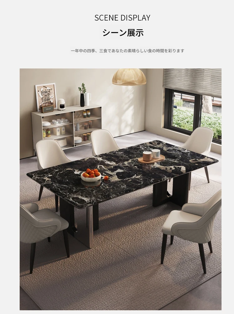 2025年新作!高級感溢れる黒バラデザインの長方形テーブルセット。天然輸入大理石使用で、洗練された軽やかな贅沢を実現。おしゃれなダイニング空間を演出します!