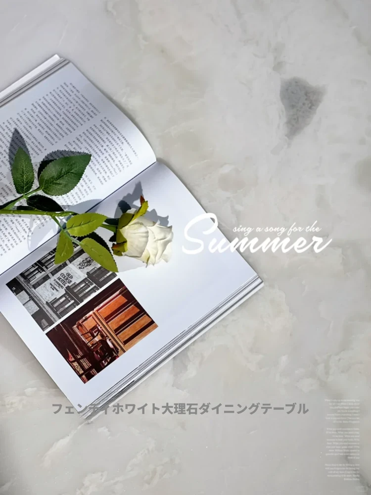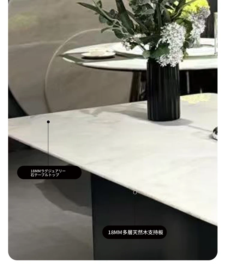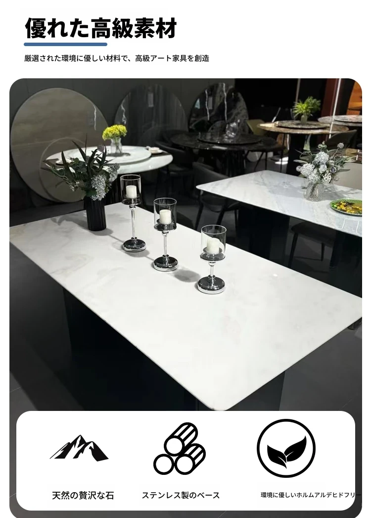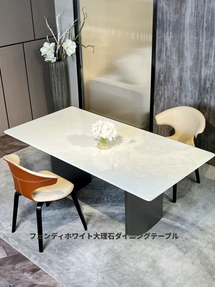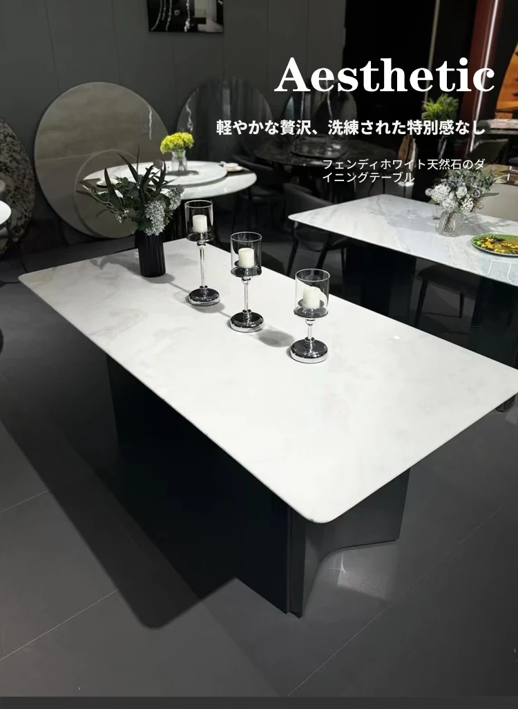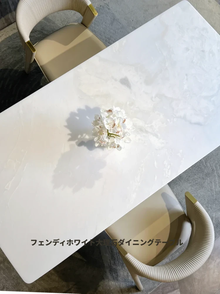 2025年最新モデル!純天然フィンディホワイト高級大理石ダイニングテーブルセット - おしゃれで洗練された長方形のデザイン、贅沢なひとときを演出します!