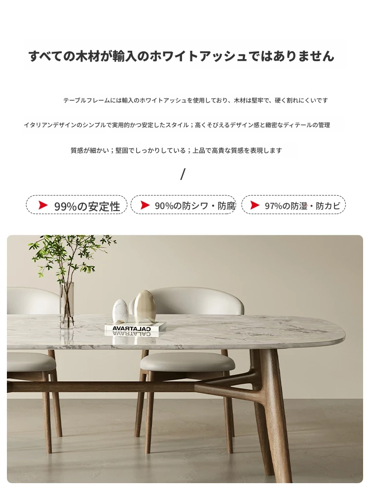 100%インポート天然ラグジュアリー石【フェンディホワイト】1テーブル6チェア/ホワイトアッシュ