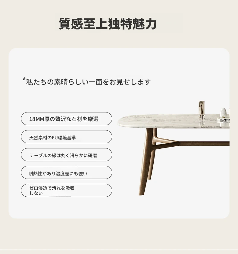 100%インポート天然ラグジュアリー石【フェンディホワイト】単テーブル/ホワイトアッシュ