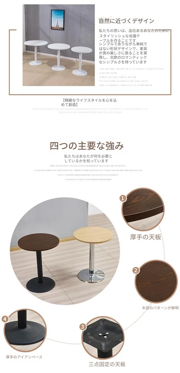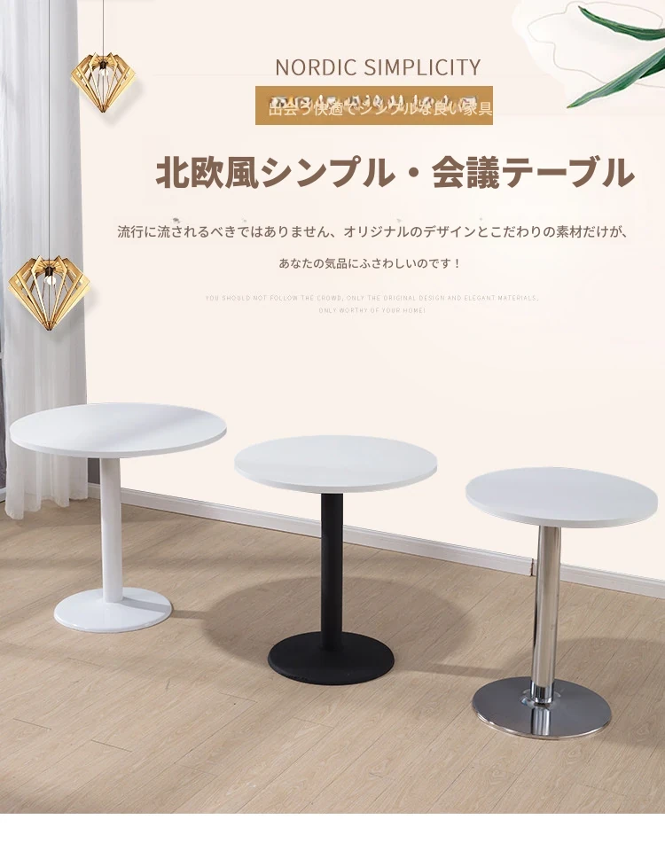 カジュアル展示会用円形テーブル - おしゃれなサロンやカフェにぴったり!来客や商談に最適なコンパクトなデザイン。お茶やコーヒーを楽しむスペースを演出します。