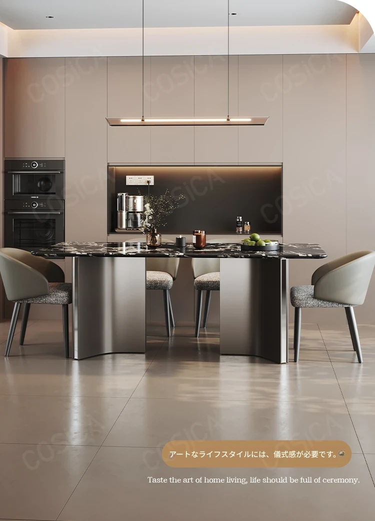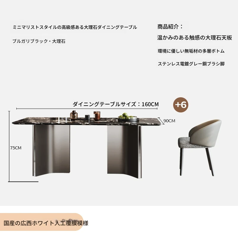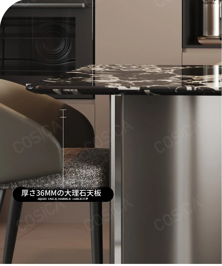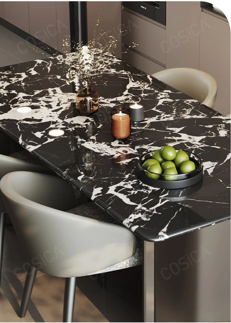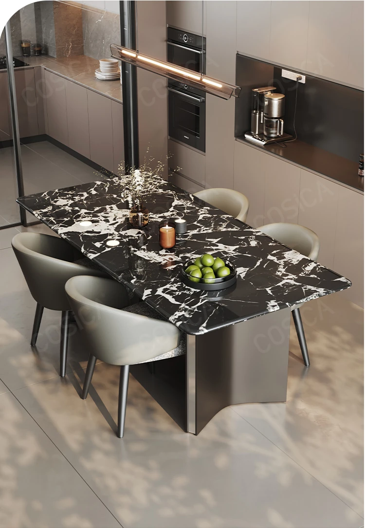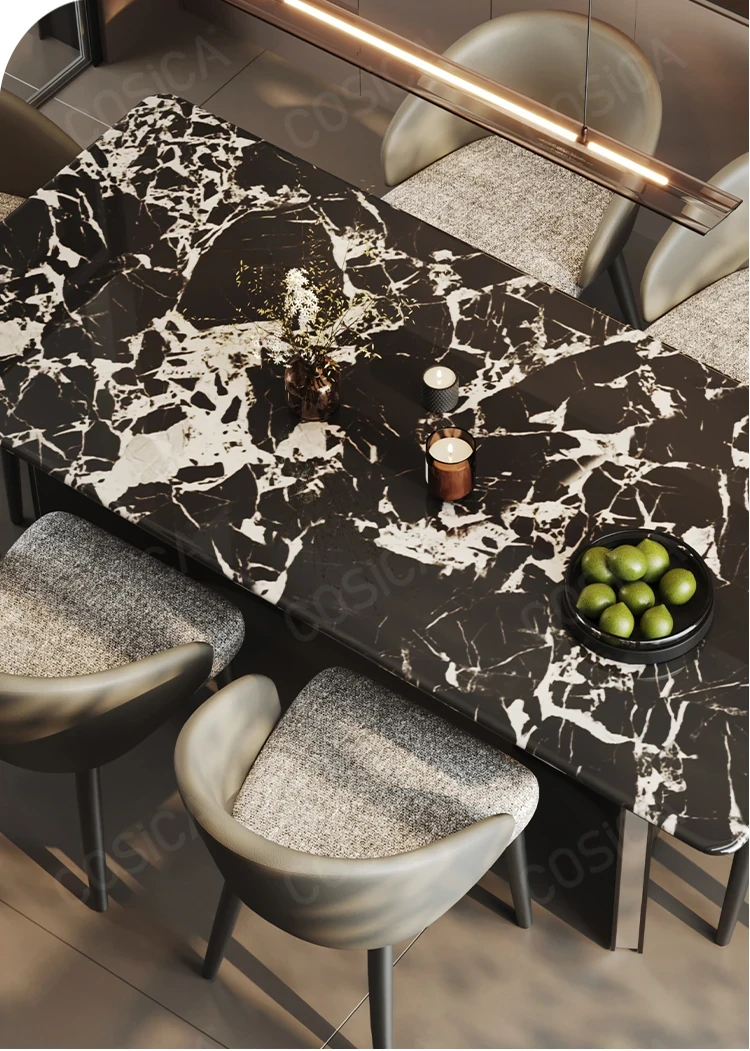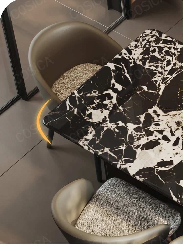 COSICA天然国産ボッカリ黒大理石ダイニングテーブルセット|イタリアンスタイルの別荘にぴったり!長方形デザインで家族や友人との食事を特別に演出します。高級感あふれる仕上がりで、インテリアにも最適です。