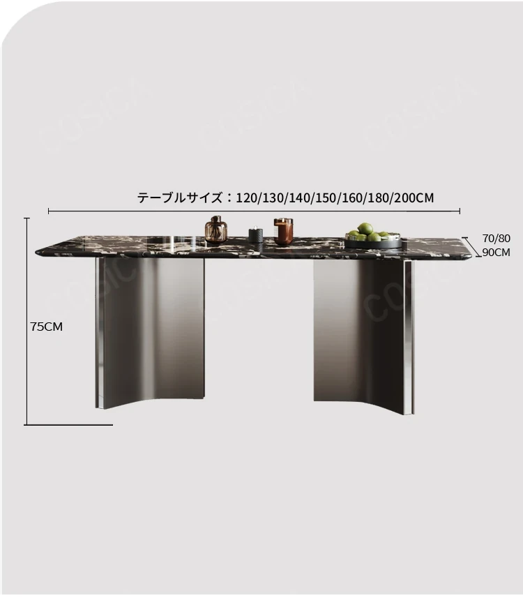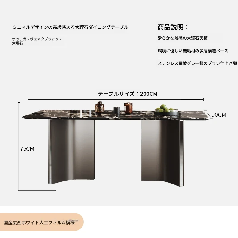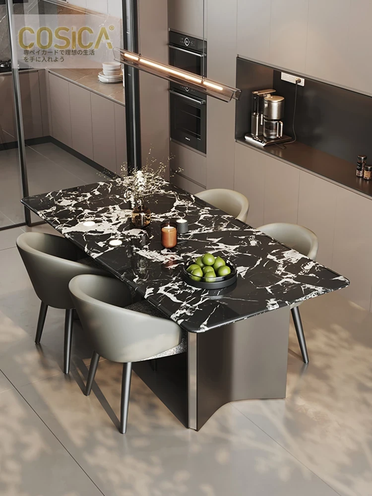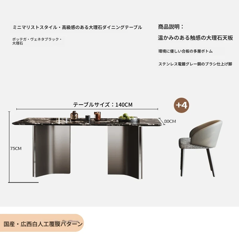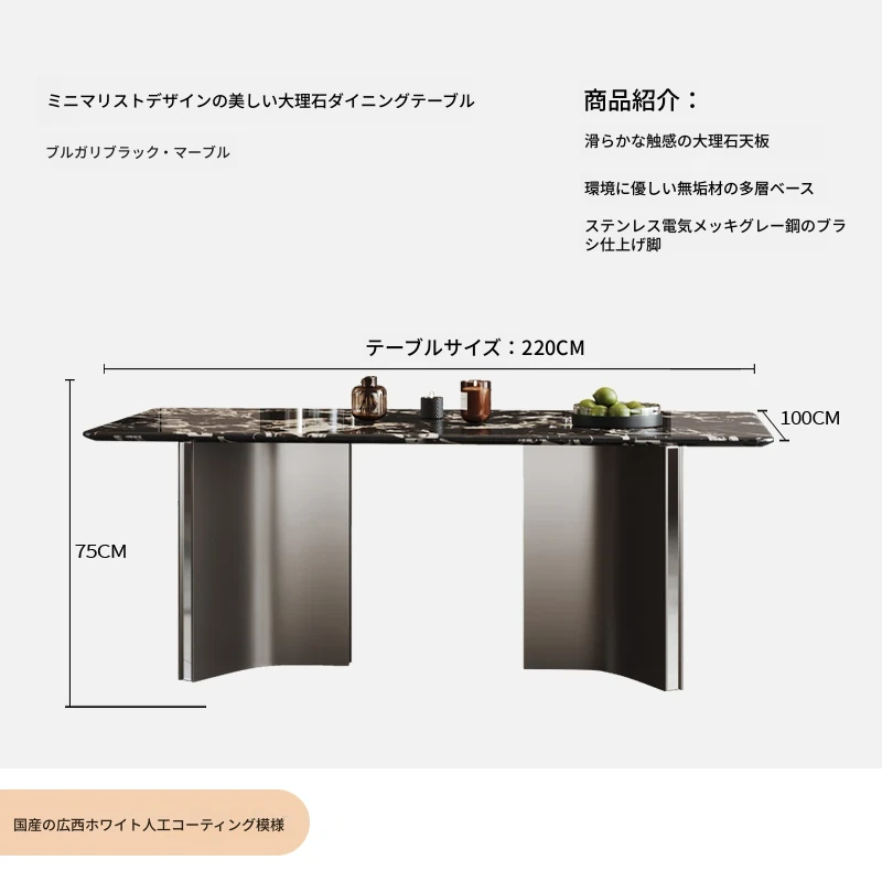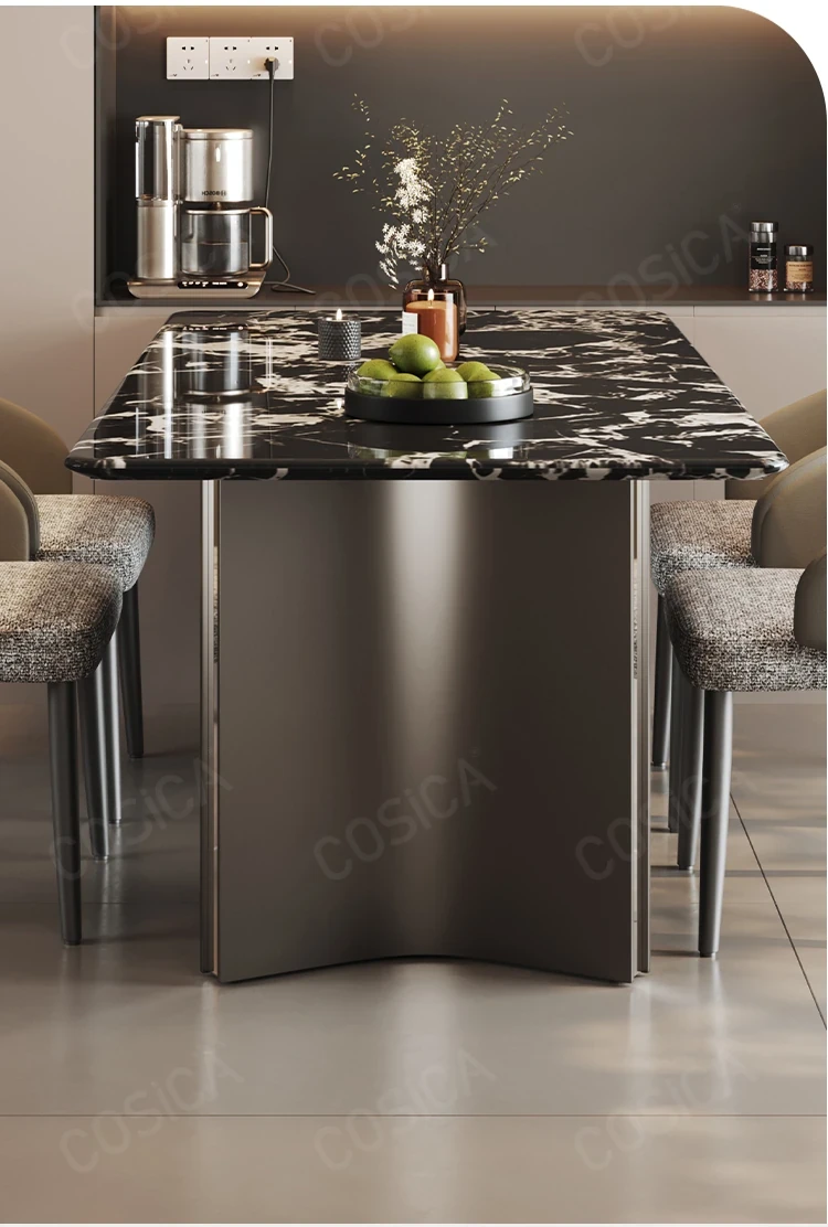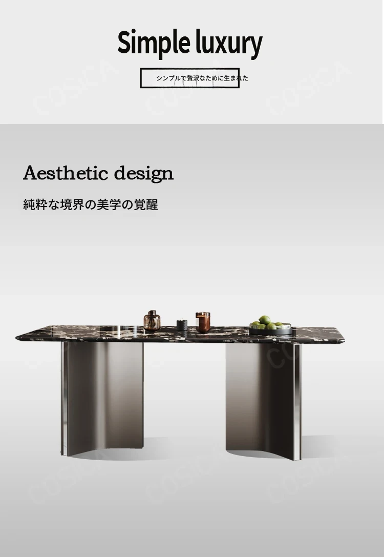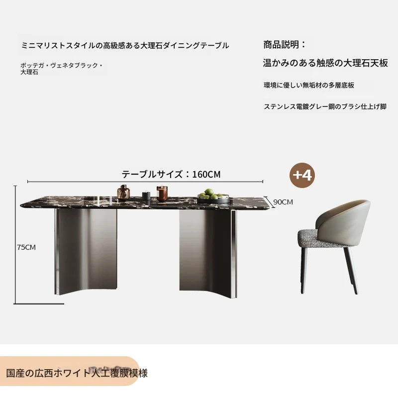 COSICA天然国産ボッカリ黒大理石ダイニングテーブルセット|イタリアンスタイルの別荘にぴったり!長方形デザインで家族や友人との食事を特別に演出します。高級感あふれる仕上がりで、インテリアにも最適です。