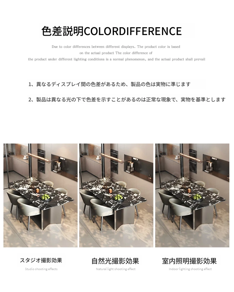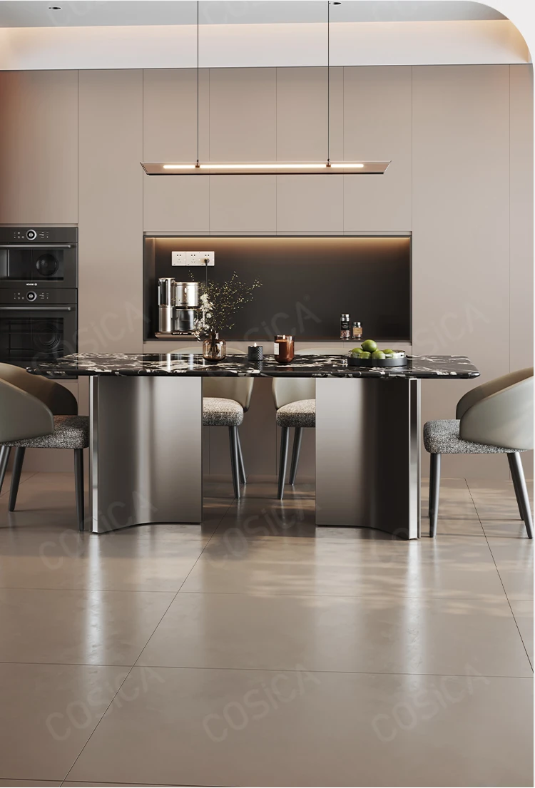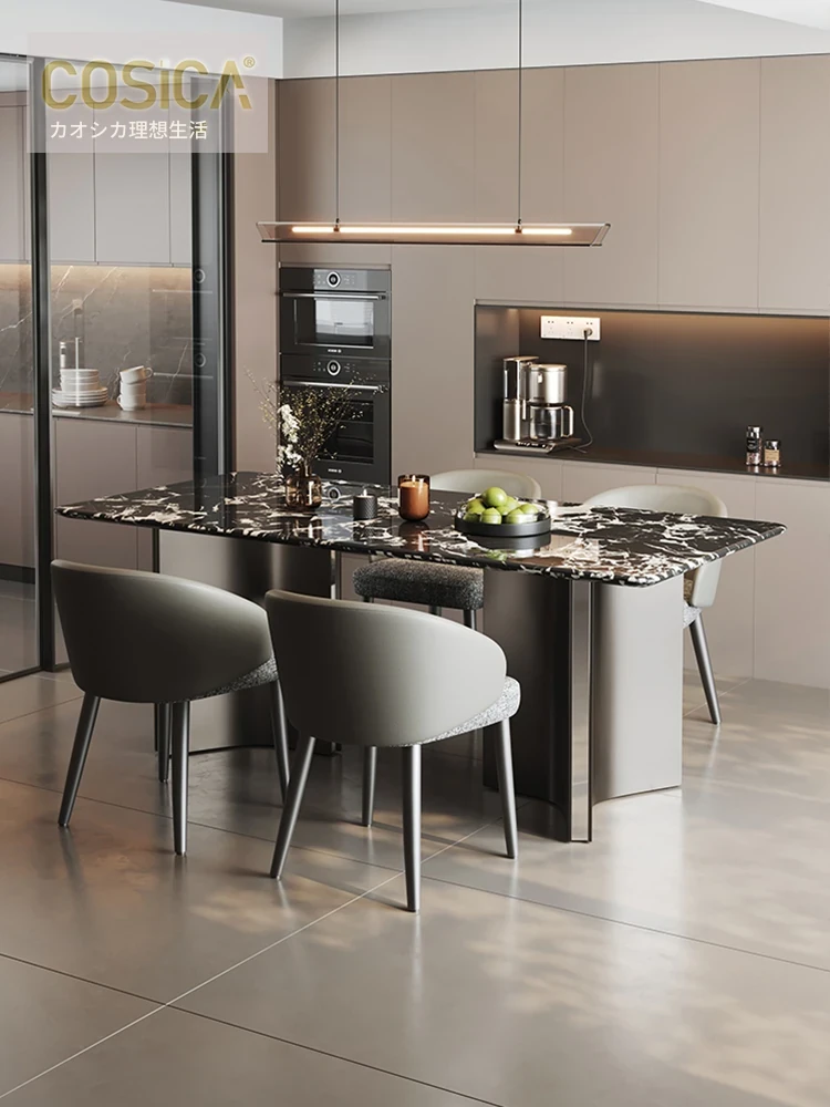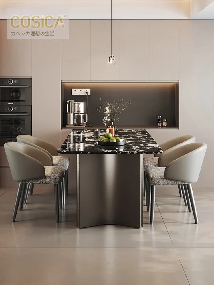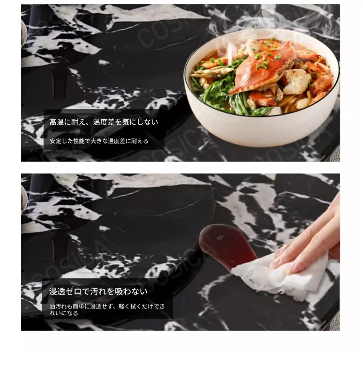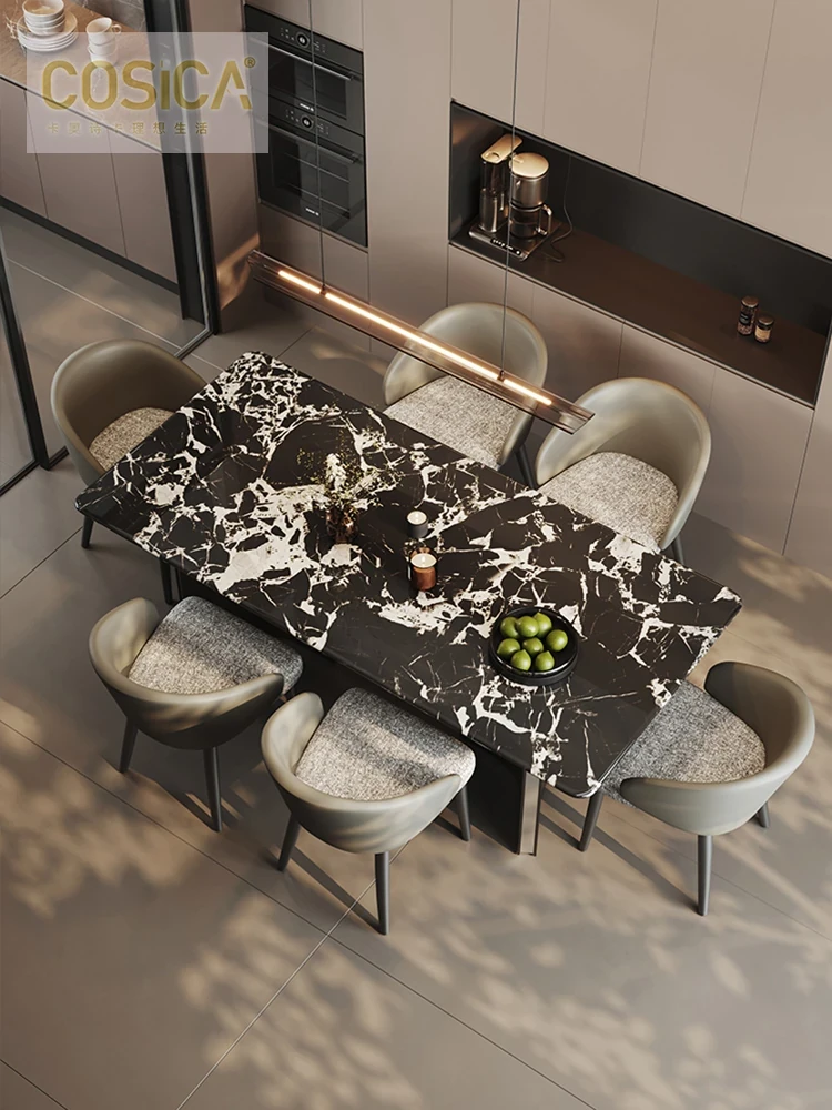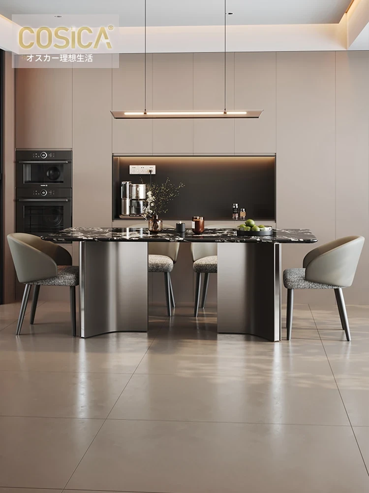 COSICA天然国産ボッカリ黒大理石ダイニングテーブルセット|イタリアンスタイルの別荘にぴったり!長方形デザインで家族や友人との食事を特別に演出します。高級感あふれる仕上がりで、インテリアにも最適です。