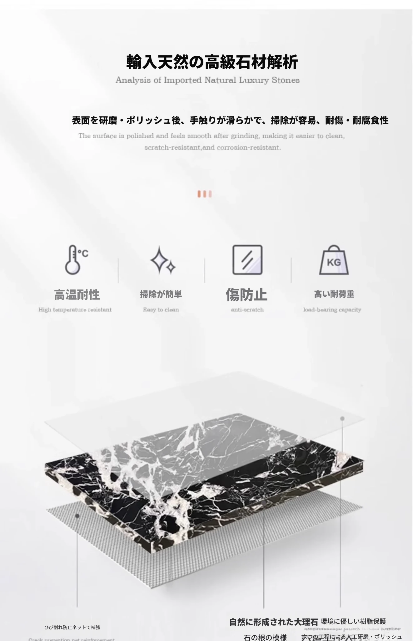 2.2X1.0メートル【国産ボッカリブラック】単体ダイニングテーブル 国産の模様は大同小異で模様の選択は不可