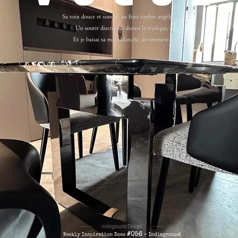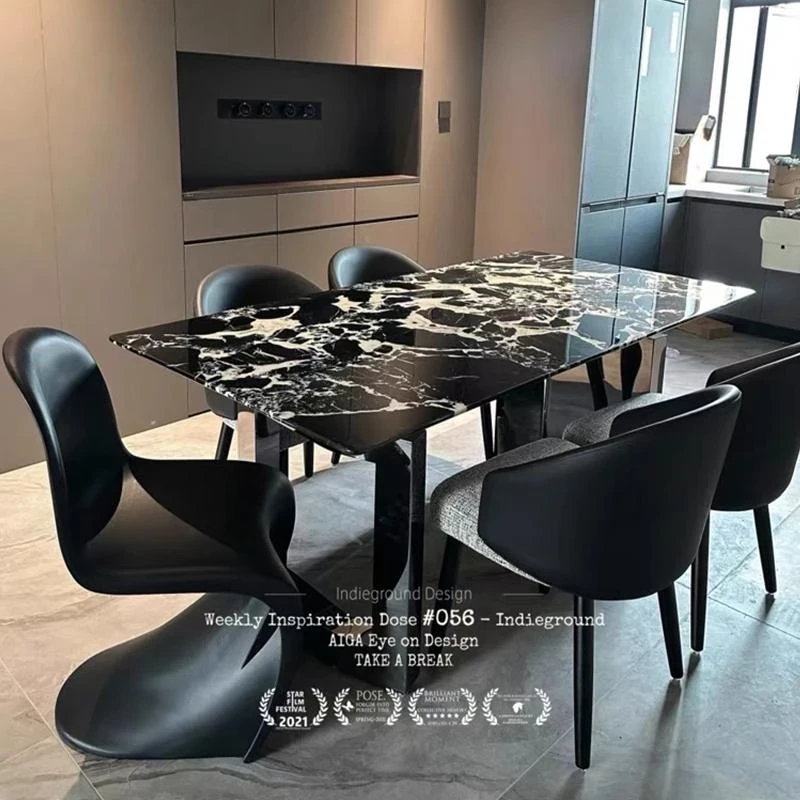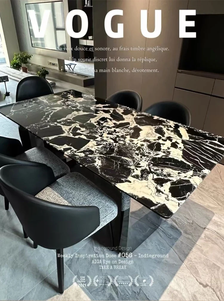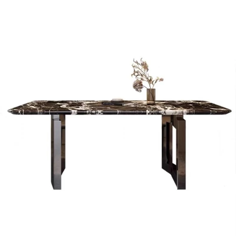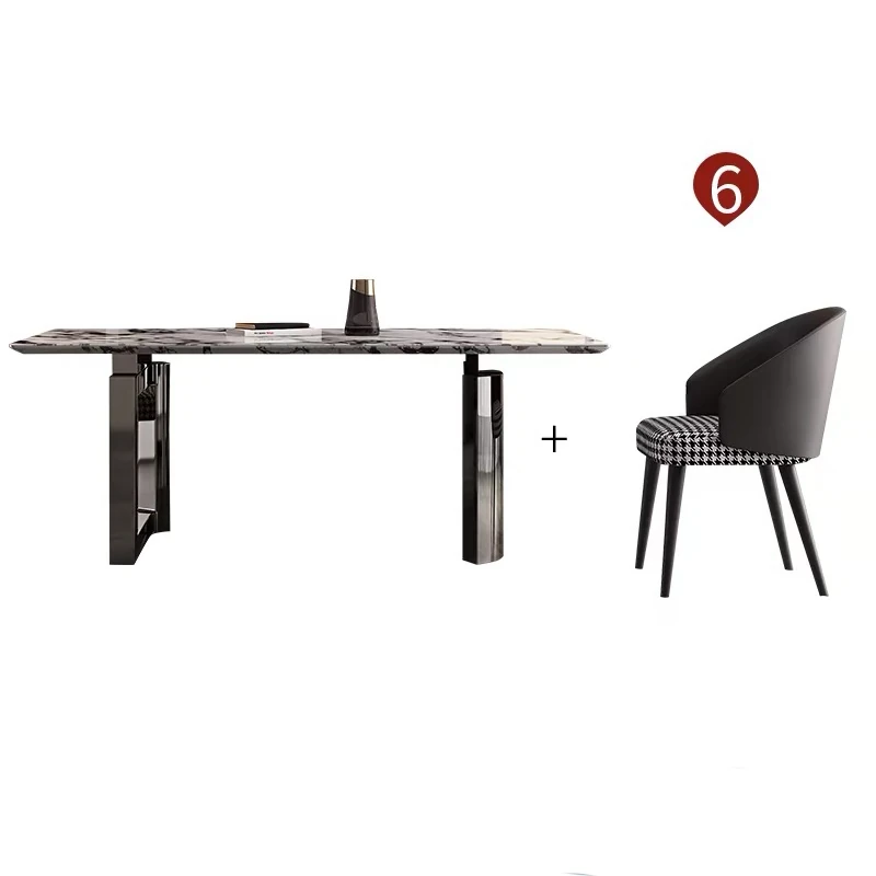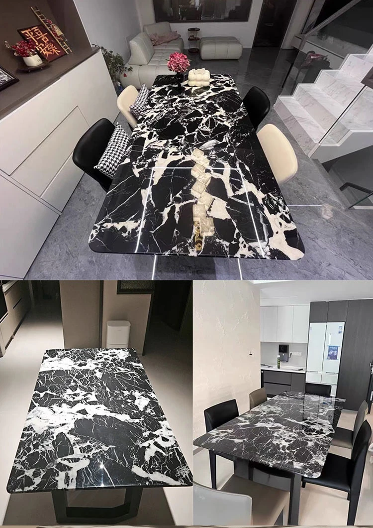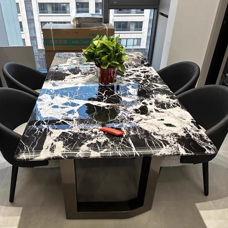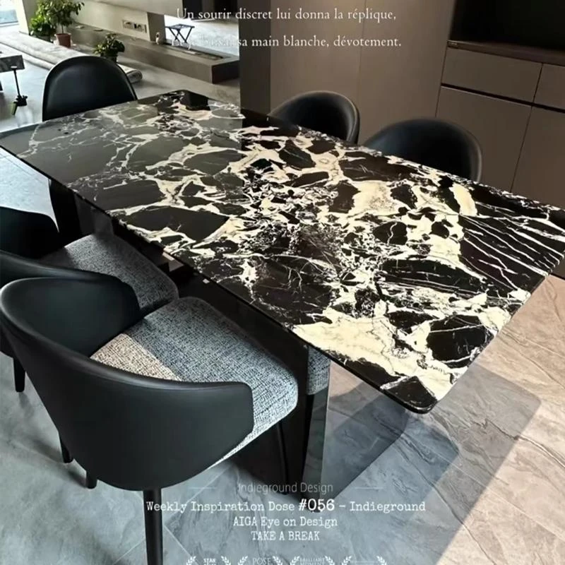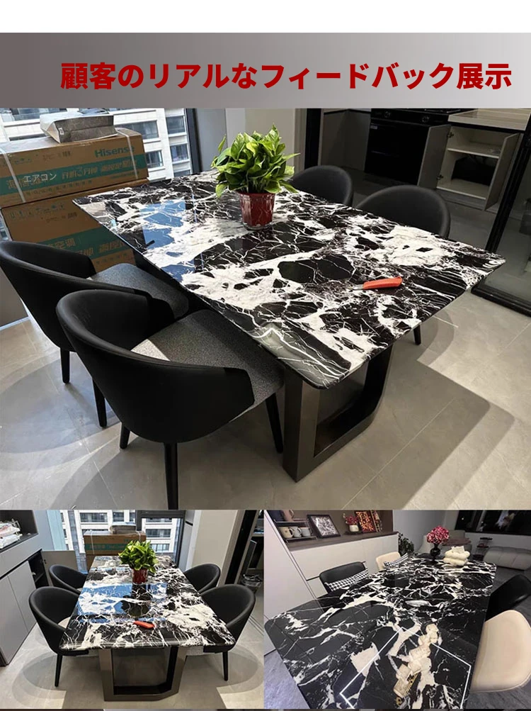 COSICA天然大理石長方形フィンディダイニングテーブル - 高級感あふれるミニマリストデザインの石製テーブルとチェアのセットで、あなたの食卓を贅沢に演出します!