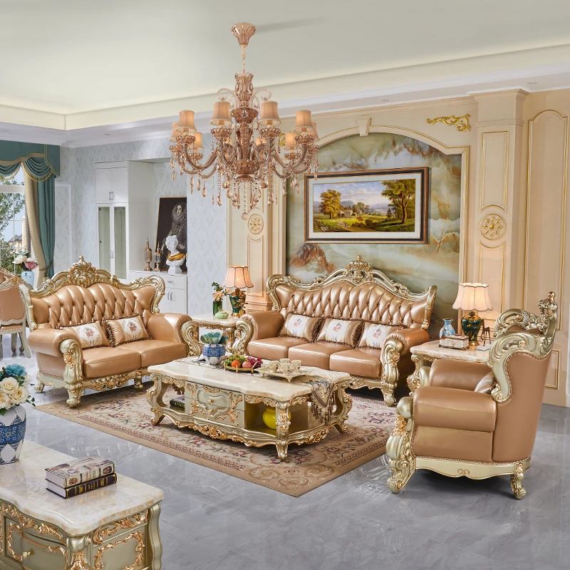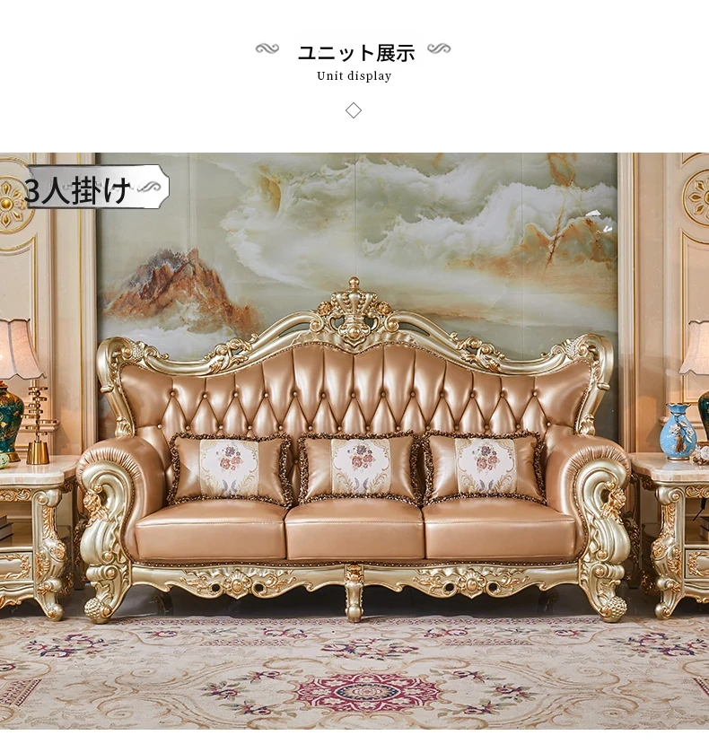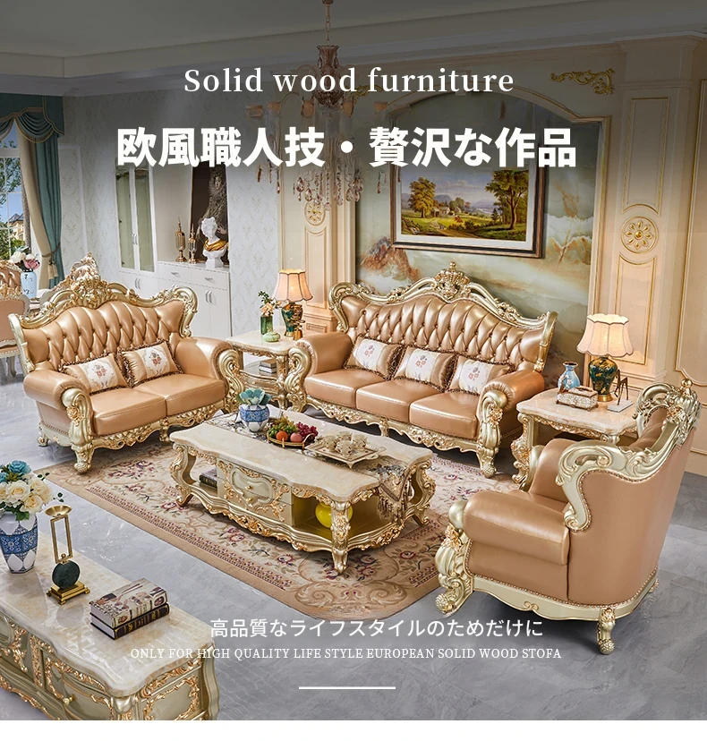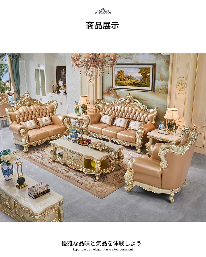 イーライデイ詩 豪華本革ヨーロピアンスタイルソファ 123コンビネーション 高級別荘向け 大型リビングルーム用 フルセット家具で贅沢なひとときをお楽しみください!