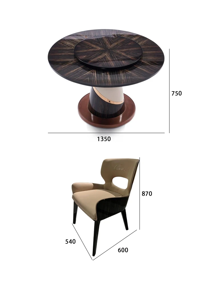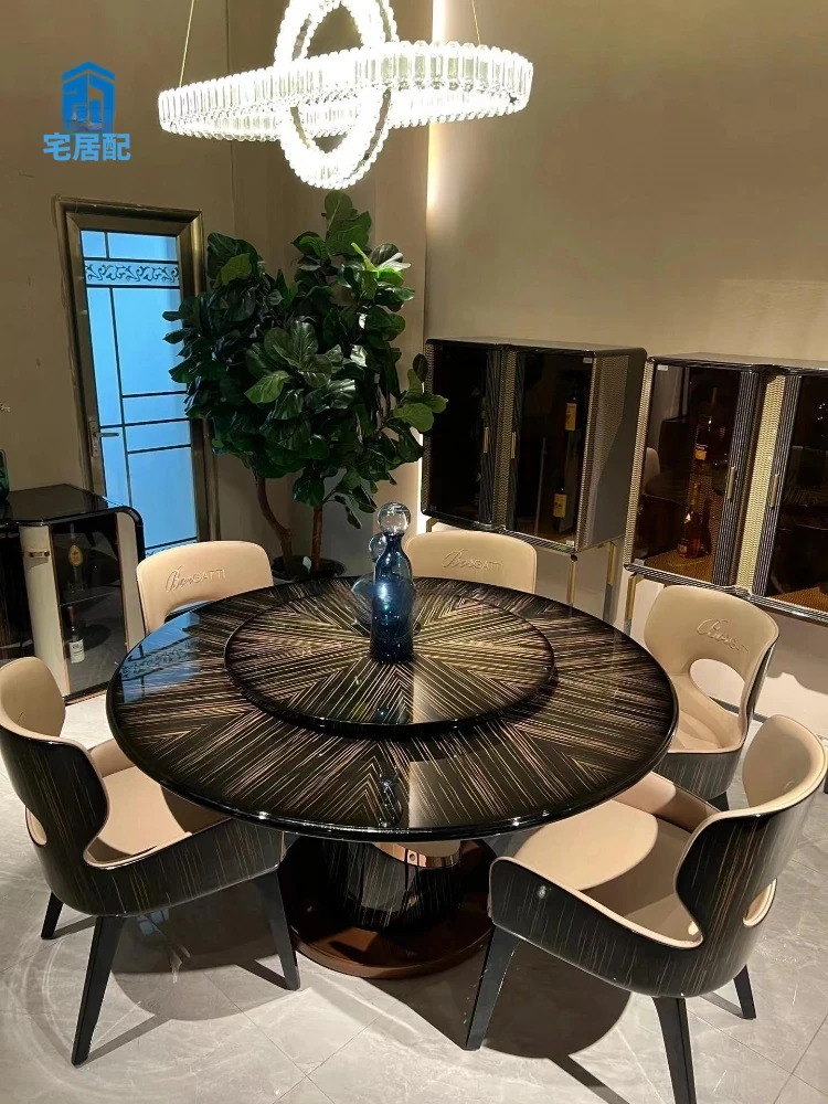 イタリアンラグジュアリー後現代的ミニマリスト大規模高級ヴィラ用ダイニングセット|ベントレー風無垢材ラウンドテーブル&チェア|洗練されたデザインで特別なひとときを演出!