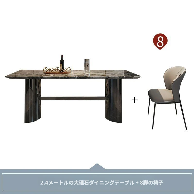 2.2メートル大理石ダイニングテーブル+8椅子