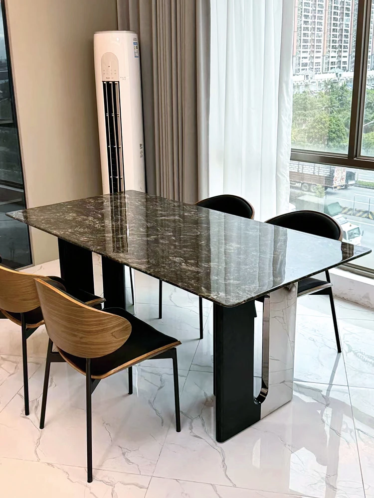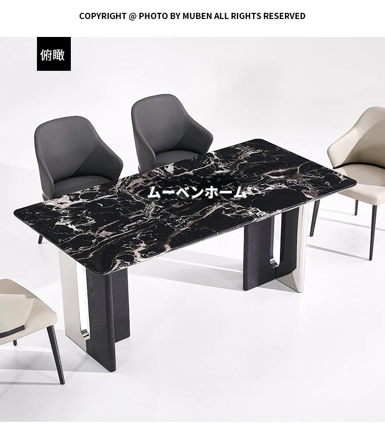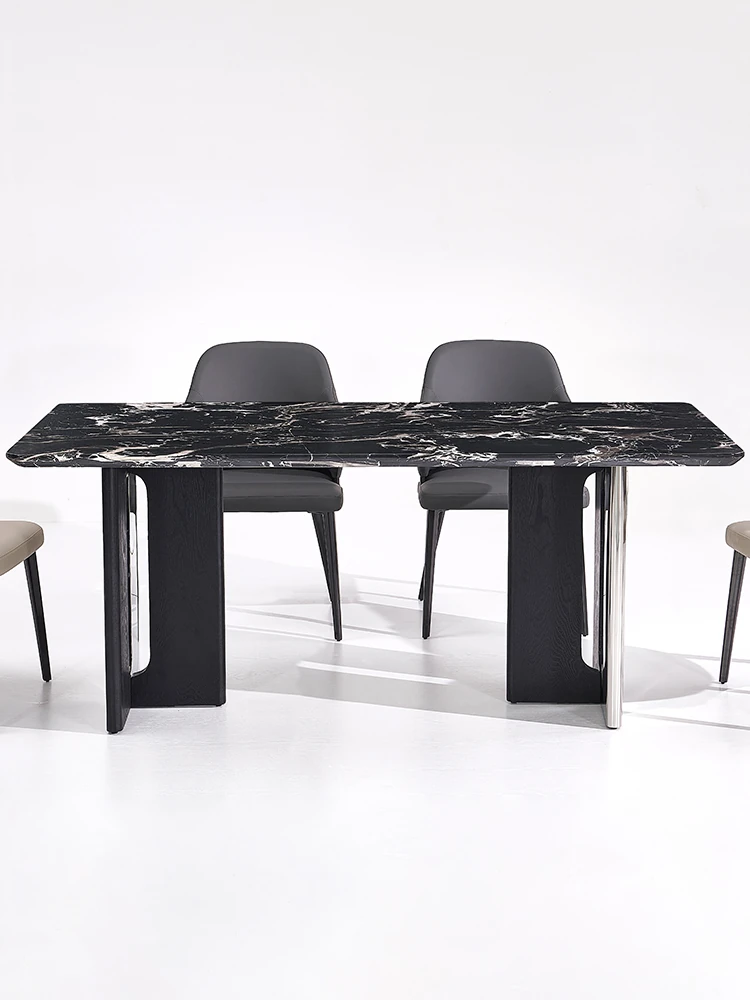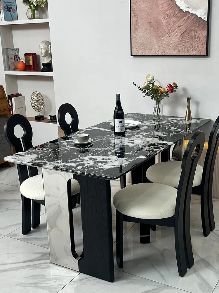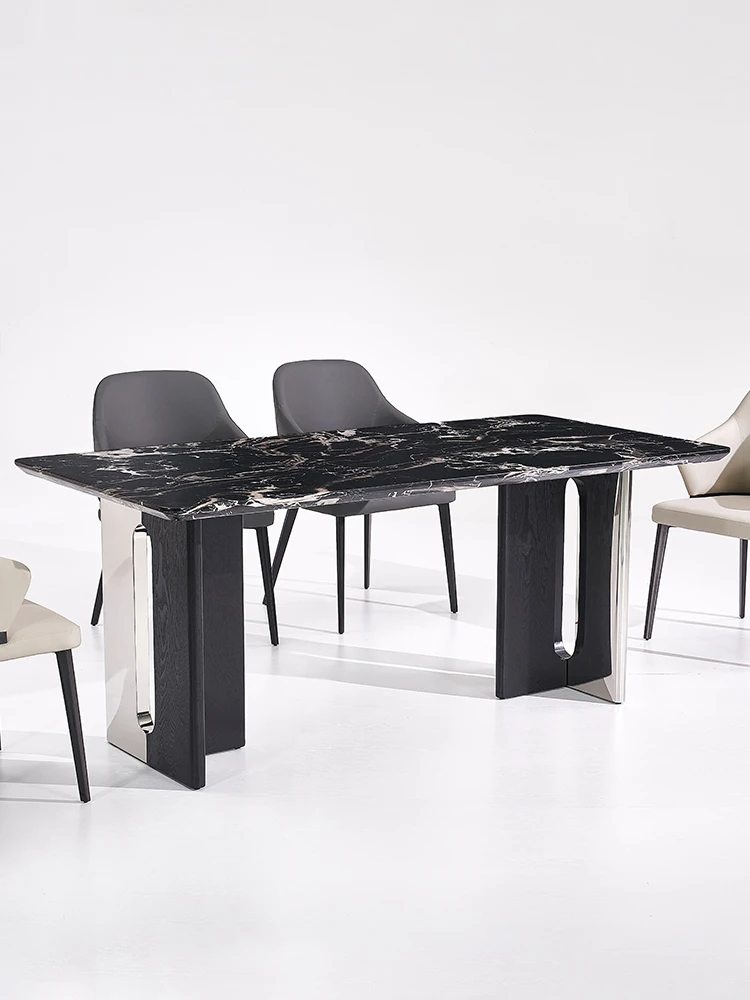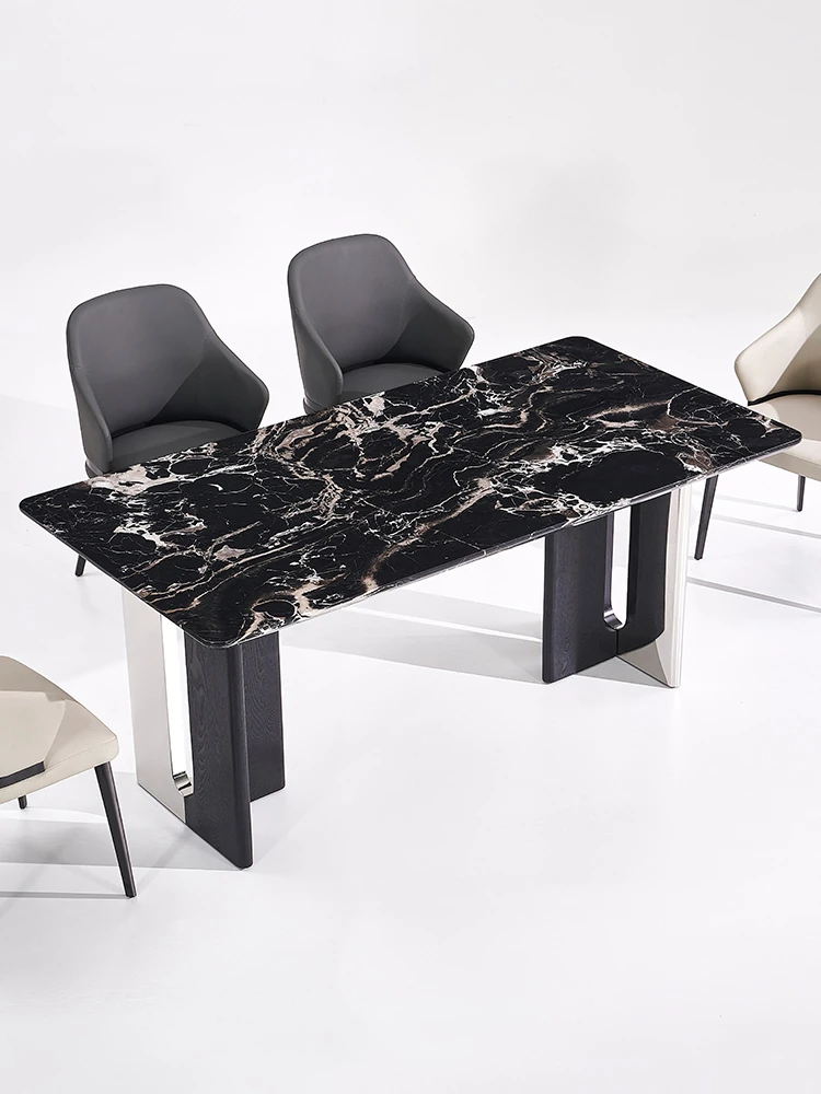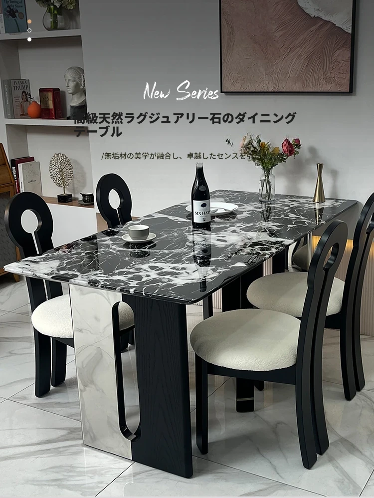 イタリアンラグジュアリー天然大理石長方形ダイニングテーブル - モダンでシンプルな黒いバラのデザイン、家での食事を特別な体験に変える上質なアイテム!