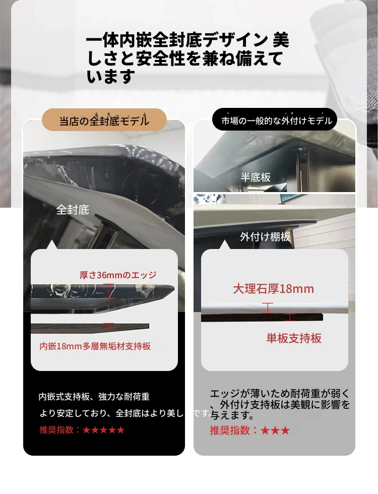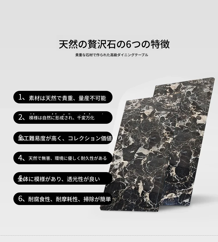 【ブラックローズ】厚みのある天然豪華石ダイニングテーブル