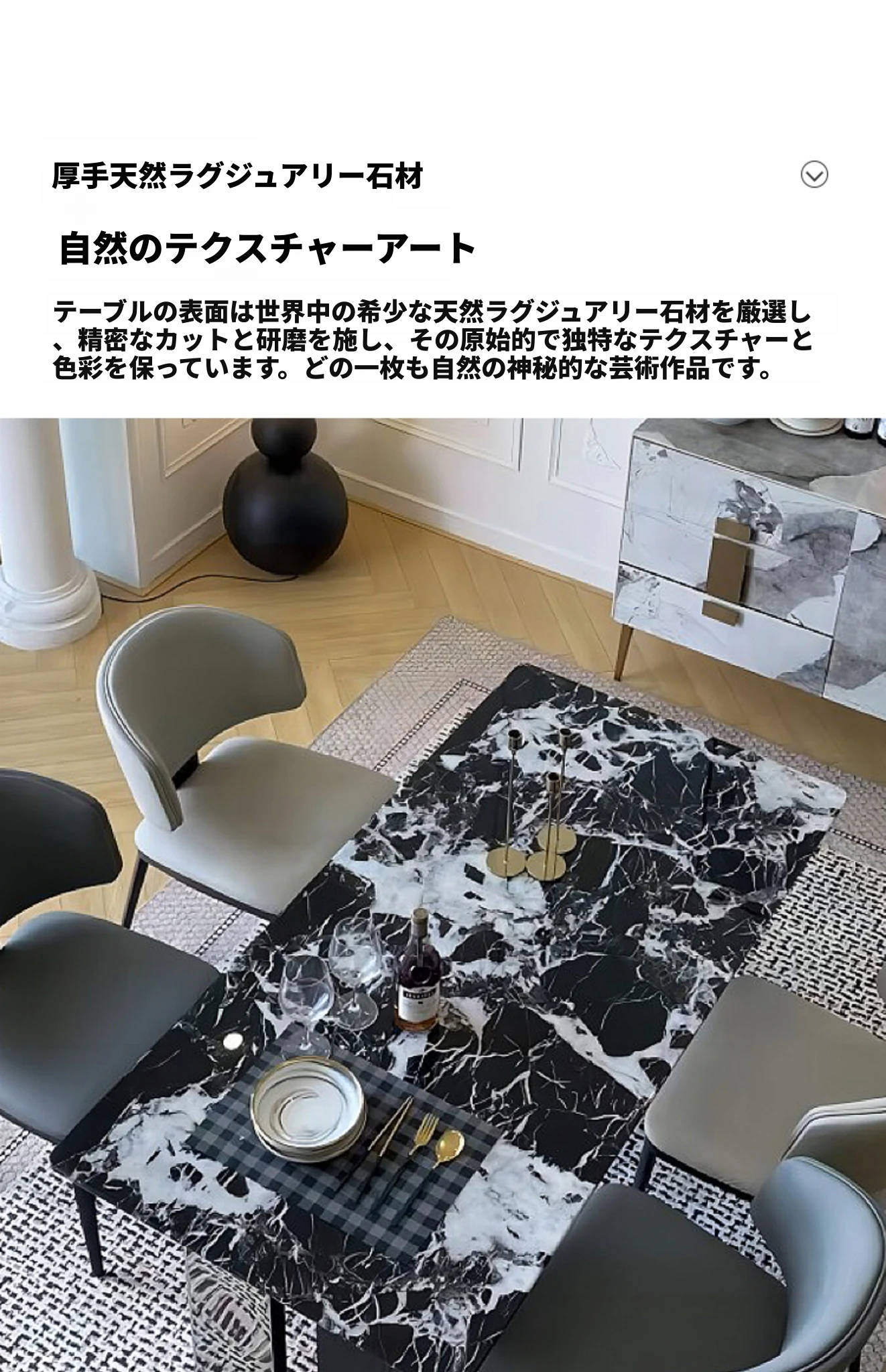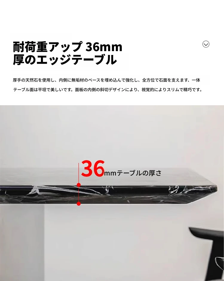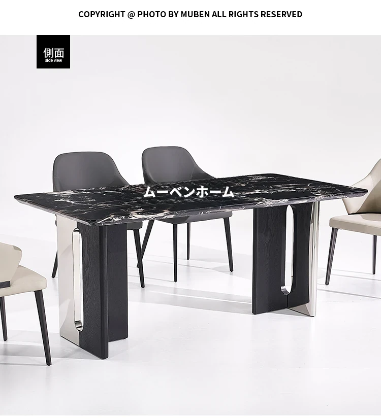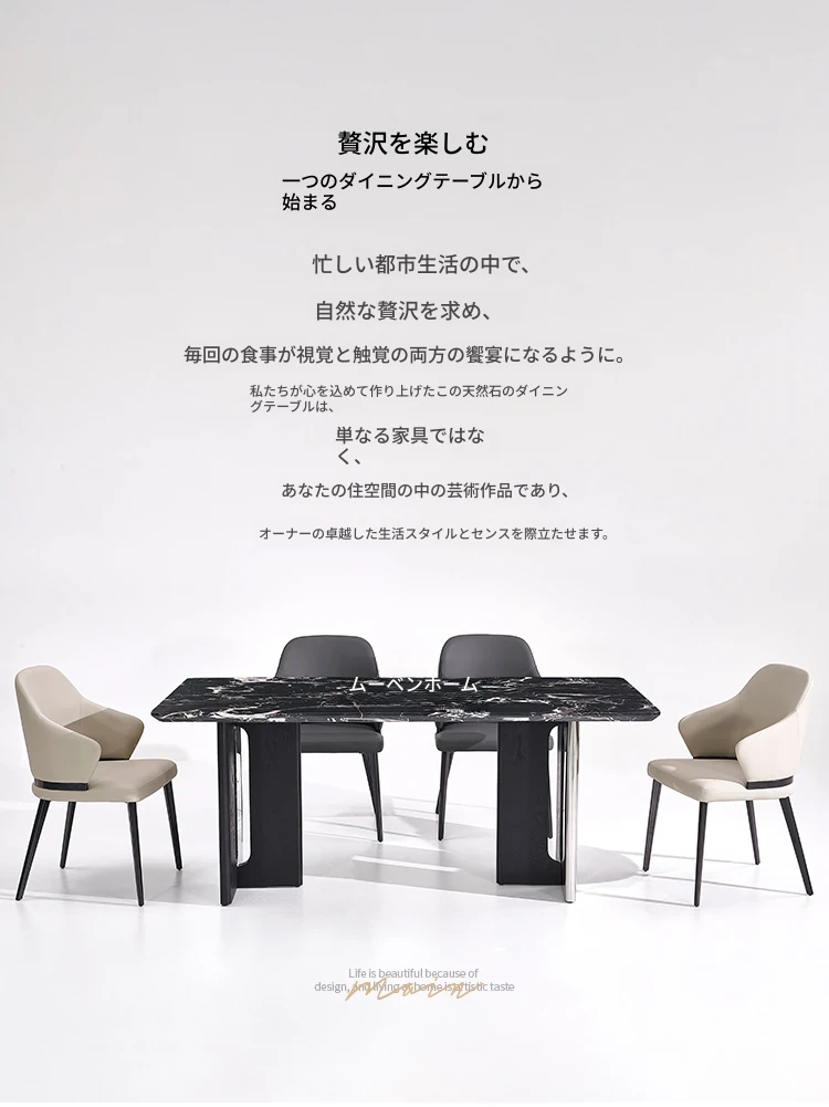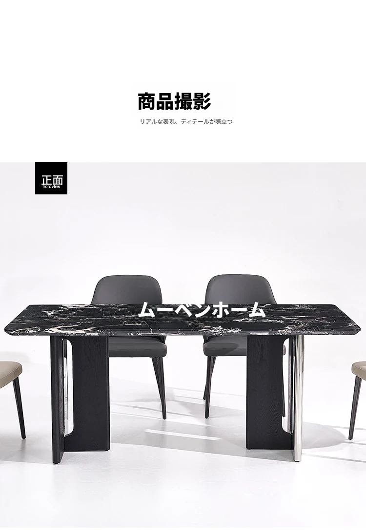 【ブルガリブラック】厚みのある天然豪華石ダイニングテーブル