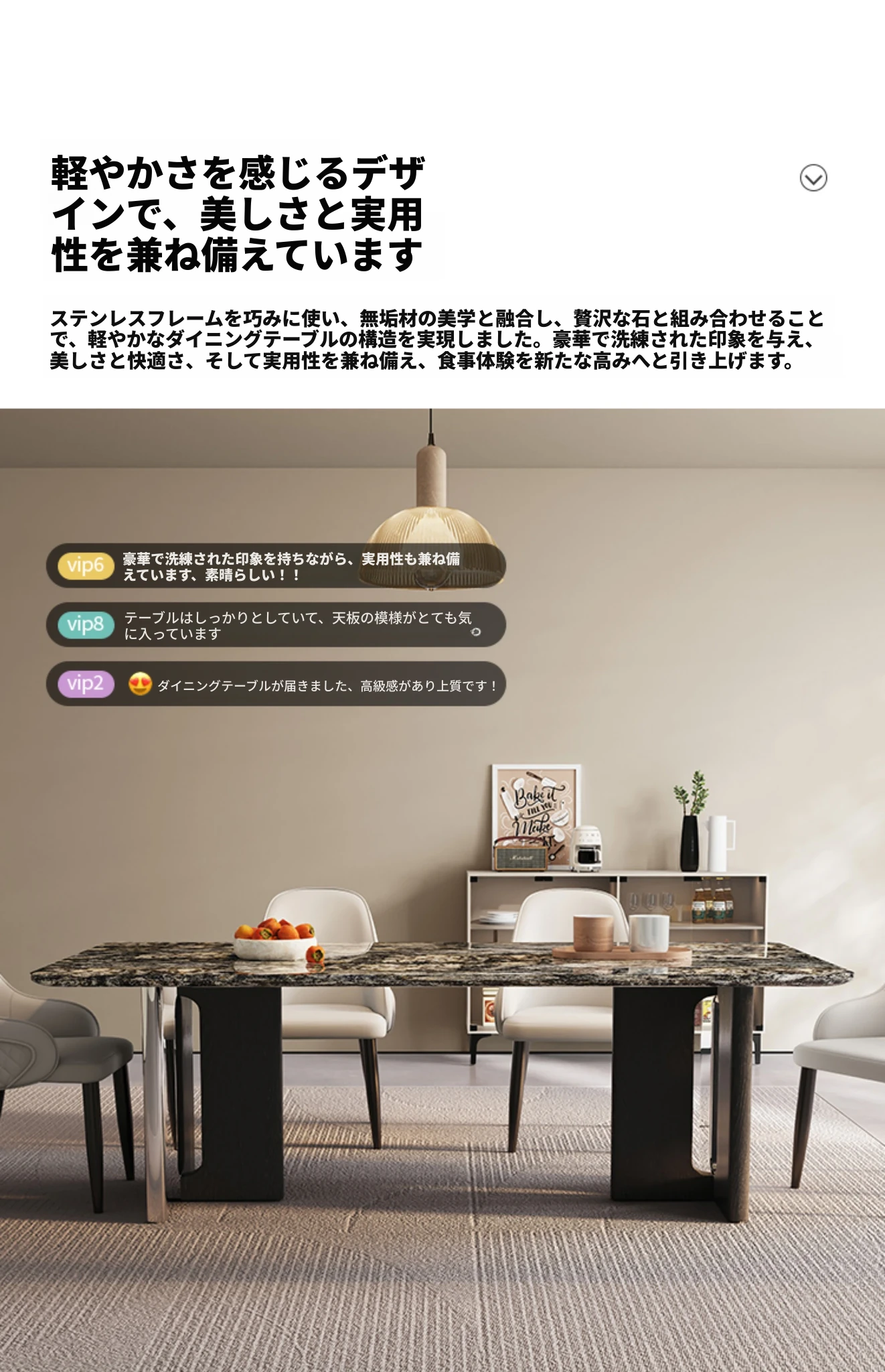 【プラチナダイヤ】厚みのある天然豪華石ダイニングテーブル