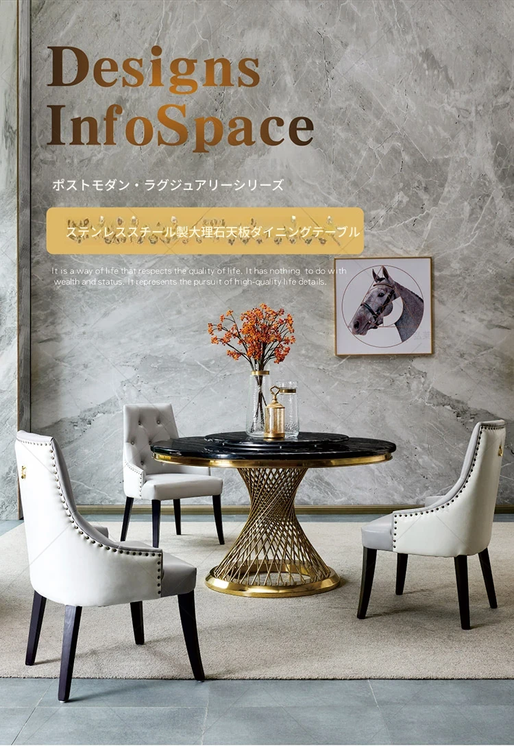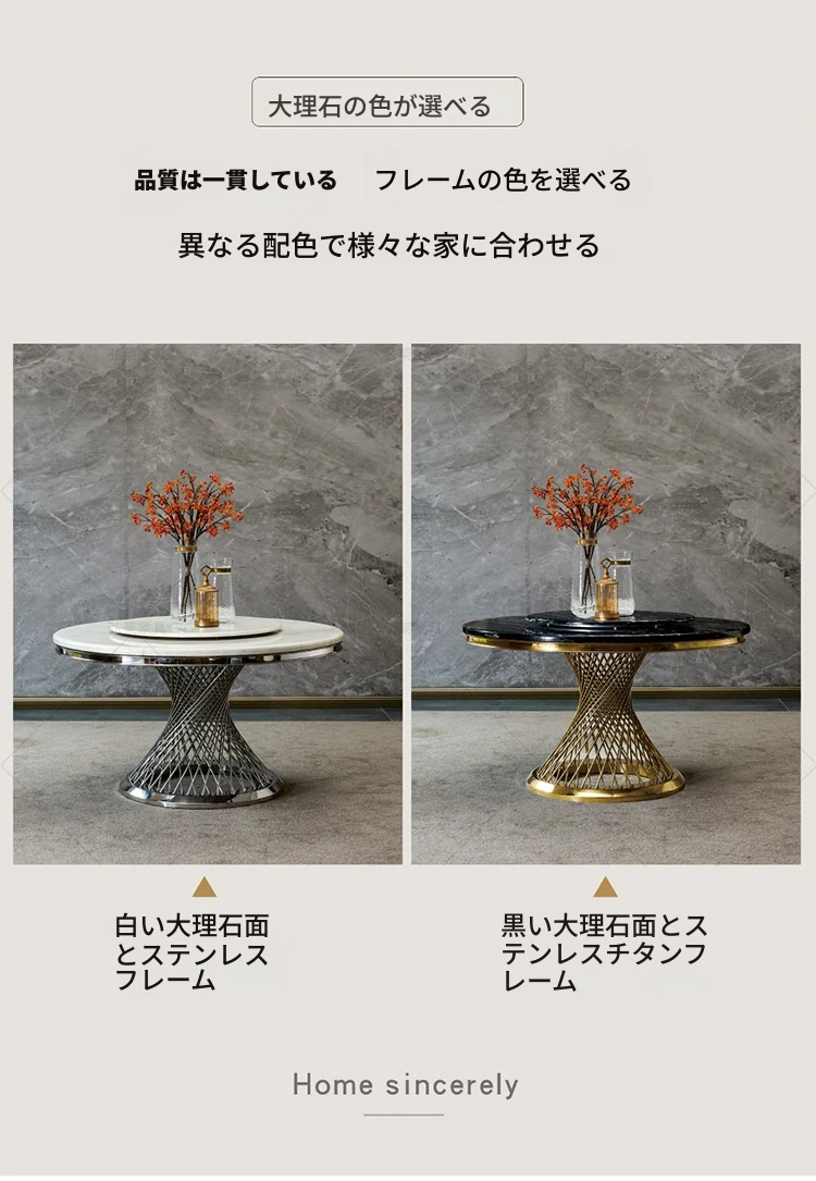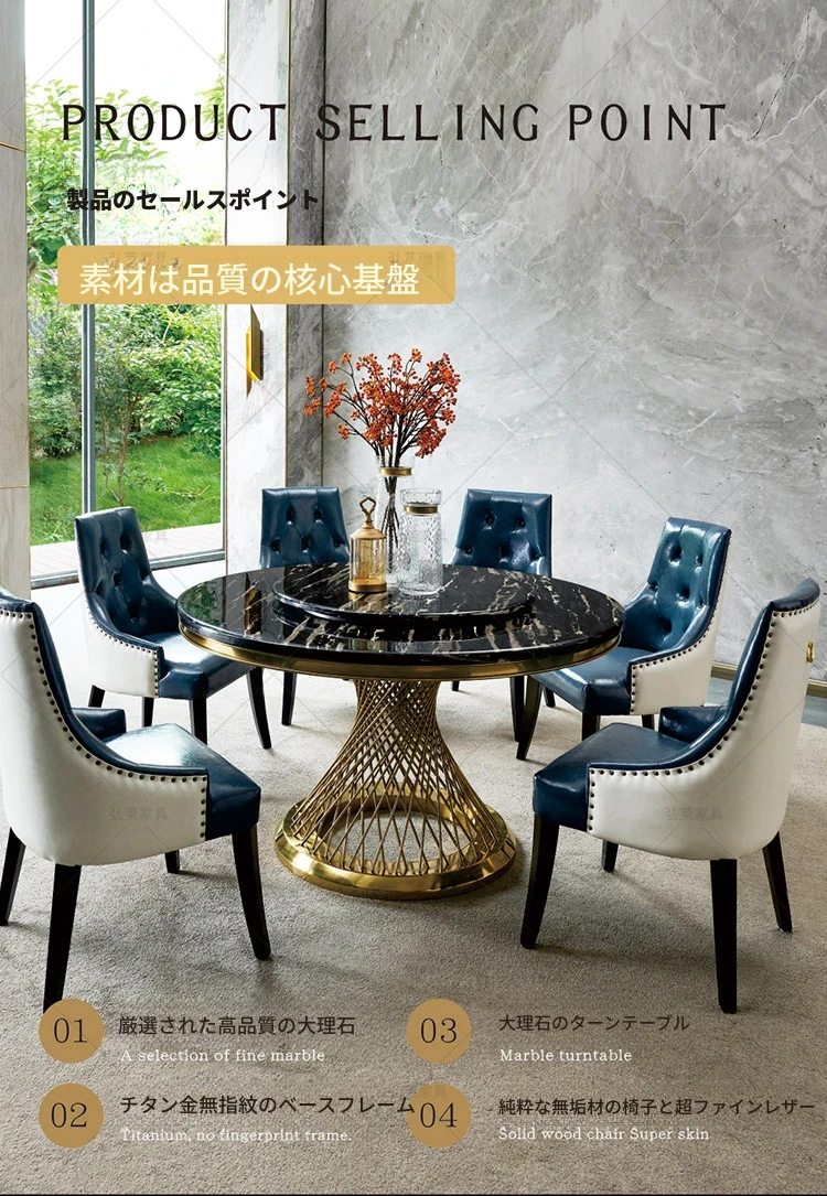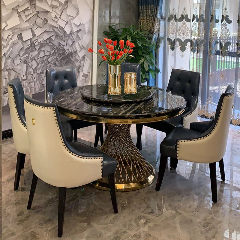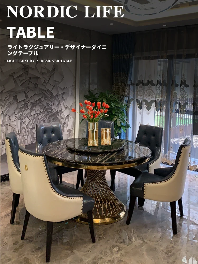 新作!高級感溢れる大理石円形ダイニングテーブル - 回転盤付き、モダンでシンプルな欧風デザイン。家庭での食事を特別なひとときに!