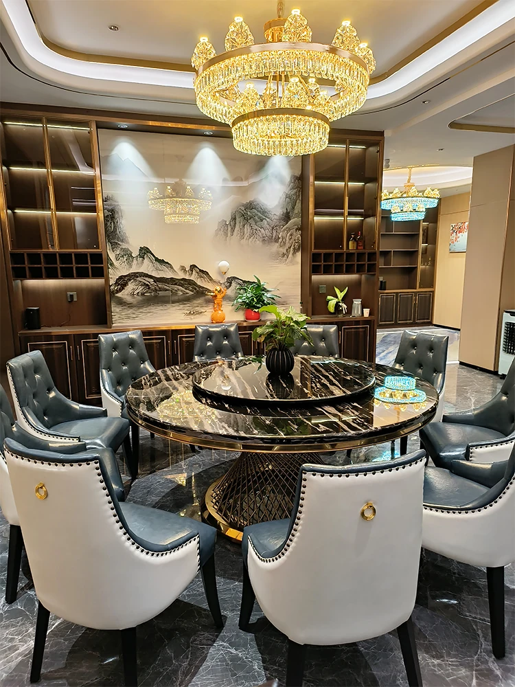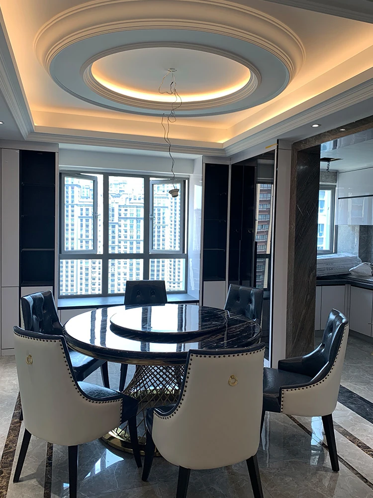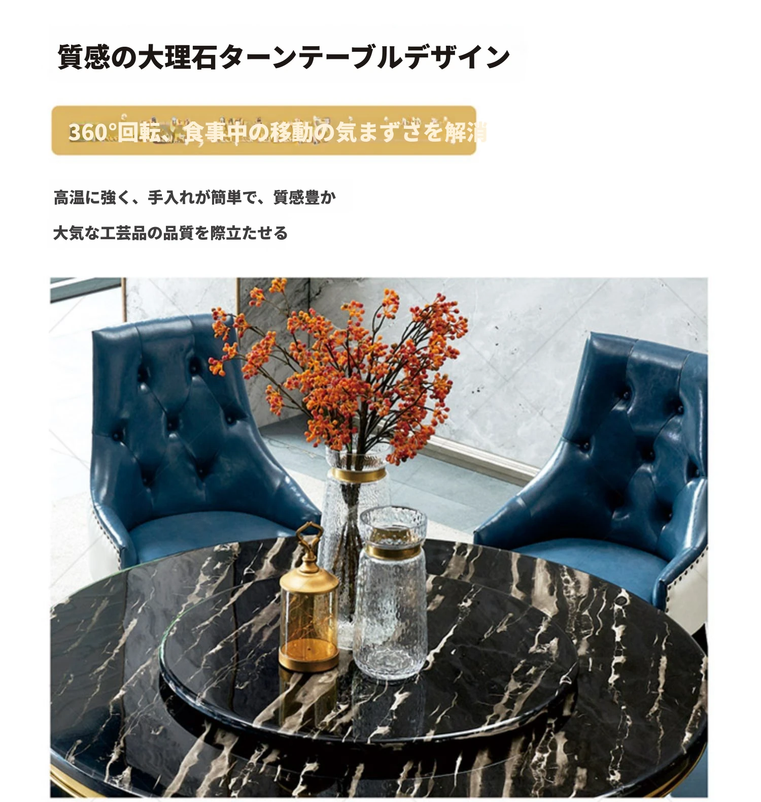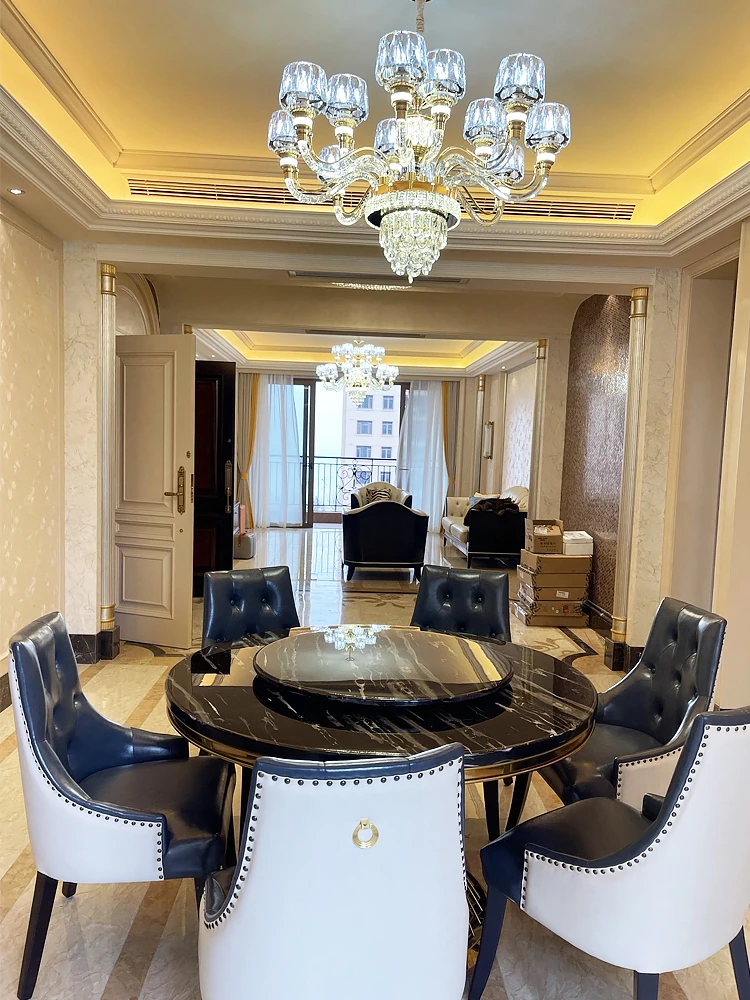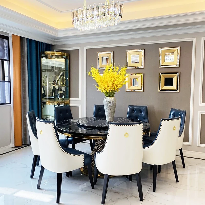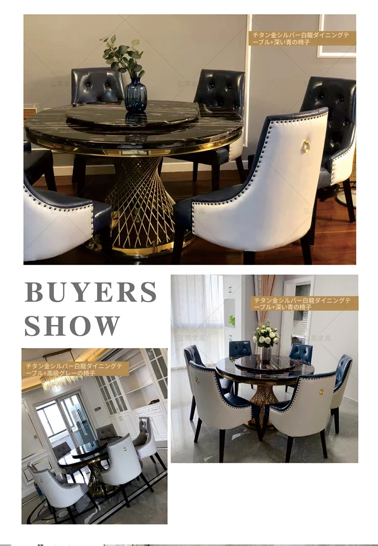 新作!高級感溢れる大理石円形ダイニングテーブル - 回転盤付き、モダンでシンプルな欧風デザイン。家庭での食事を特別なひとときに!