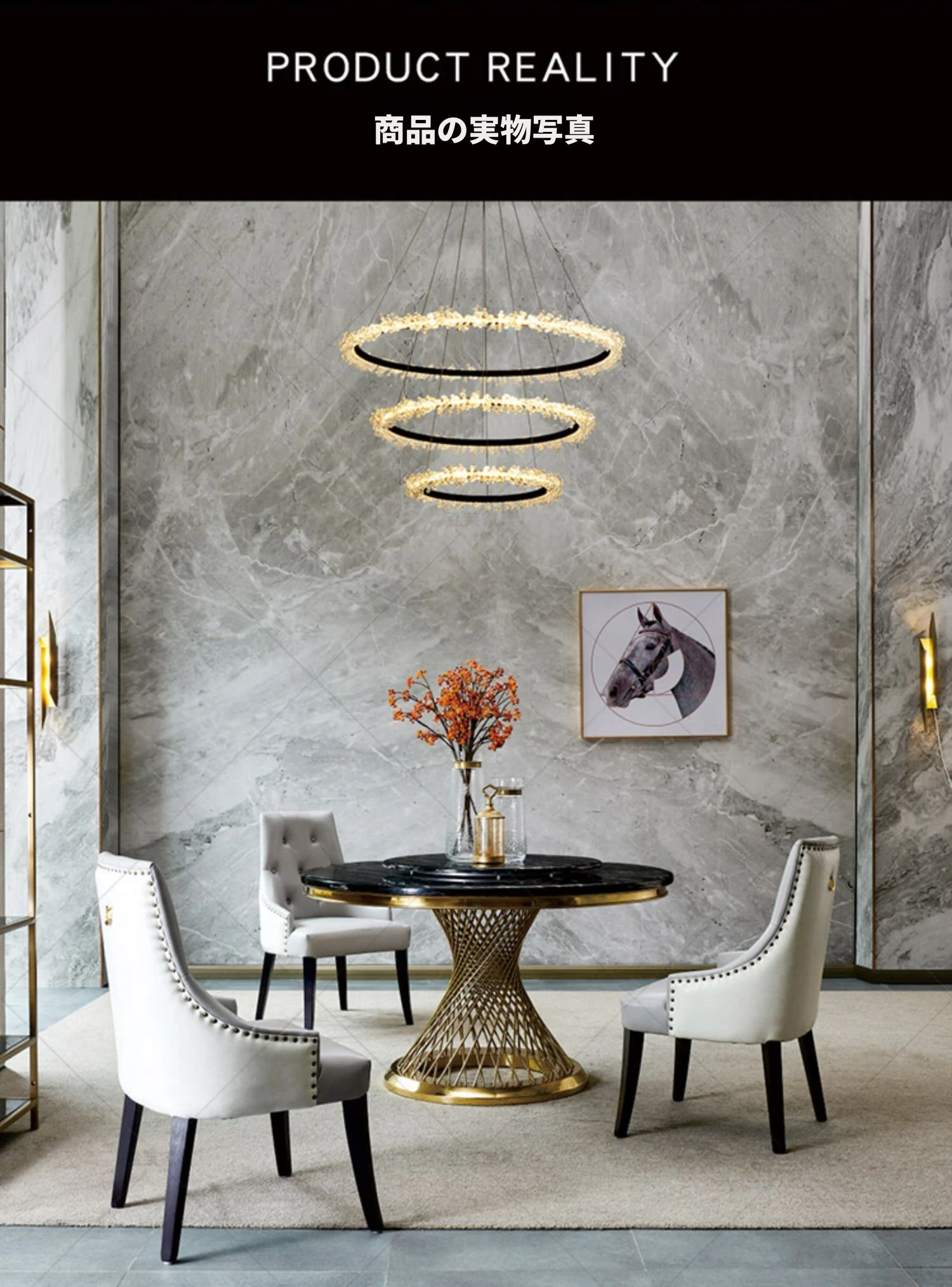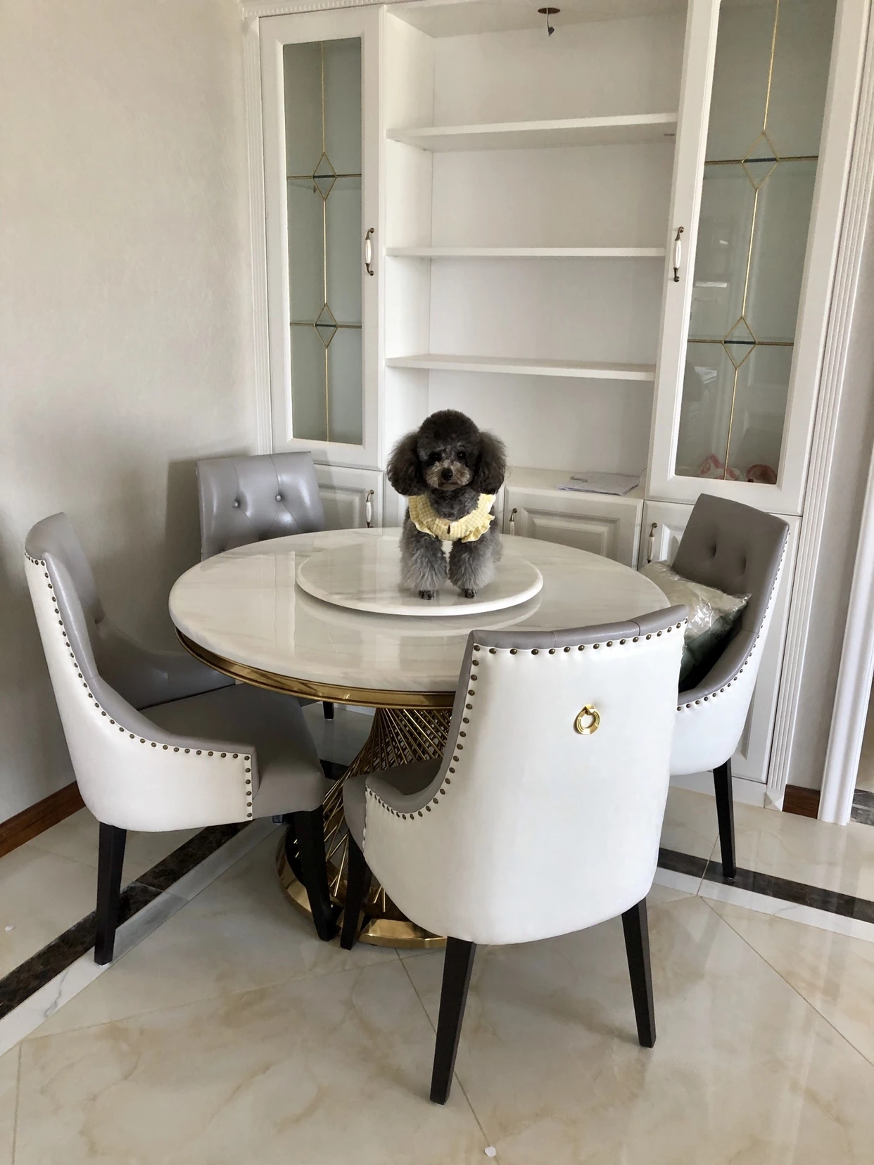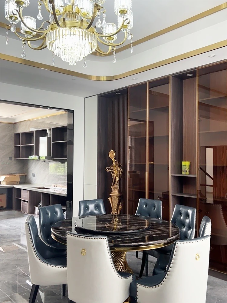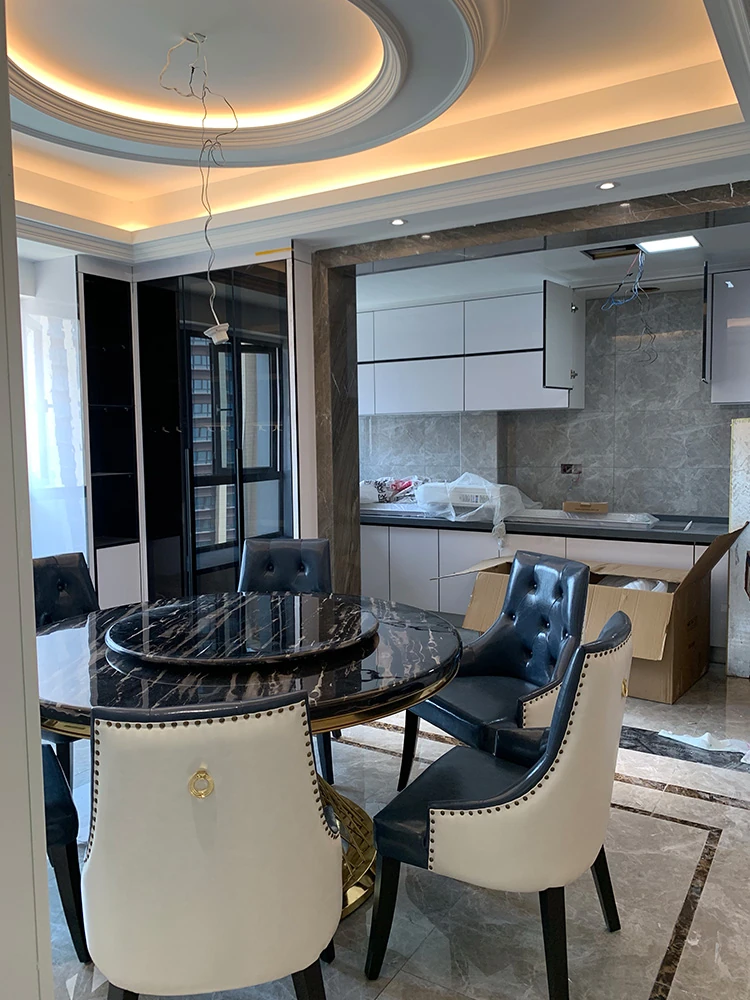 新作!高級感溢れる大理石円形ダイニングテーブル - 回転盤付き、モダンでシンプルな欧風デザイン。家庭での食事を特別なひとときに!