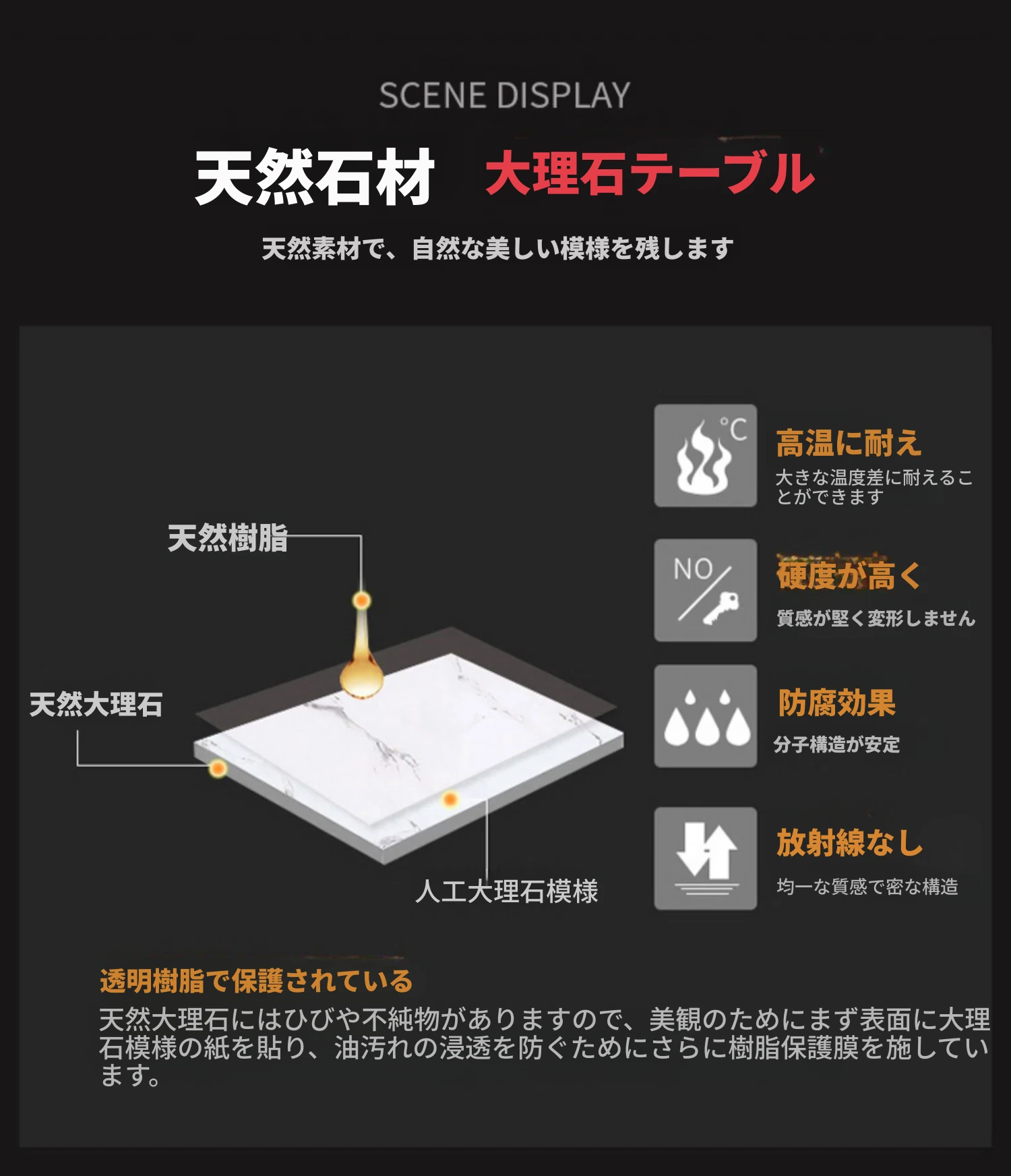 1.5メートルのダイニングテーブル(岩板)