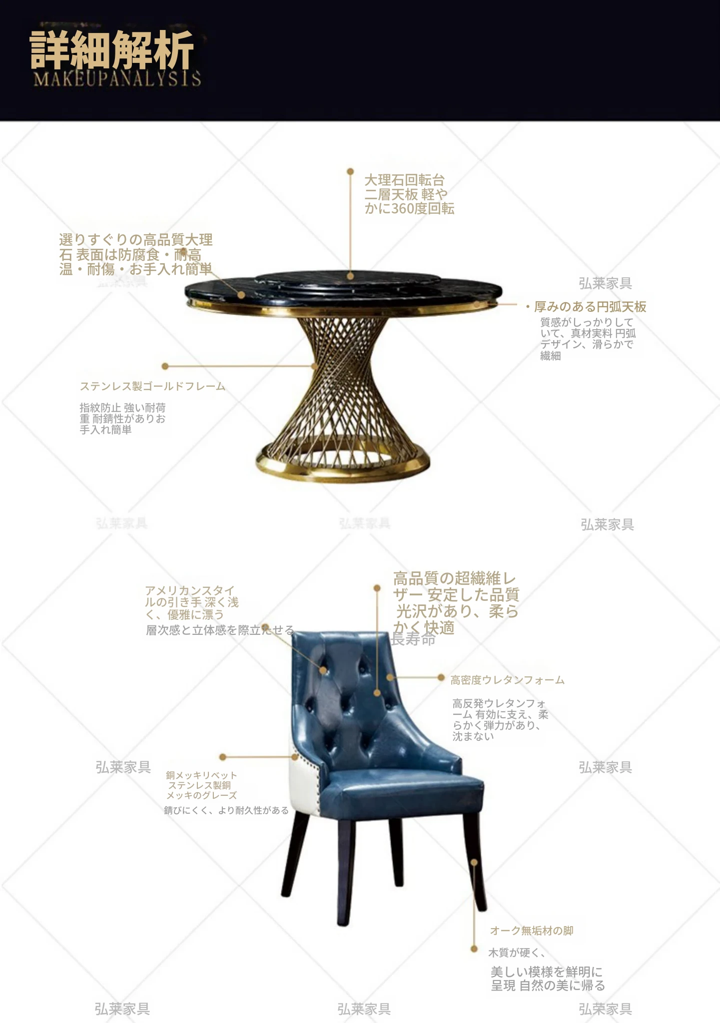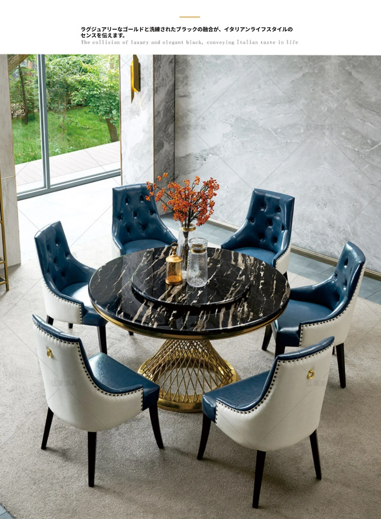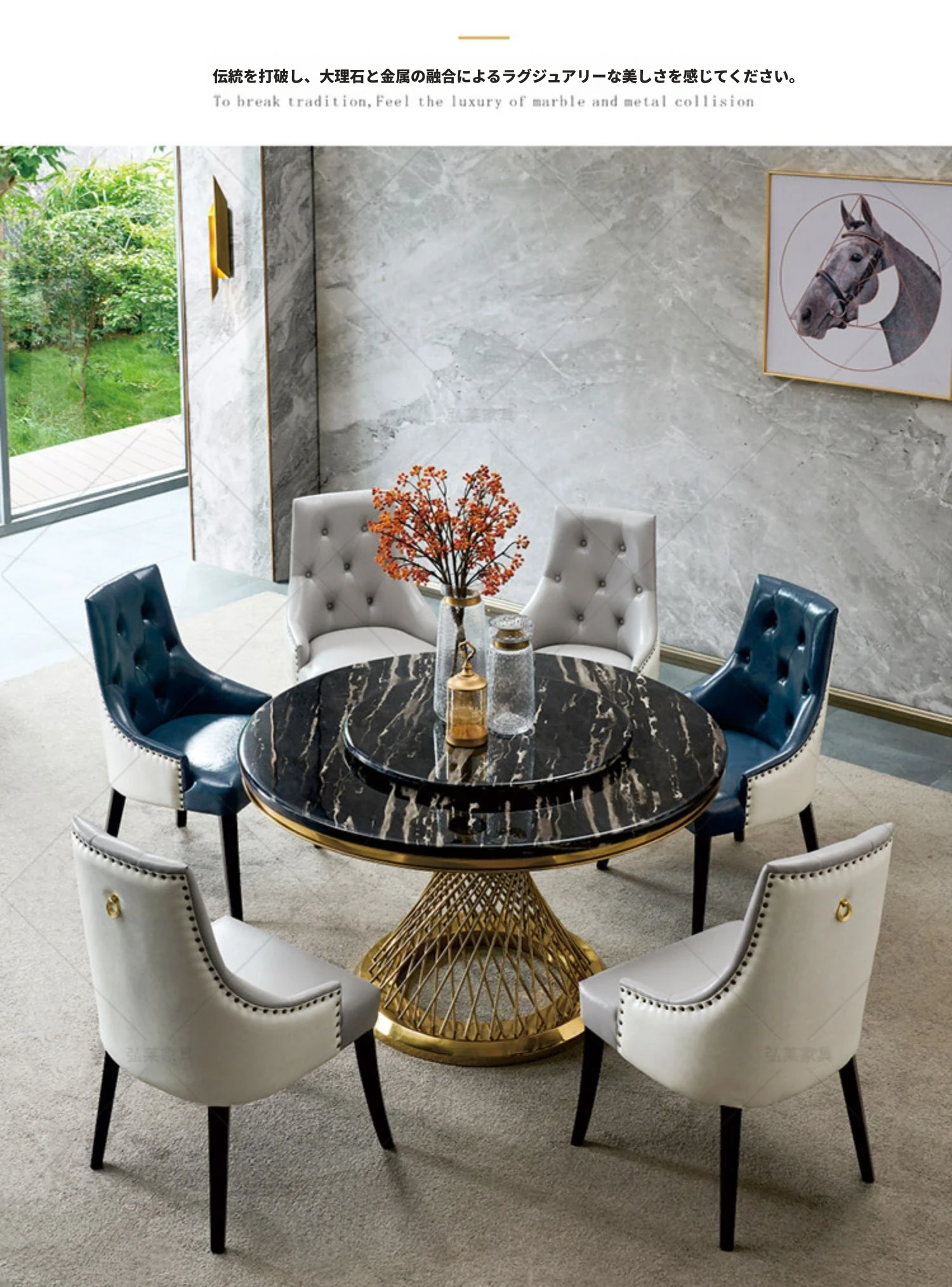 1.8メートルのダイニングテーブル+Aチェア*10(大理石)