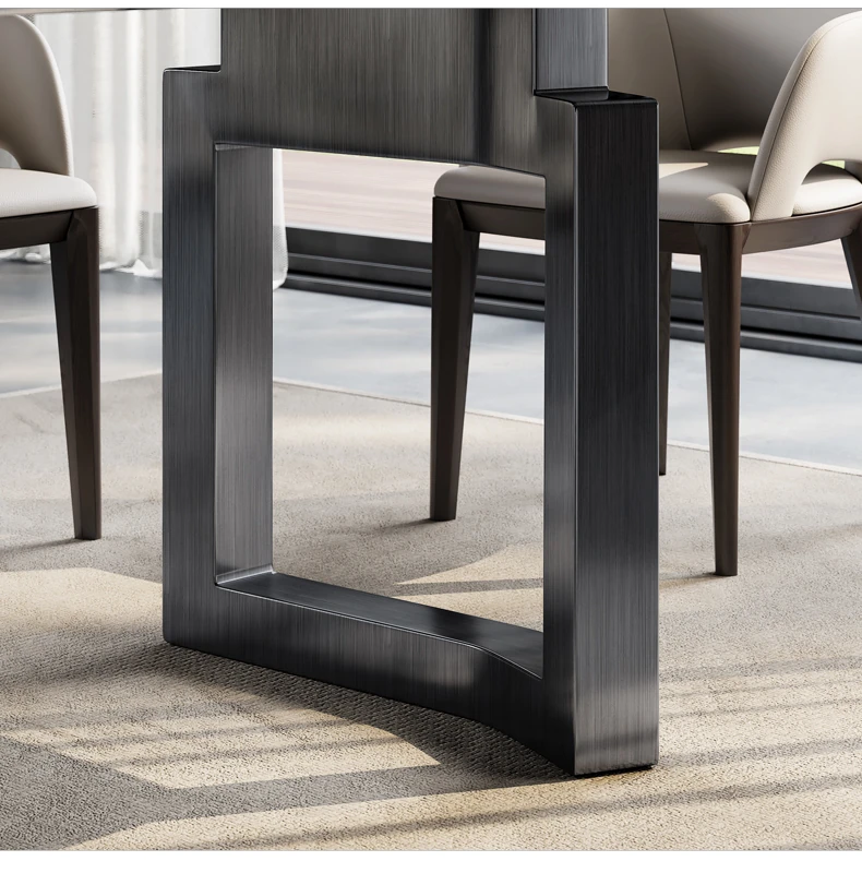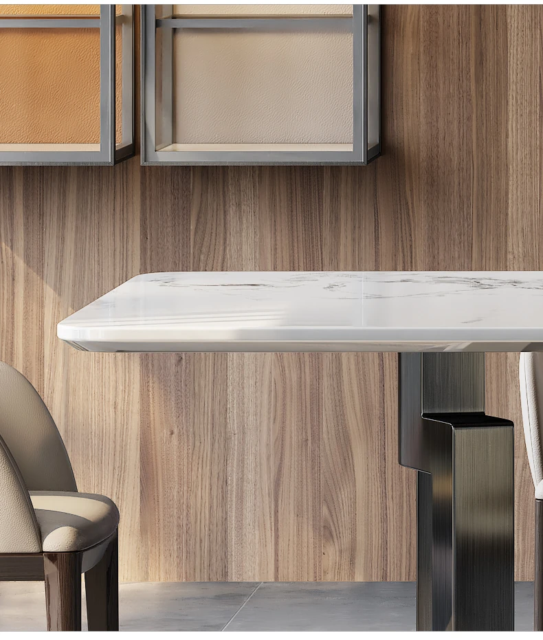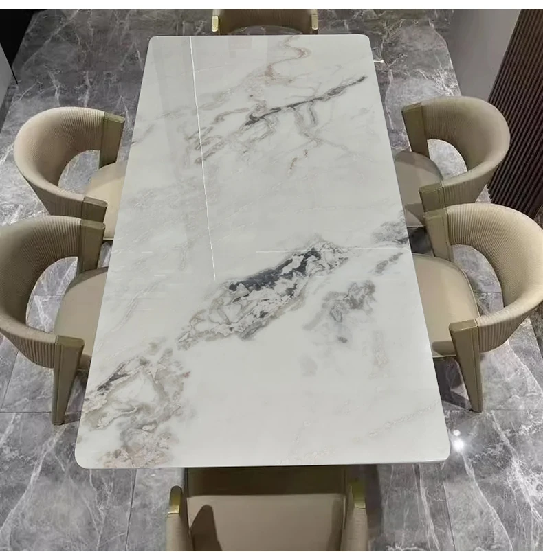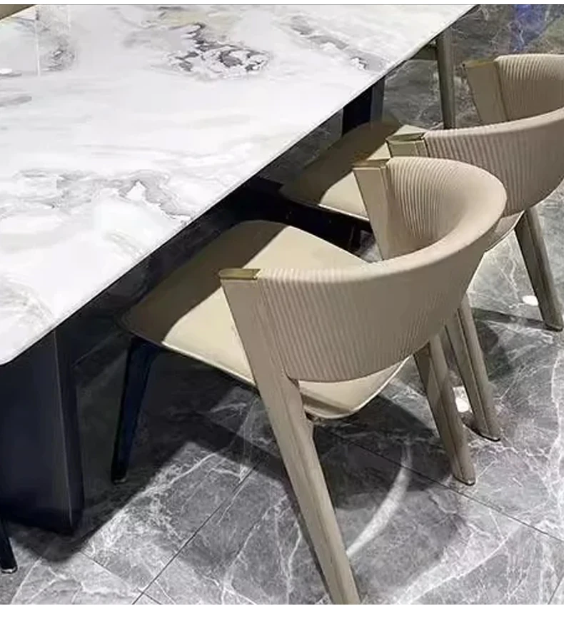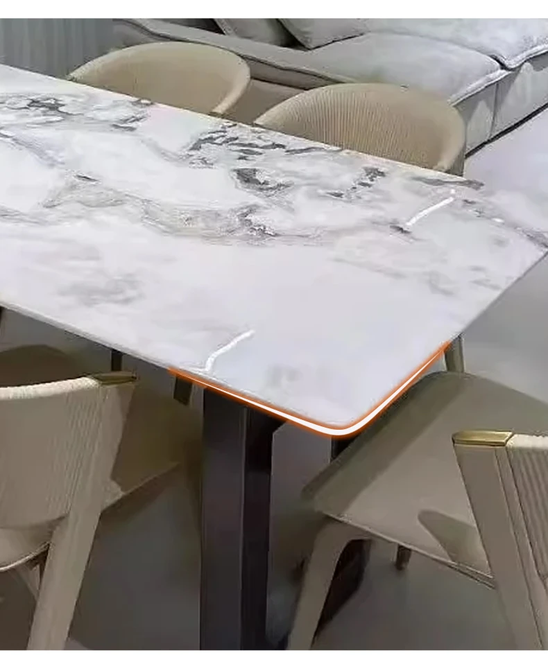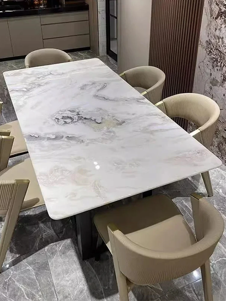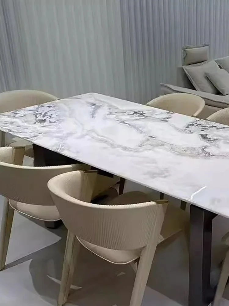 天然フィンディホワイトラグジュアリー石製ダイニングテーブル - モダンでシンプルな高級感、別荘にぴったりの長方形大理石テーブル&チェアセット!上質な食事空間を演出します。