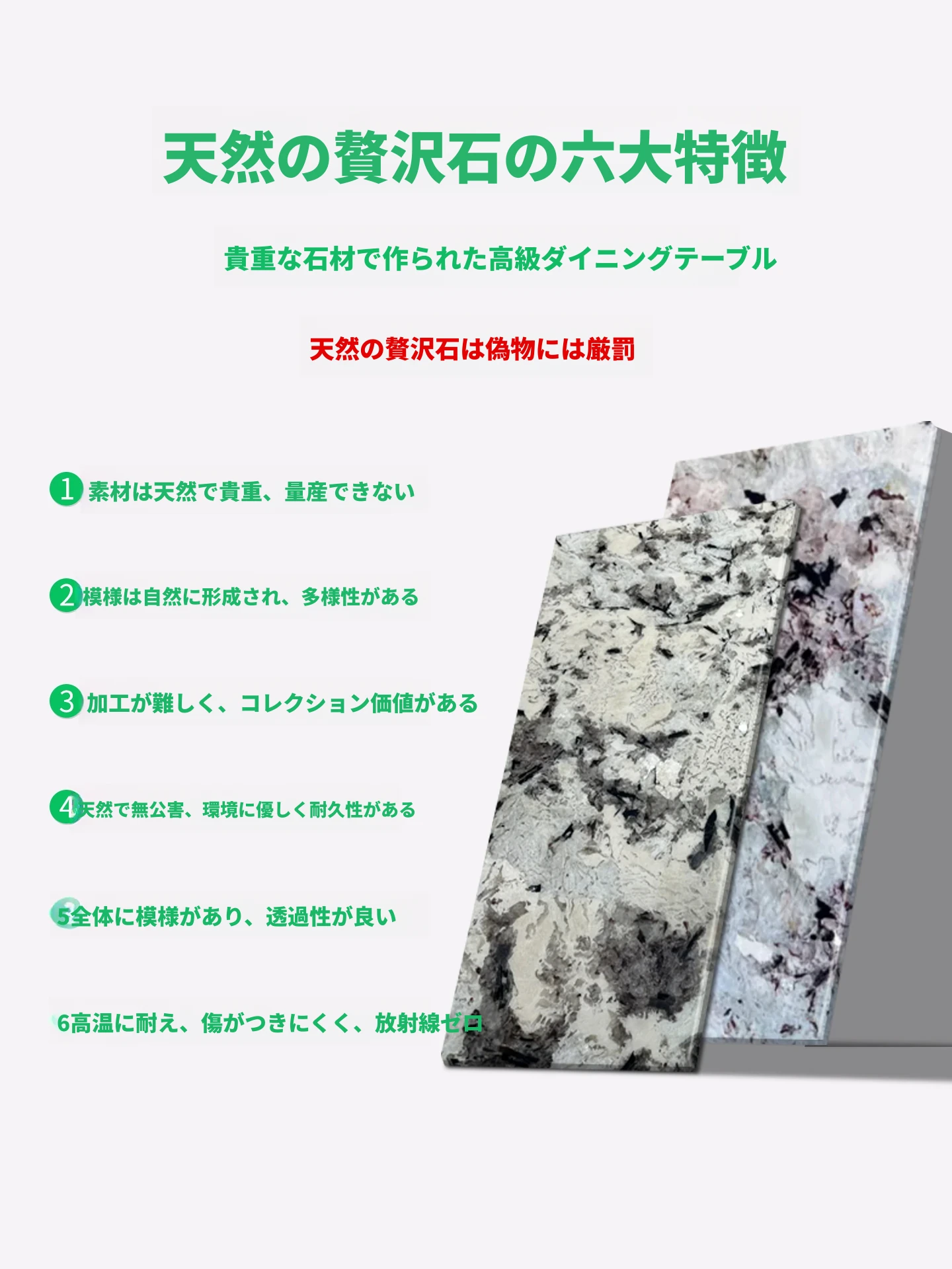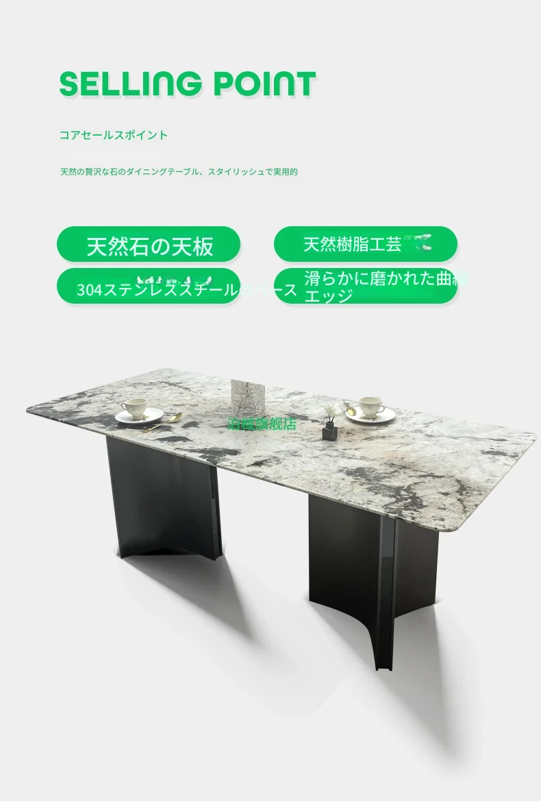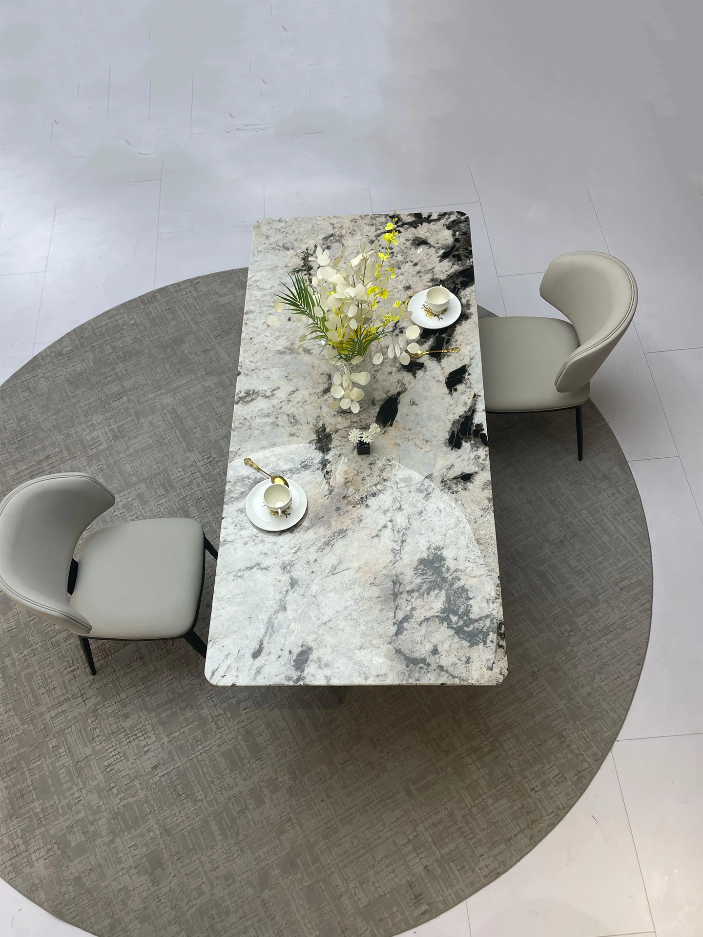 天然雪山のフライングフォックス大理石ダイニングテーブルセット|イタリアンスタイルで高級感漂う家庭用長方形テーブル✨美しいデザインと優れた耐久性で、特別なひとときを演出します!