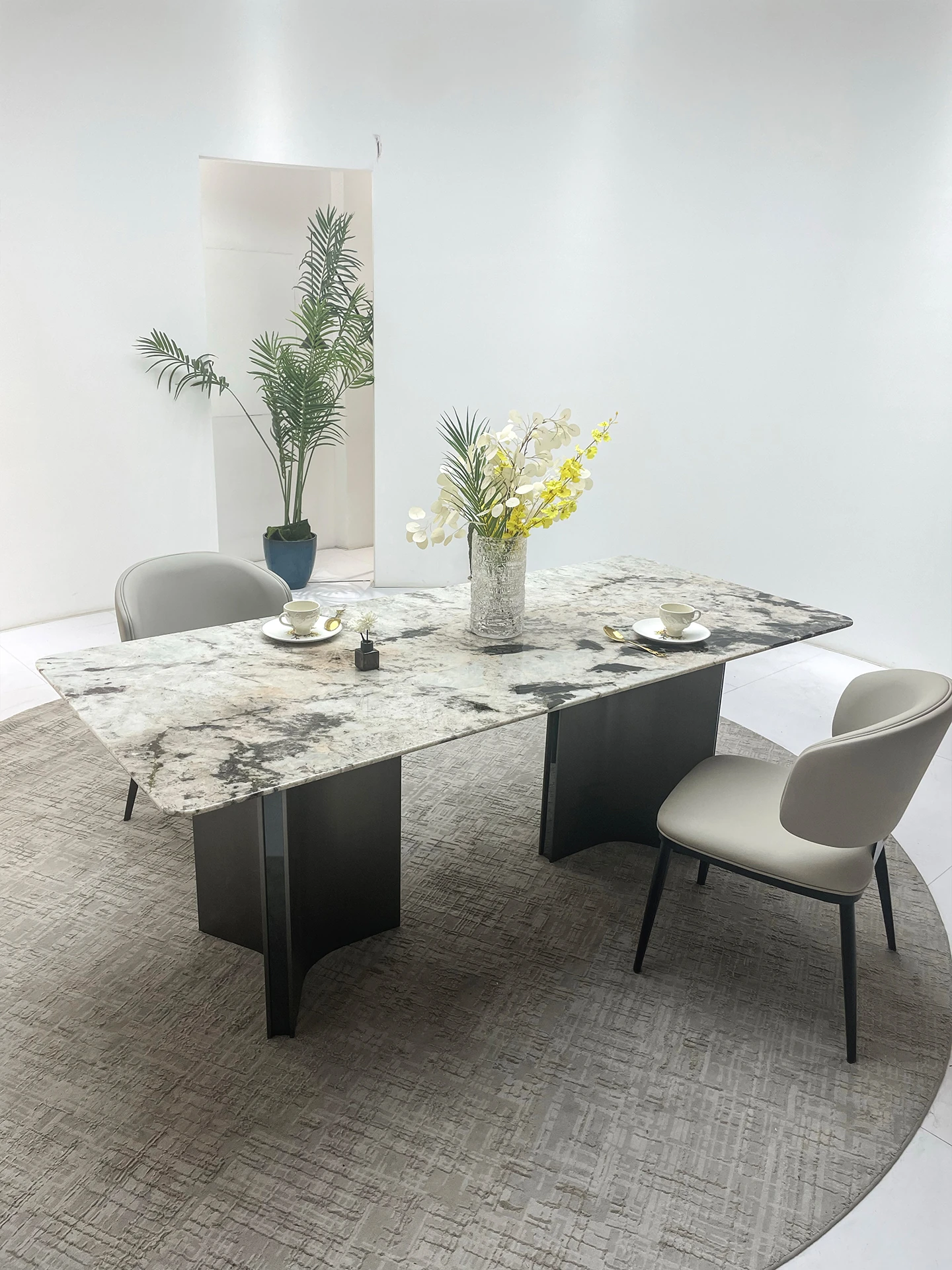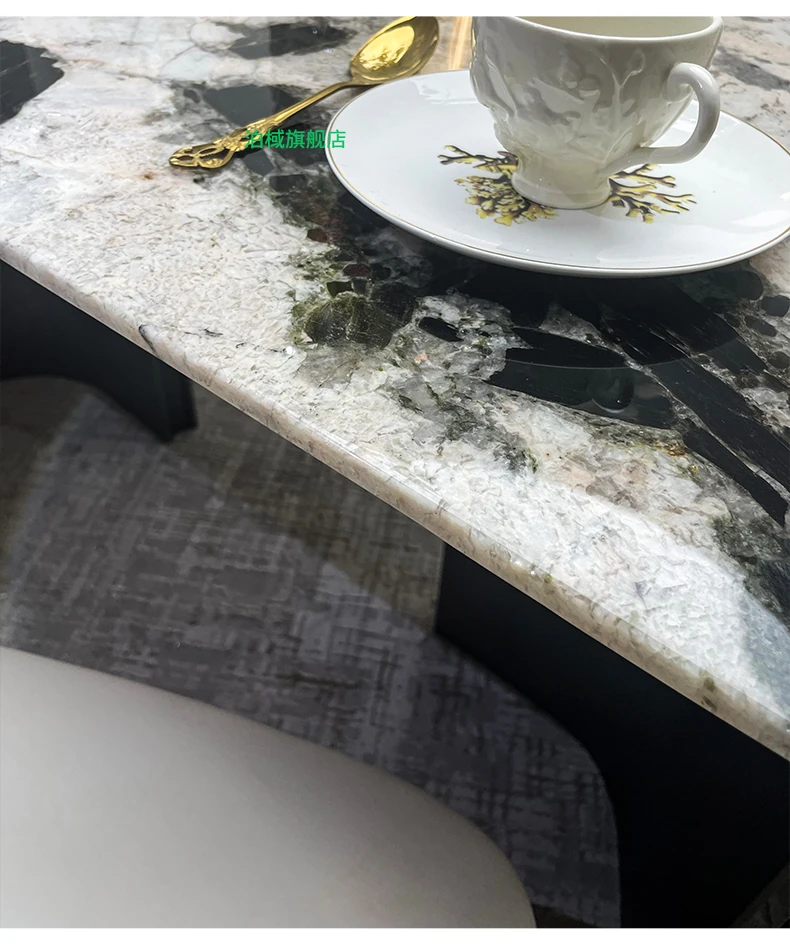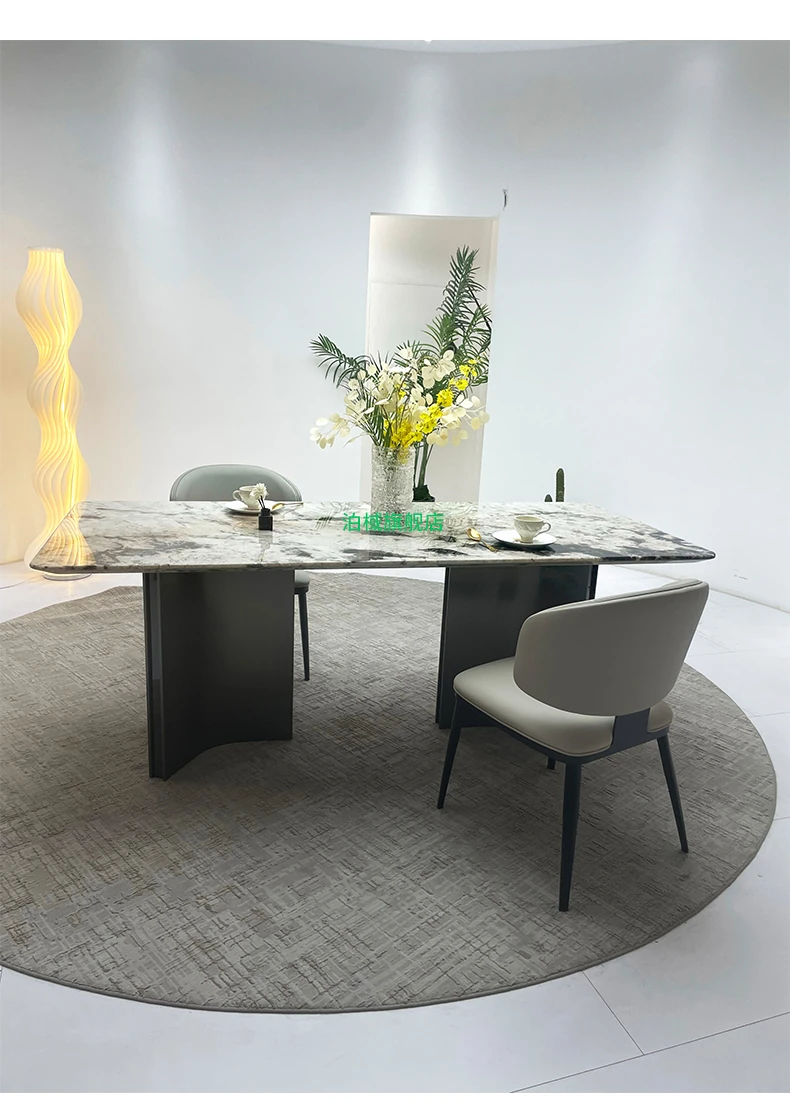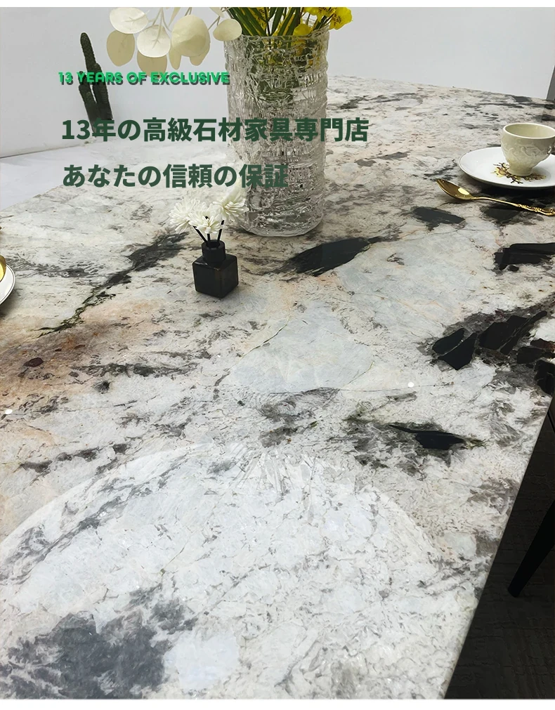 天然雪山のフライングフォックス大理石ダイニングテーブルセット|イタリアンスタイルで高級感漂う家庭用長方形テーブル✨美しいデザインと優れた耐久性で、特別なひとときを演出します!
