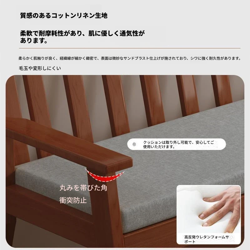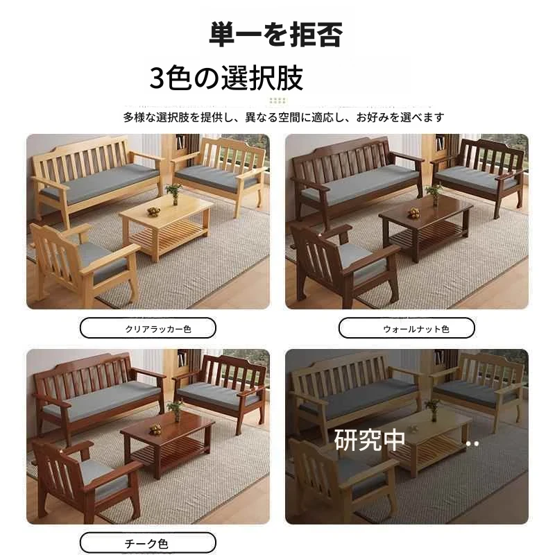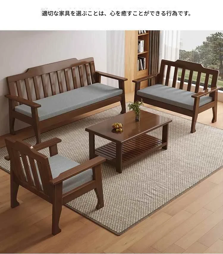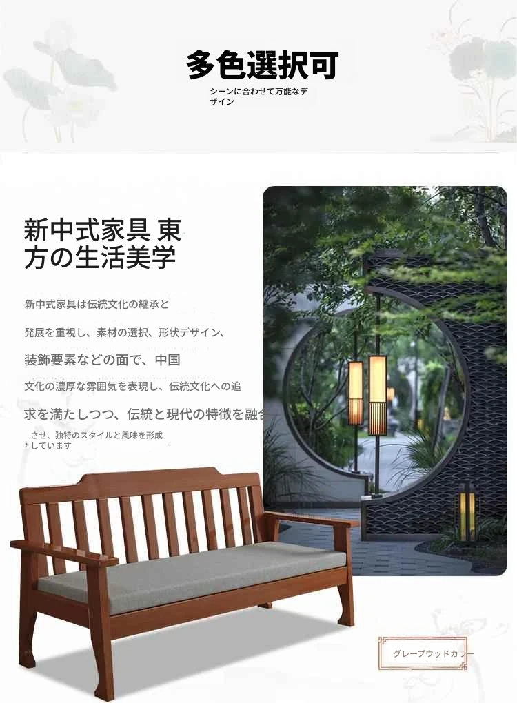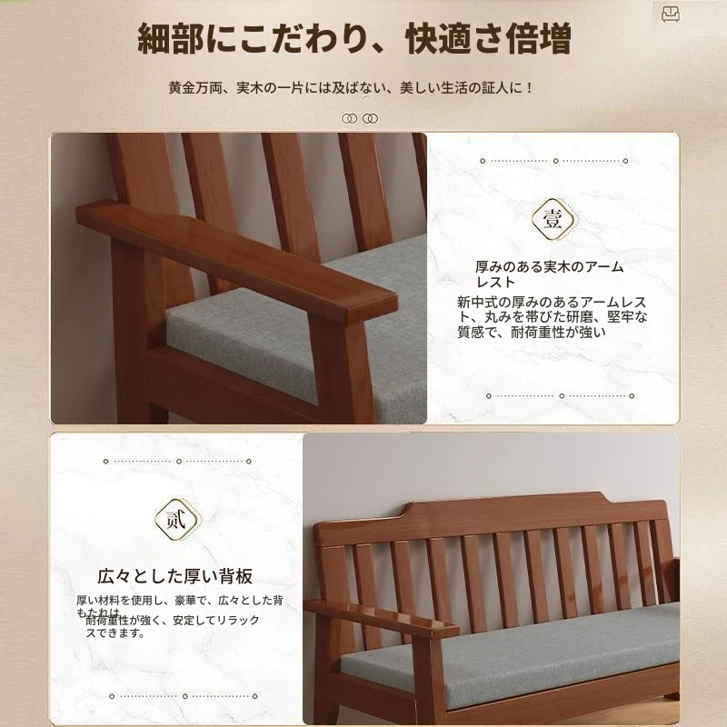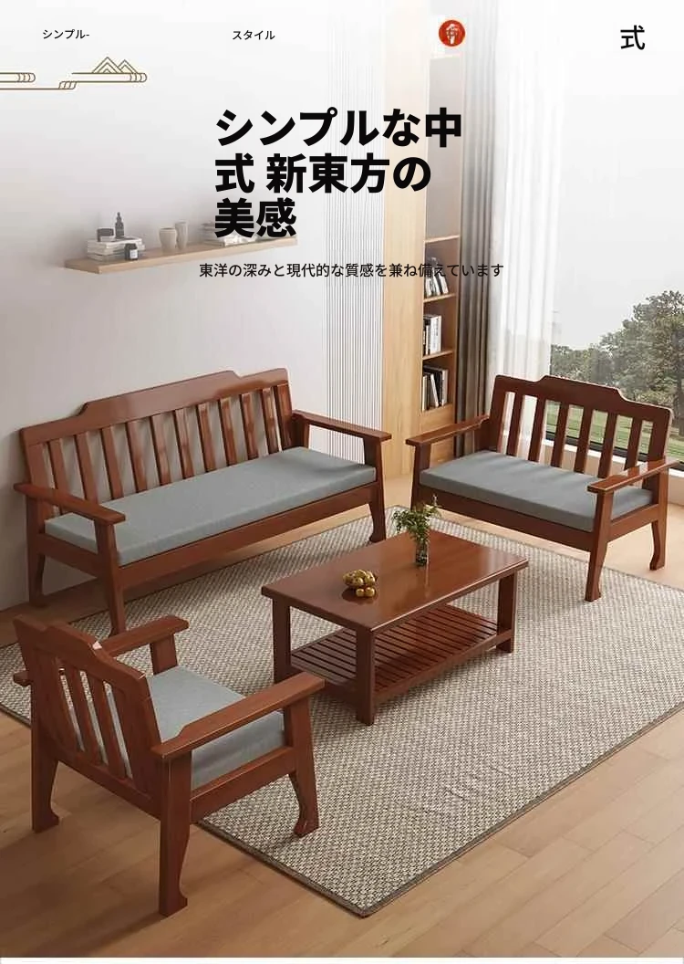 新中式デザインの無垢材ソファ&テーブルセット|省スペースで経済的なリビングに最適!全無垢材使用の高品質ソファベンチ、心地よいくつろぎの空間を実現します。