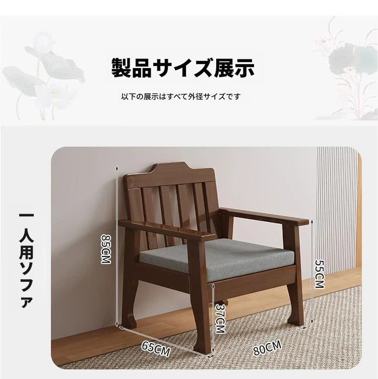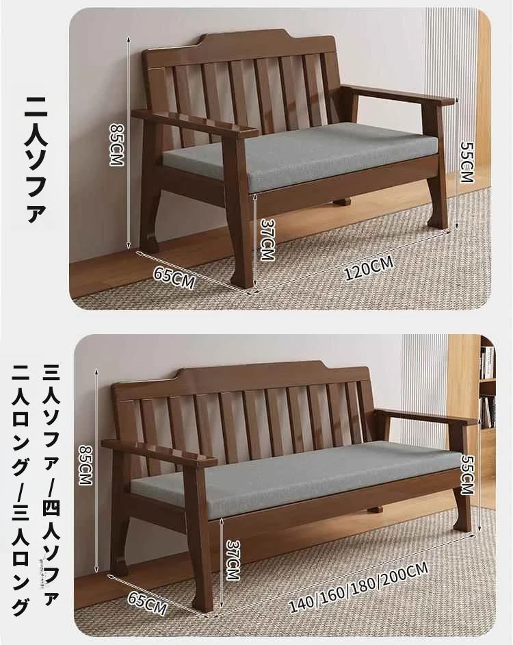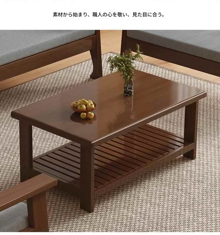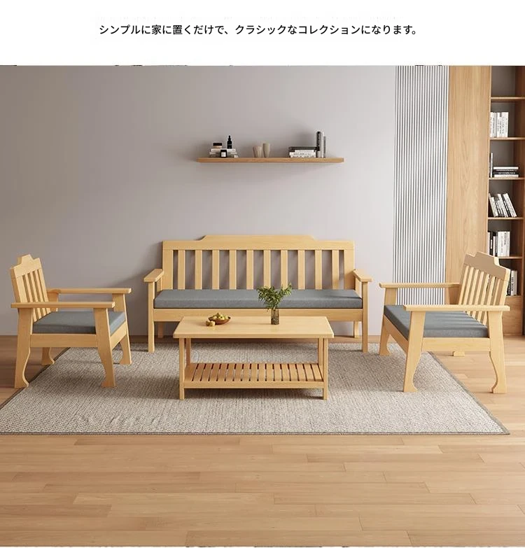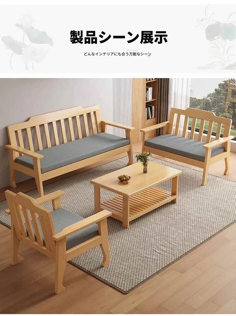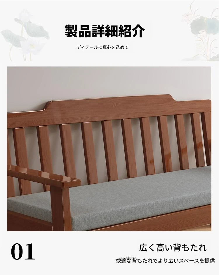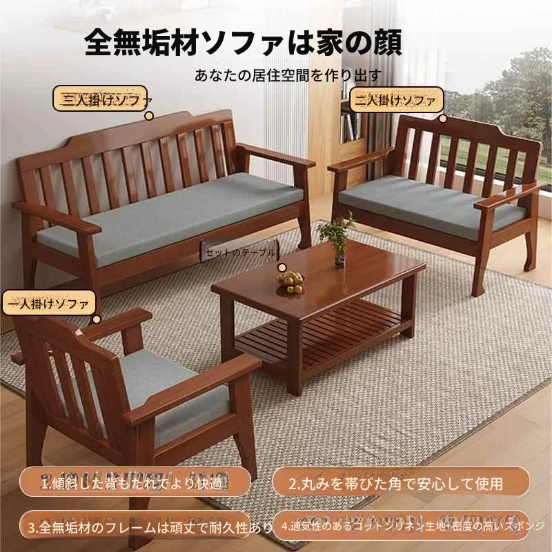 新中式デザインの無垢材ソファ&テーブルセット|省スペースで経済的なリビングに最適!全無垢材使用の高品質ソファベンチ、心地よいくつろぎの空間を実現します。