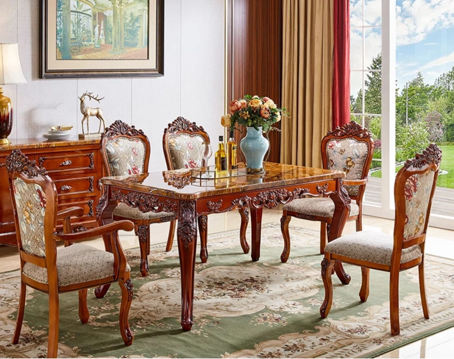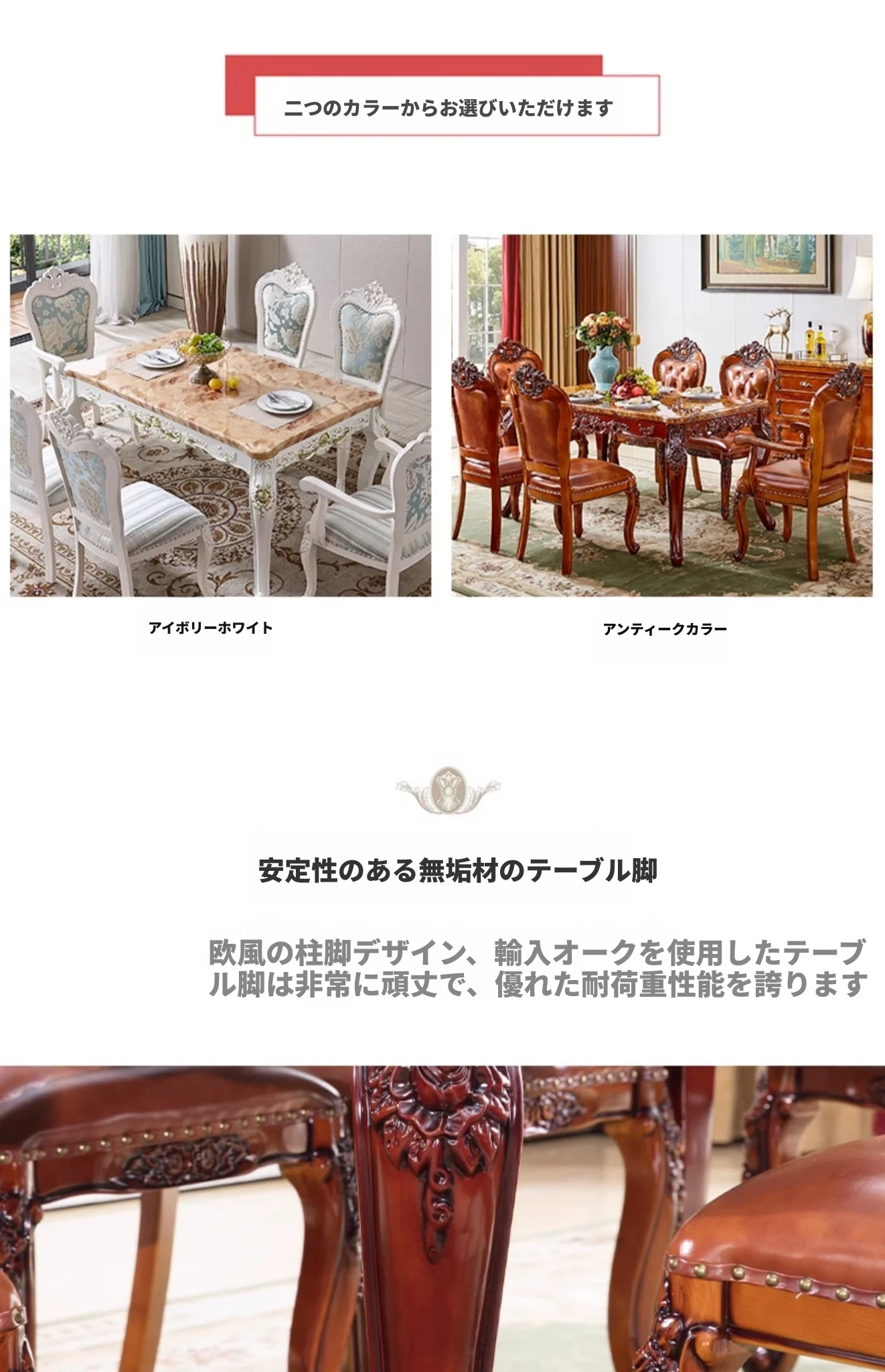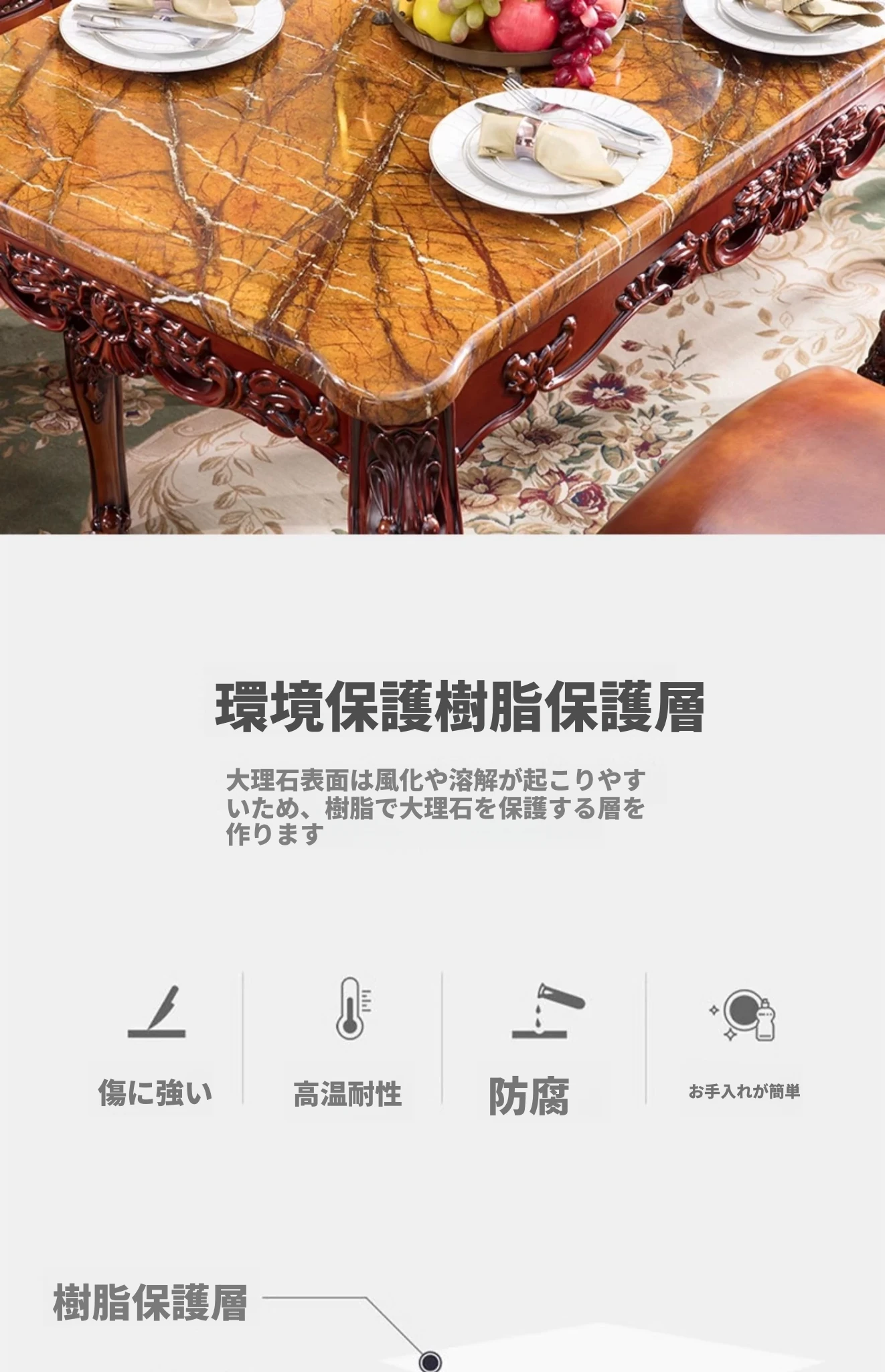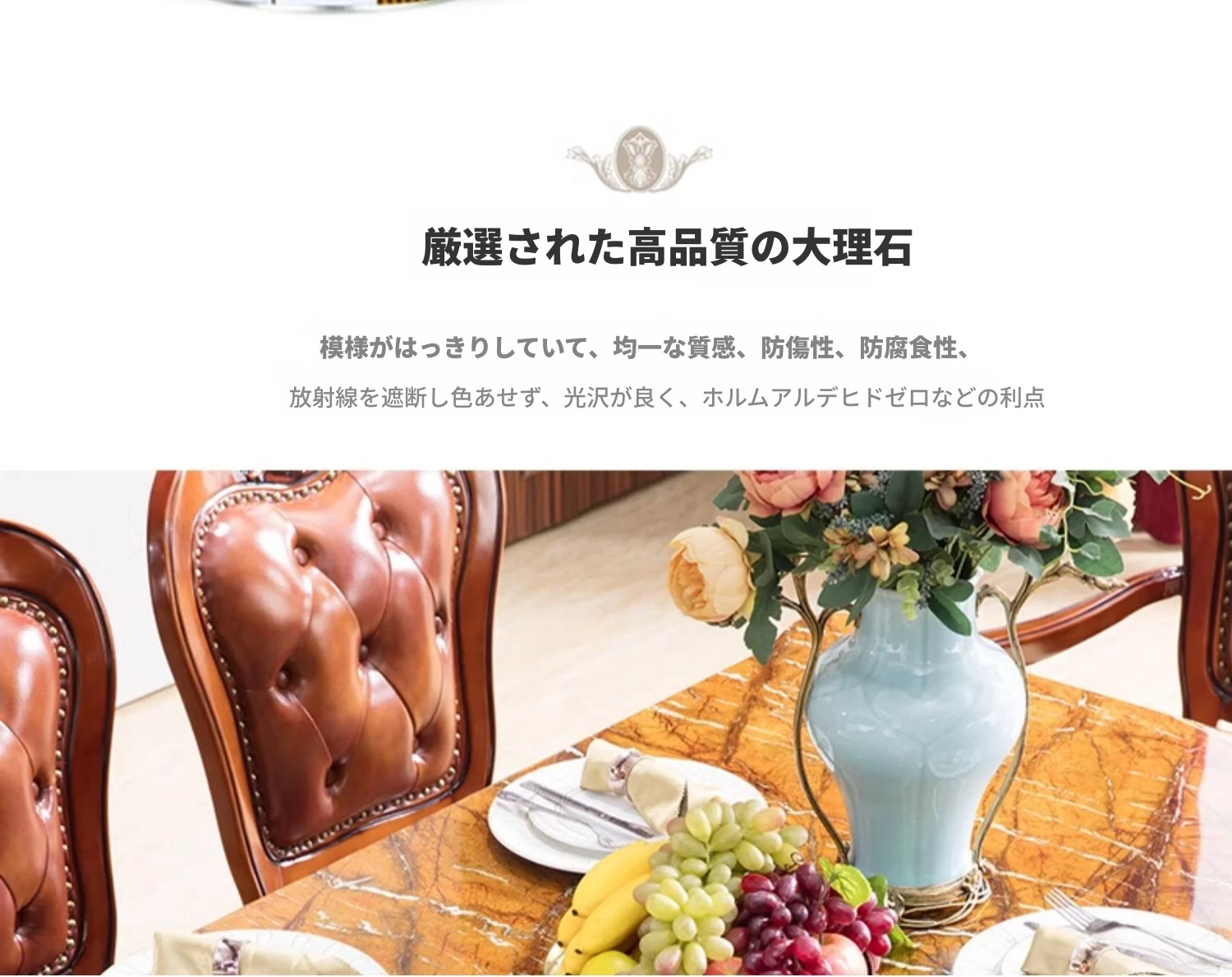 イライデイの欧式長方形ダイニングテーブル - 大理石仕上げの豪華な食卓、家庭にぴったり!6脚の椅子付きで、洗練されたレストランの雰囲気をお楽しみください。