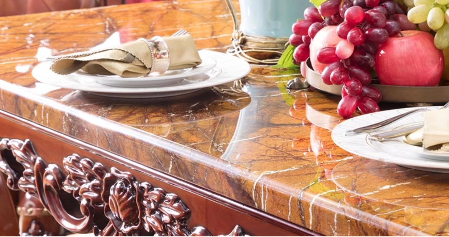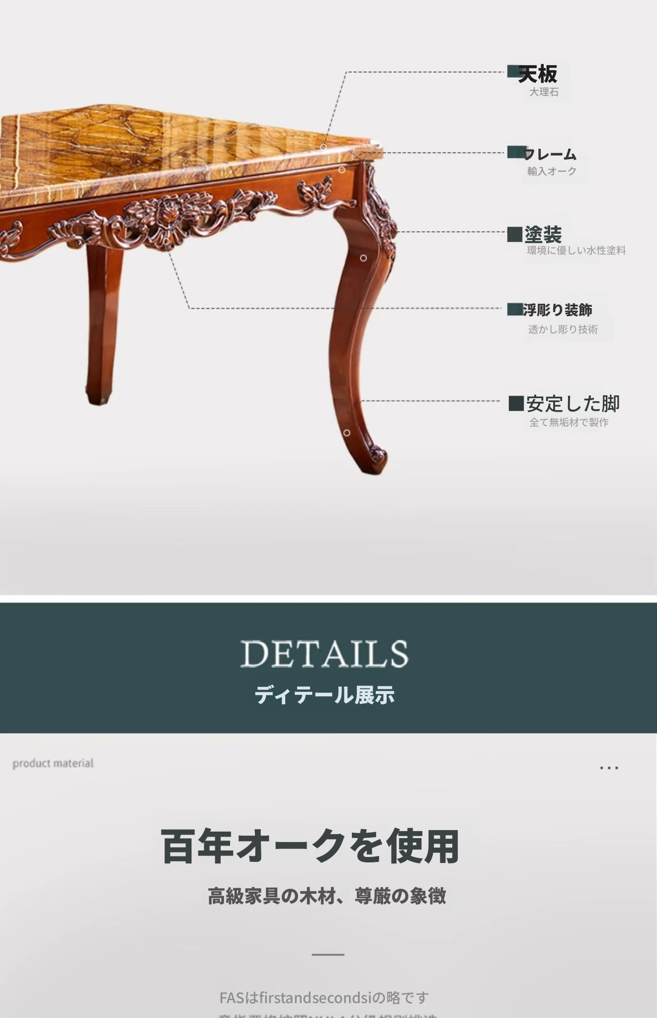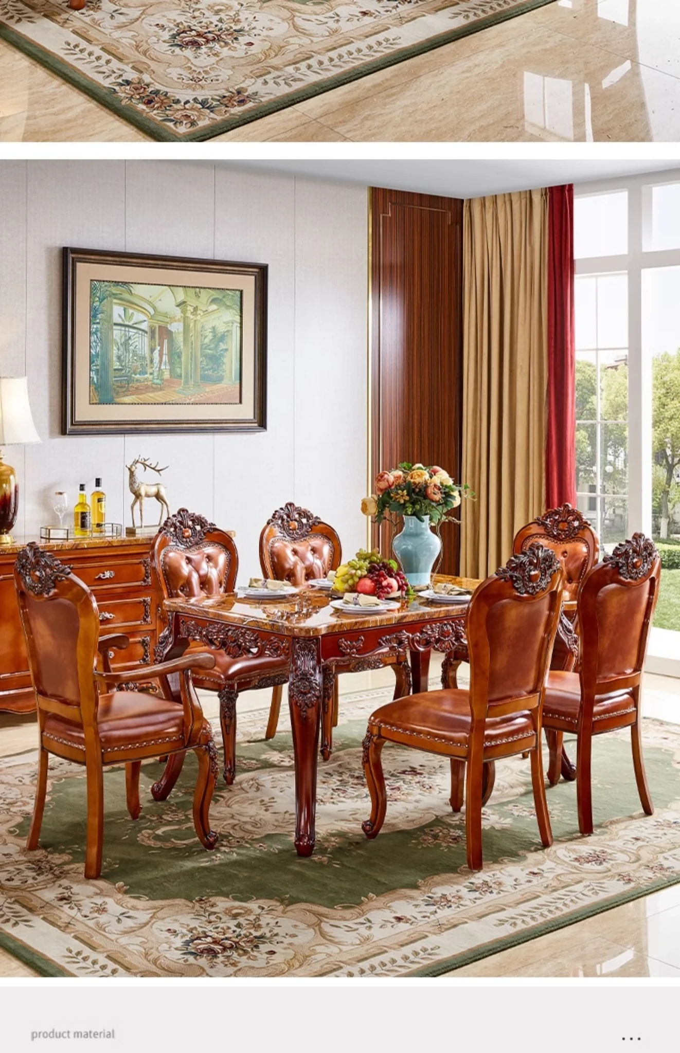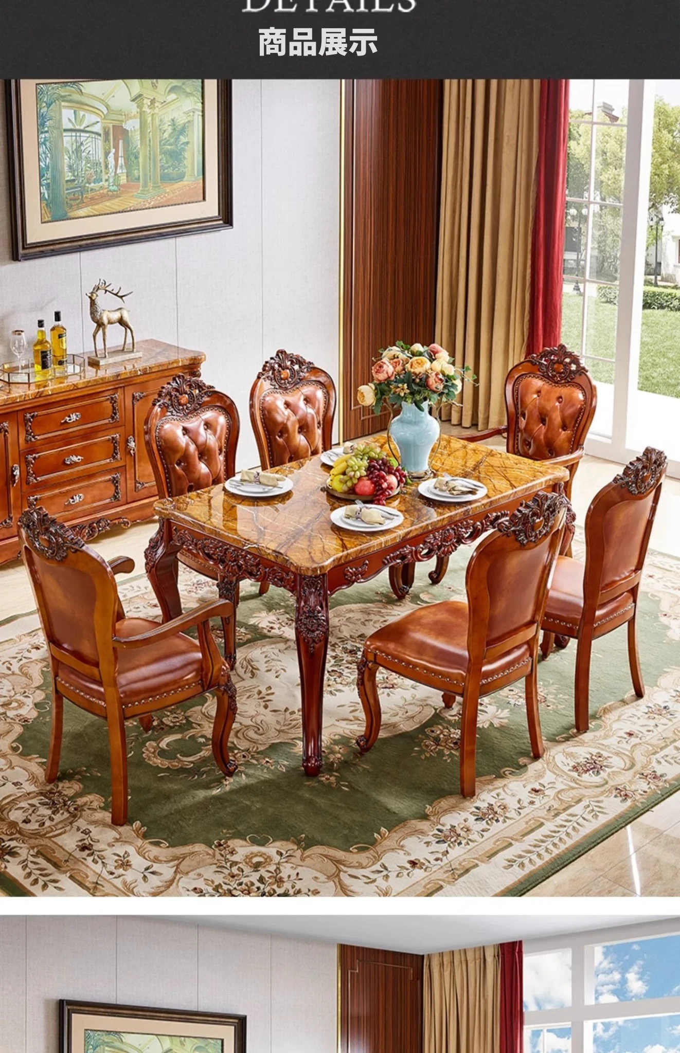 イライデイの欧式長方形ダイニングテーブル - 大理石仕上げの豪華な食卓、家庭にぴったり!6脚の椅子付きで、洗練されたレストランの雰囲気をお楽しみください。