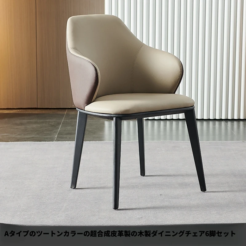 ツートンカラー実木超繊維皮製ダイニングチェア6脚