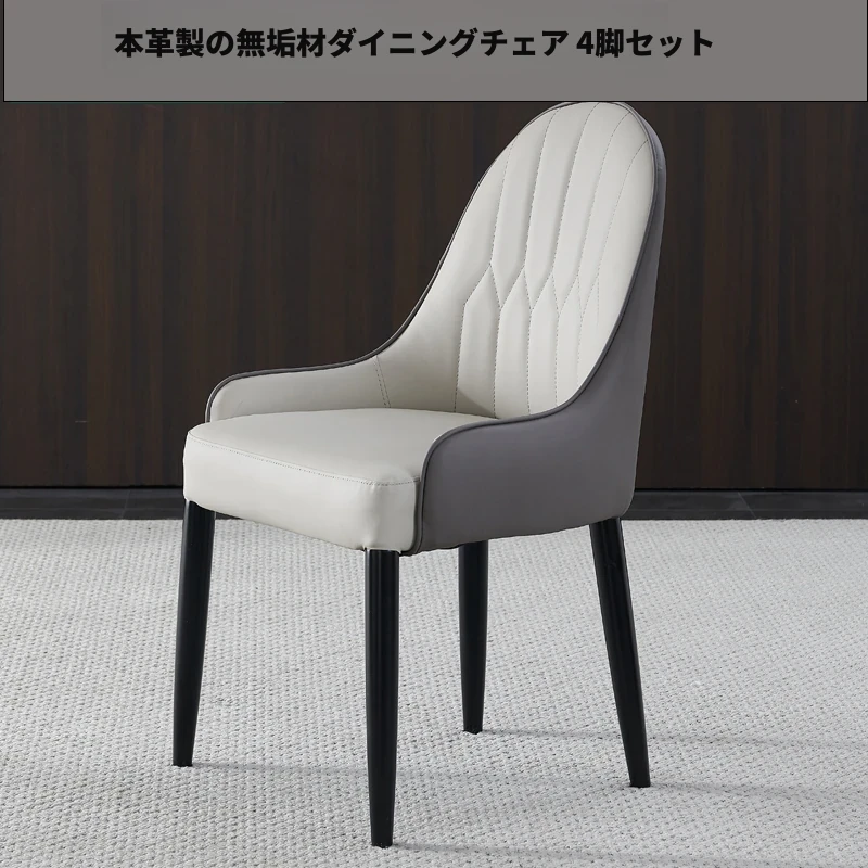 Cタイプ全真皮製実木ダイニングチェア4脚