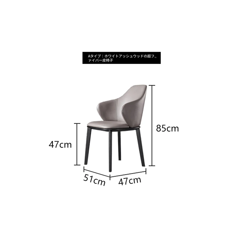 Aタイプ実木超繊維皮製ダイニングチェア6脚 ダークグレー